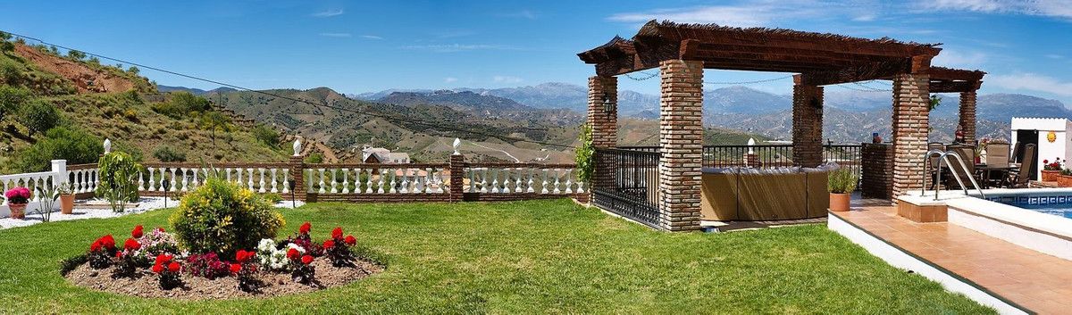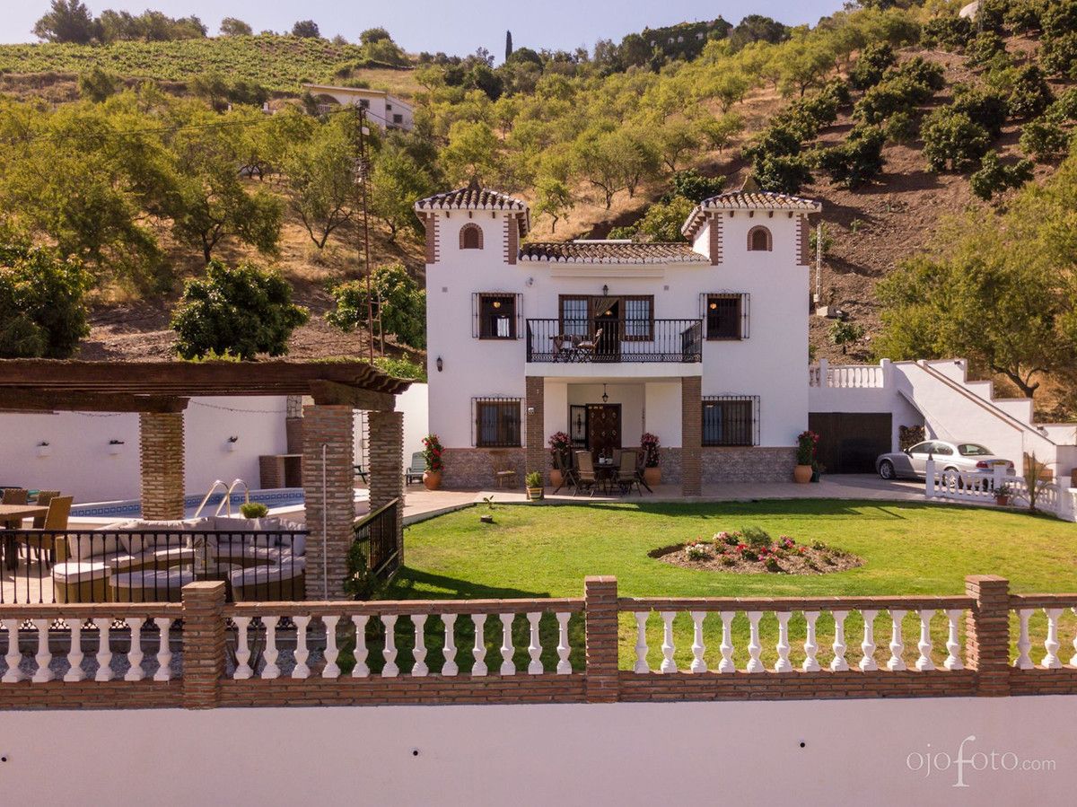Turn key B&B business located just 15 minutes from the Mediterranean coast with stunning views of the countryside and mountains. This beautifully constructed villa, within walking distance of Iznate, has been well furnished and adapted to make a stylish and comfortable B&B business consisting of 5 double rooms, and 5 bathrooms. The ground floor of the property features a hallway, a large, contemporary, fully equipped kitchen with pantry, an open dining/breakfast room with sitting area and a fireplace. A guest WC also features on this level. Beyond the sitting room is a double bedroom with air conditioning and a luxurious ensuite bathroom which has underfloor heating, a free standing bath tub and a grand walk-in shower. A staircase up from the hallway leads to a further 3 large double bedrooms, (each with air conditioning), currently used for guests. Bedroom 1 has an ensuite bathroom, and a private terrace which is at the front of the house and offers excellent views of the landscape beyond. The other 2 double bedrooms on this floor are spacious and of similar size. Each has its own private bathroom just across the corridor. There is a studio apartment located above the garage which is independently accessed via an external staircase. The studio is currently used as another option for guests, most suitable for those with children, as it includes a double bed, sofa bed, ensuite bathroom and private terrace which also provides magnificent views of the backdrop of rolling hills and white washed villages. The room has both air conditioning and a ceiling fan and there is the option to add an American style kitchen. Below the studio is a considerable garage (48m2) which is currently being used as a workshop, storage and a laundry room. However, this could be converted into another studio guest suite. The building sits on an enclosed plot of 877m2 with access through automatic electric gates to a substantial driveway which has ample parking space for several vehicles. The grounds comprise of a private 8m x 4m tiled swimming pool, separate bar, dining area and an outdoor kitchen/BBQ. Around the pool are sun loungers and plenty of seating areas for relaxing and taking in the views of the village. Other features: – Tourist licence – Mains water – Solar panel water heating. (Recently serviced) – Mosquito screens on all windows Everything is in place to simply takeover this successful business with excellent ratings on reservation platforms. The house has excellent access but maintains the peace and tranquility of a rural setting. However, within 15 minutes drive of the property, is the beach, 2 golf courses, a water park, numerous bars and restaurants as well as a comprehensive shopping centre. Málaga airport is only 30 minutes drive away. Do not hesitate to contact us for further information or to schedule a viewing.