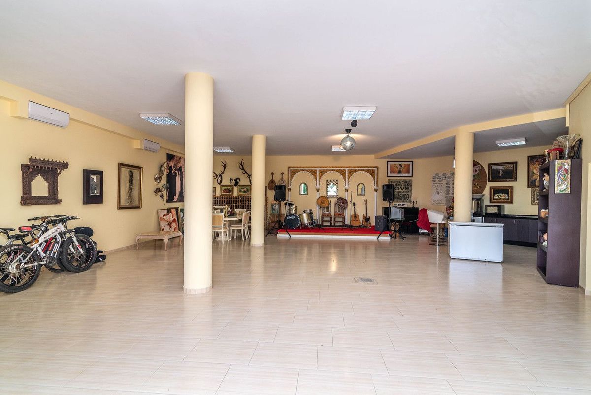 Downstairs you have a staff room including a bathroom and you will find a truly amazing basement with a private bar, kitchen and music entertainment stage. The Basement has space for 4 cars and ample of storage. Next to this you have another beautiful terrace to enjoy the beautiful sunset.