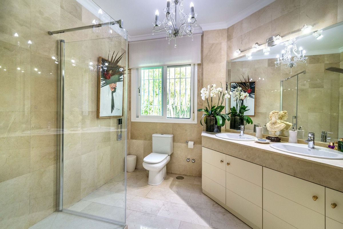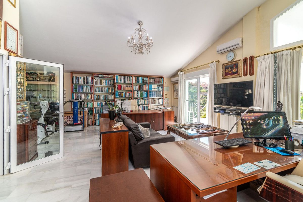 This exceptional house has 5 bedrooms and 4 bathrooms plus a guest toilet. The master bedroom also has a jacuzzi with whirlpool. Next to the Master Bedroom you have this incredible spacious office which could be easily converted into another bedroom with access to the large terrace overlooking the magnificent views of the sea and golf.