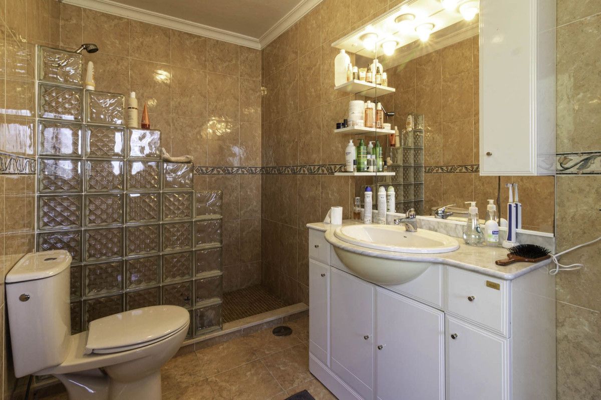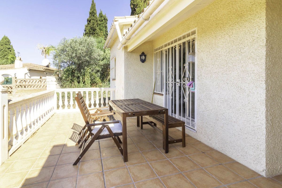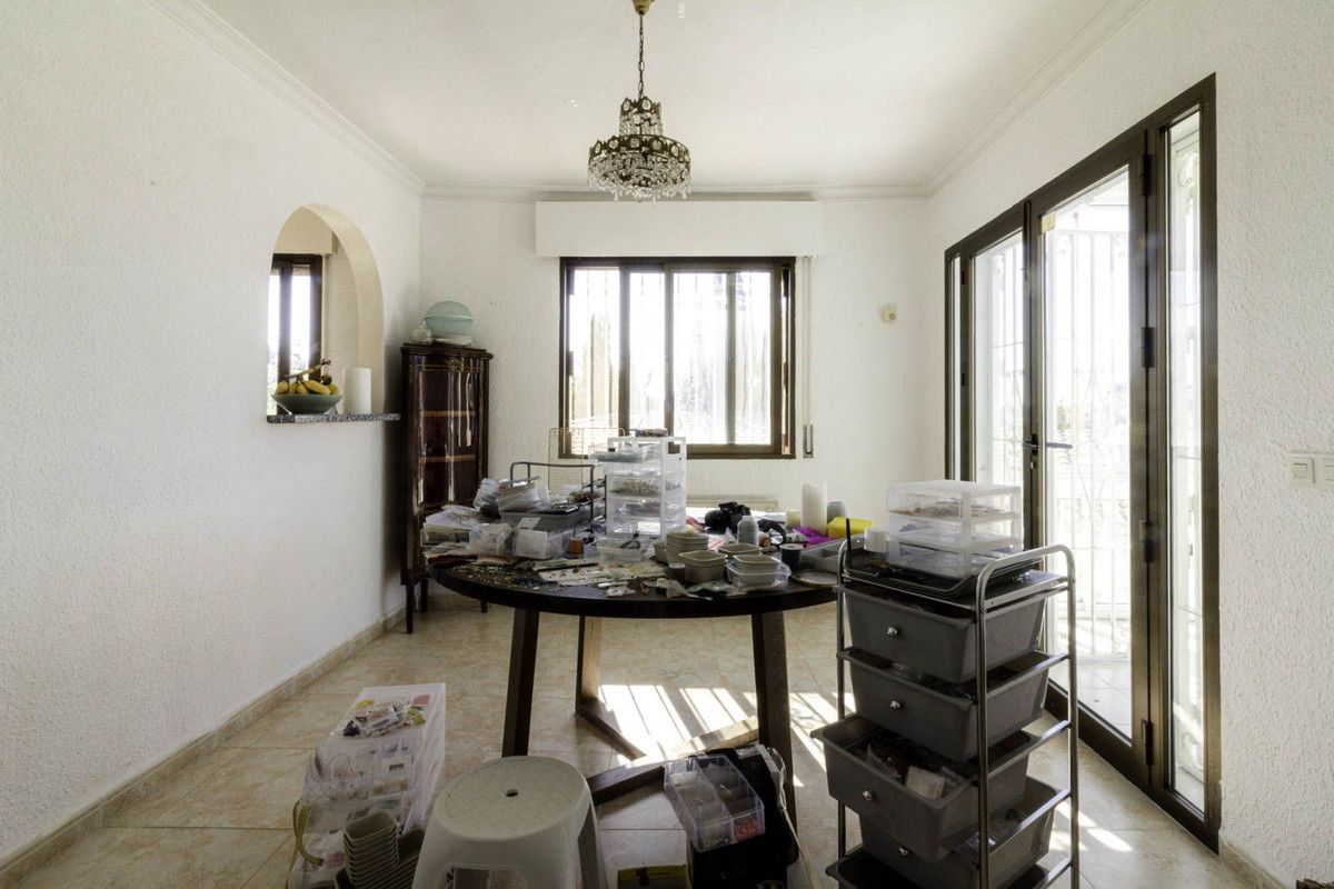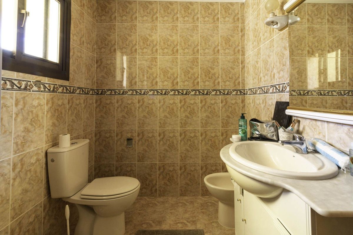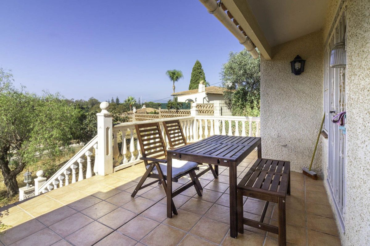 The villa comprises 3 bedrooms and 3 bathrooms and an additional guest toilet in the main house. There is a roof top solarium which offers partial sea views overlooking the mature green areas of Elviria beach side. The guest house, which has recently been completely renovated, is distributed with a kitchen area, bedroom and bathroom, its self contained with its own seperate entrance. The main living area, which needs full renovation, offers two bedrooms with ensuite bathrooms, a guest toilet and dining-lounge area and a fully equipped kitchen.