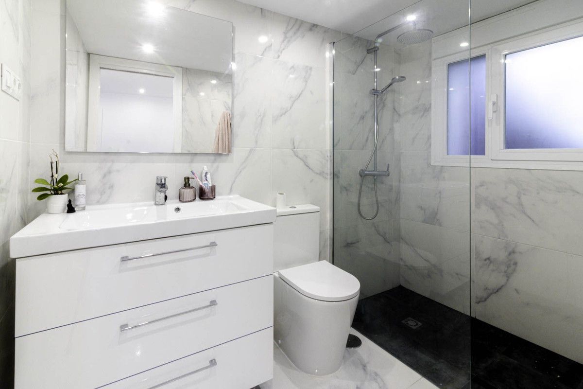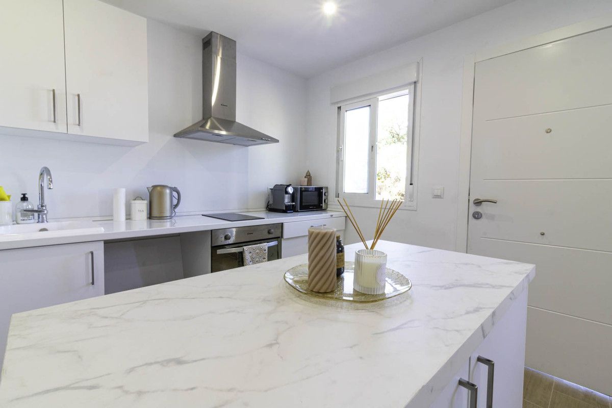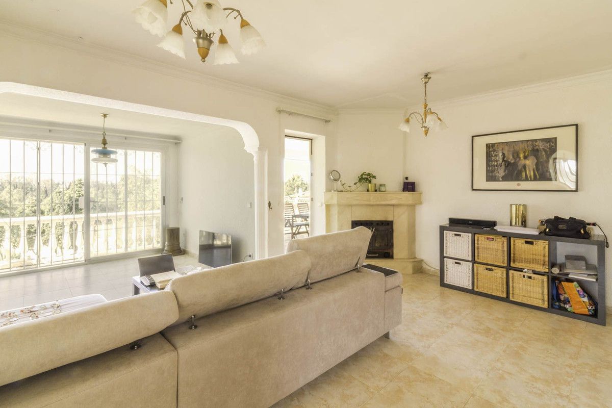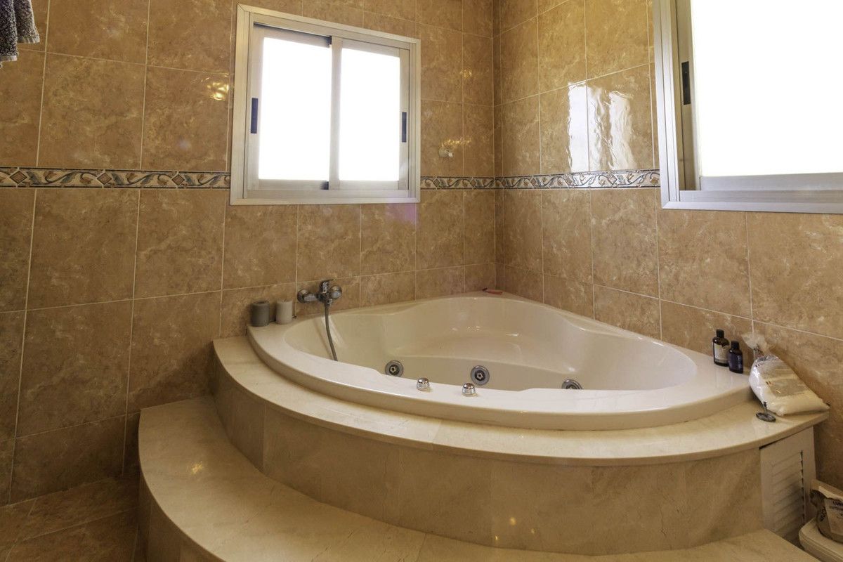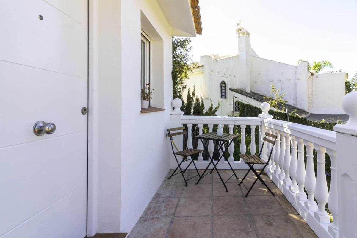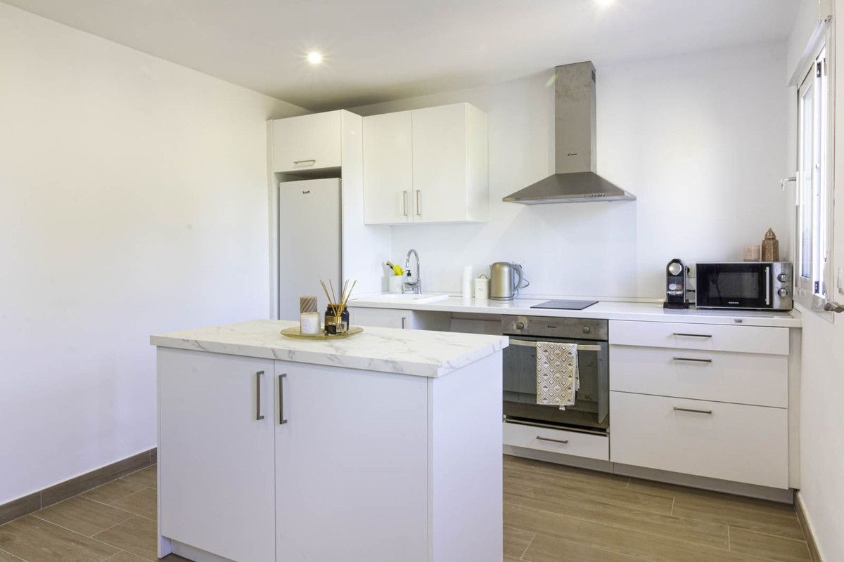 The villa comprises 3 bedrooms and 3 bathrooms and an additional guest toilet in the main house. There is a roof top solarium which offers partial sea views overlooking the mature green areas of Elviria beach side. The guest house, which has recently been completely renovated, is distributed with a kitchen area, bedroom and bathroom, its self contained with its own seperate entrance. The main living area, which needs full renovation, offers two bedrooms with ensuite bathrooms, a guest toilet and dining-lounge area and a fully equipped kitchen.