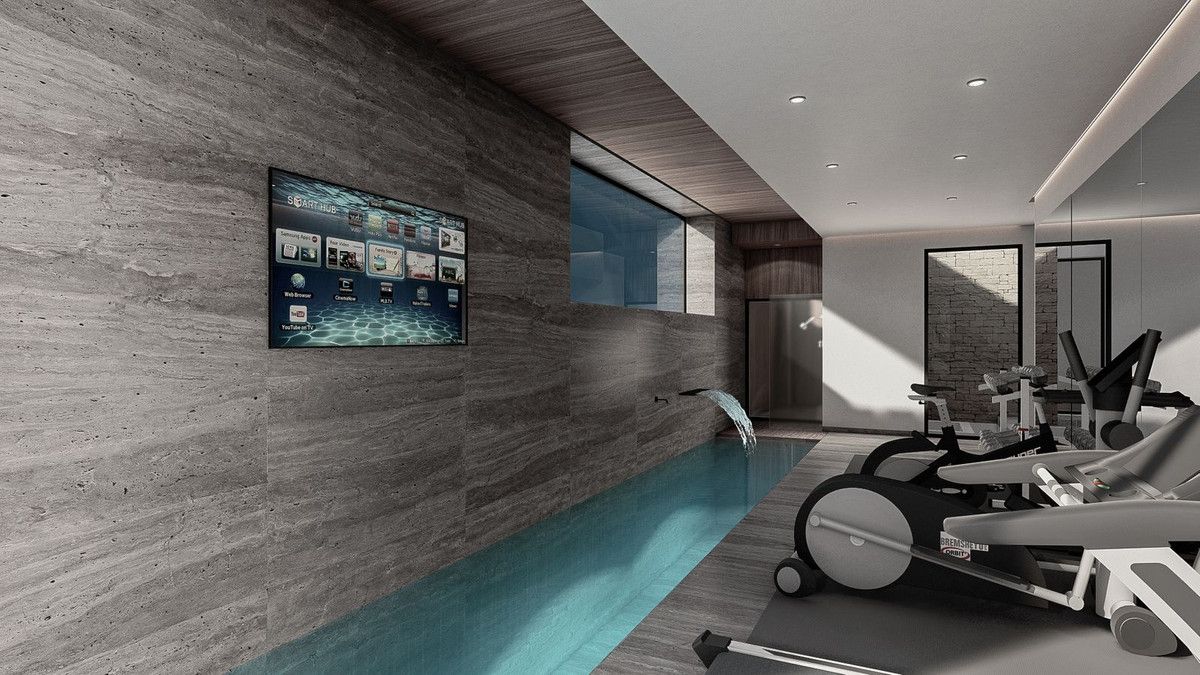 Lower ground floor offers an indoor pool along with full gymnasium, sauna, office, storage room, staff accommodation.