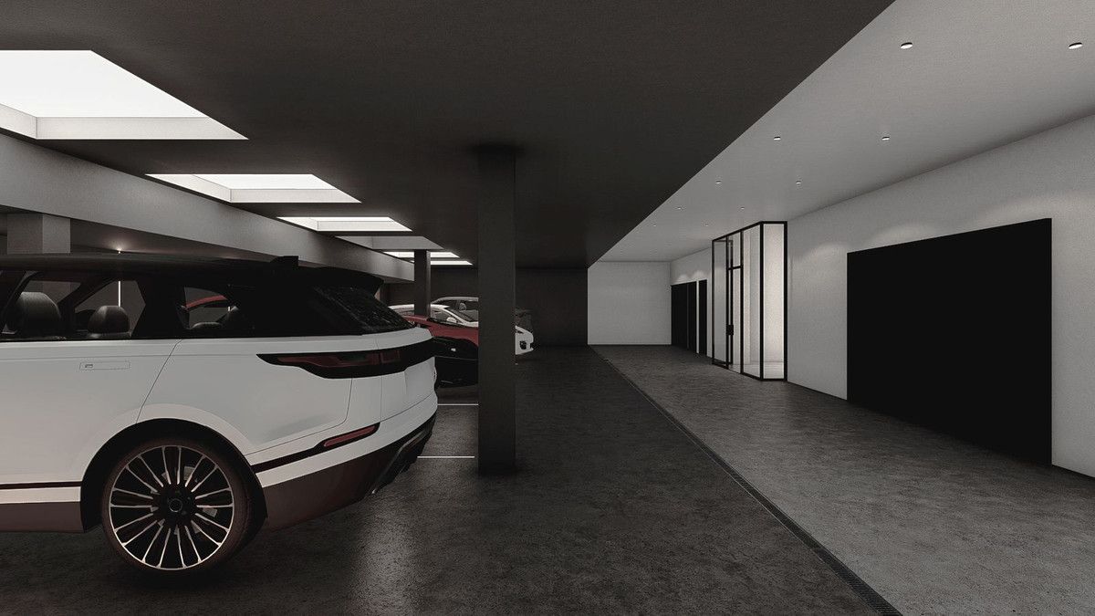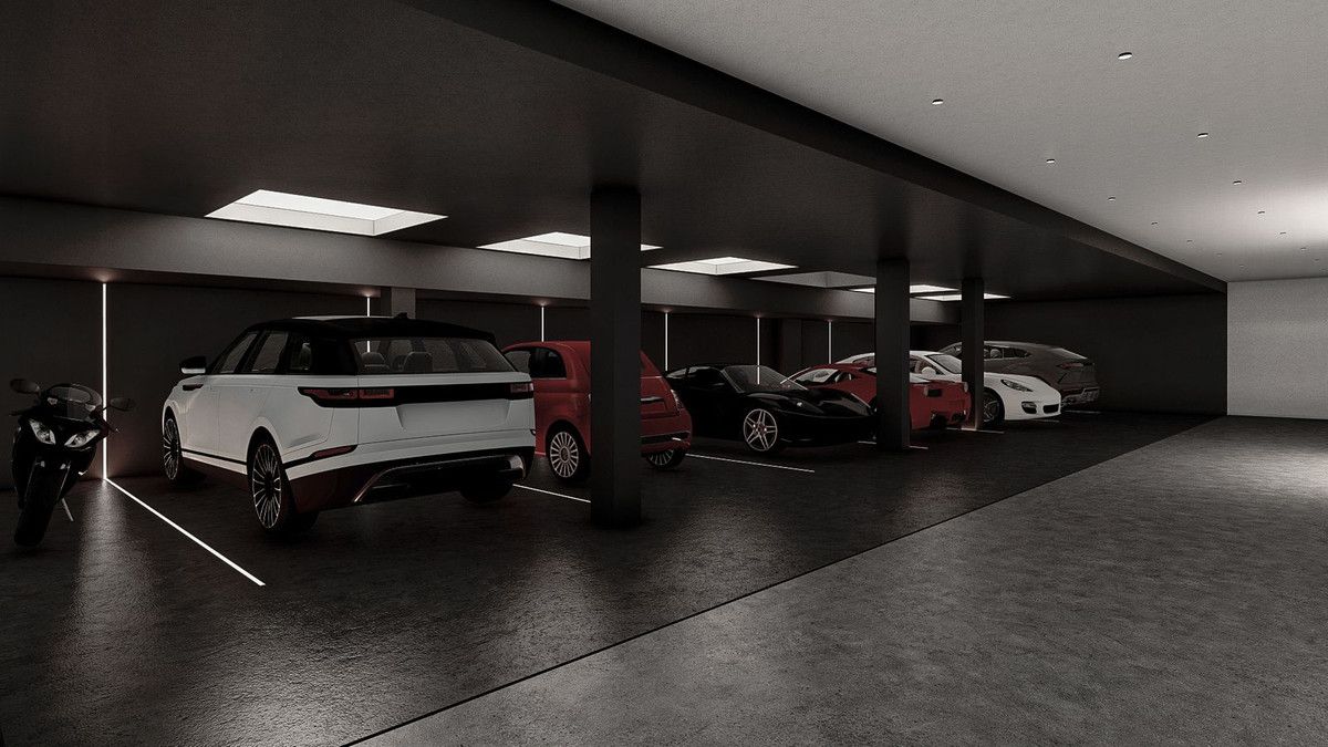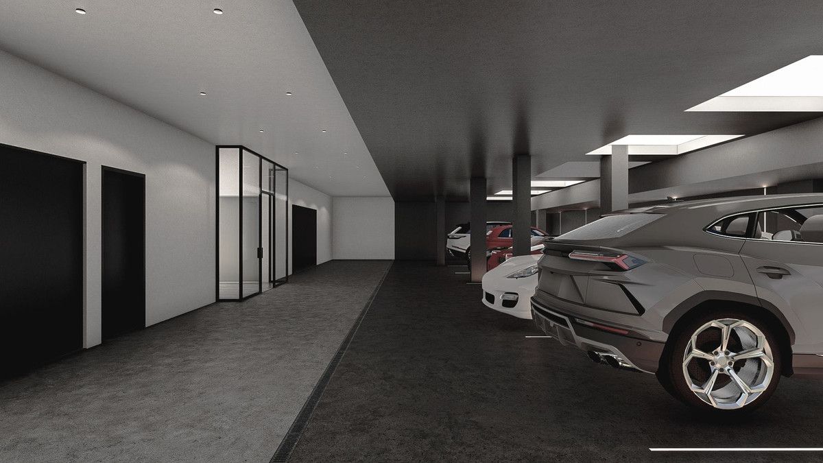 On the lower level there is room for at least 20 cars in this double height garage, ideally suited for a car collector or enthusiast.