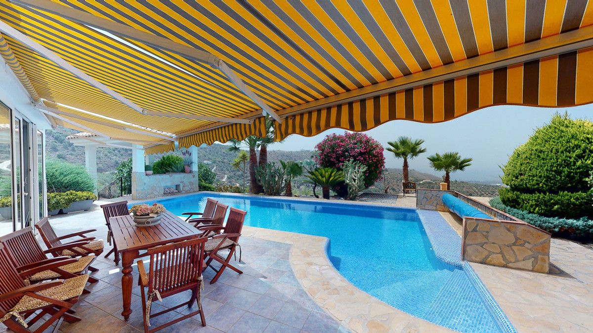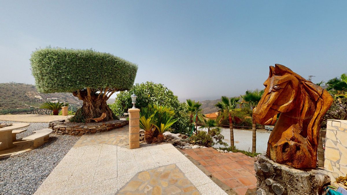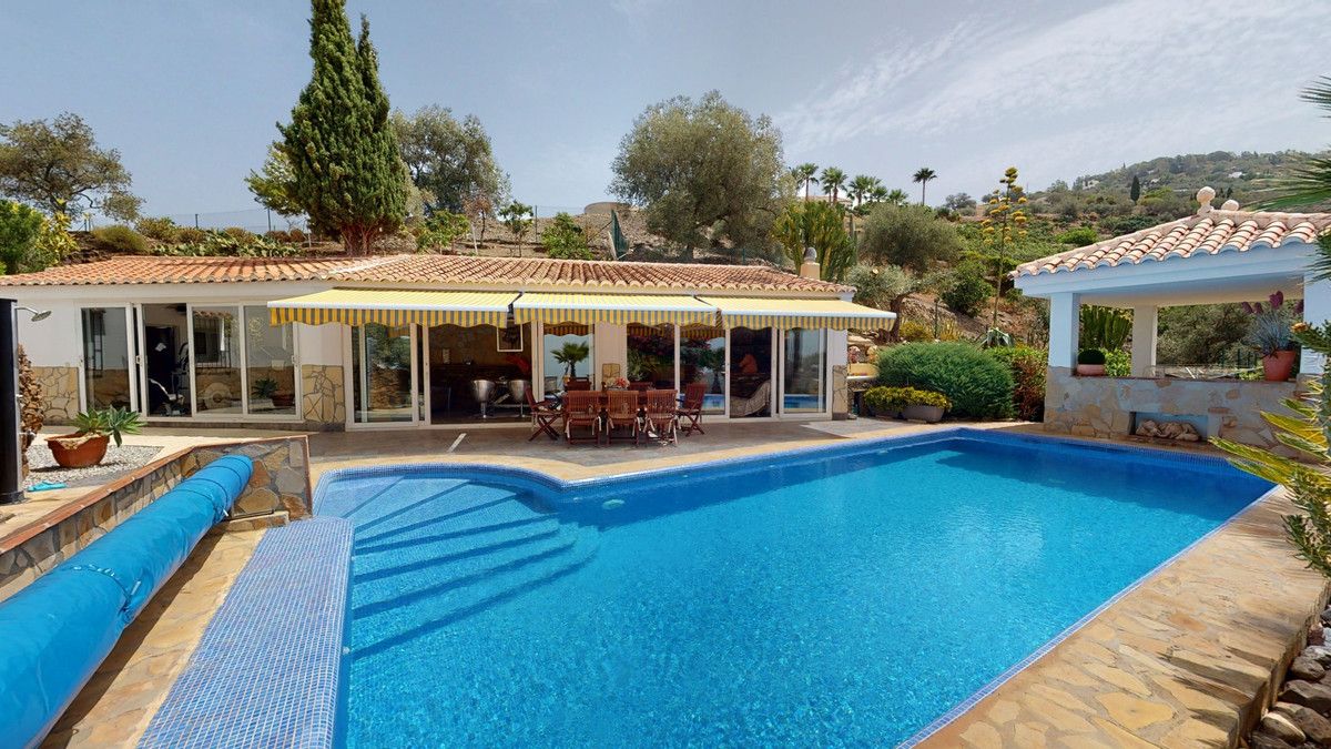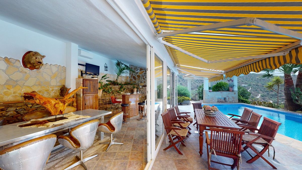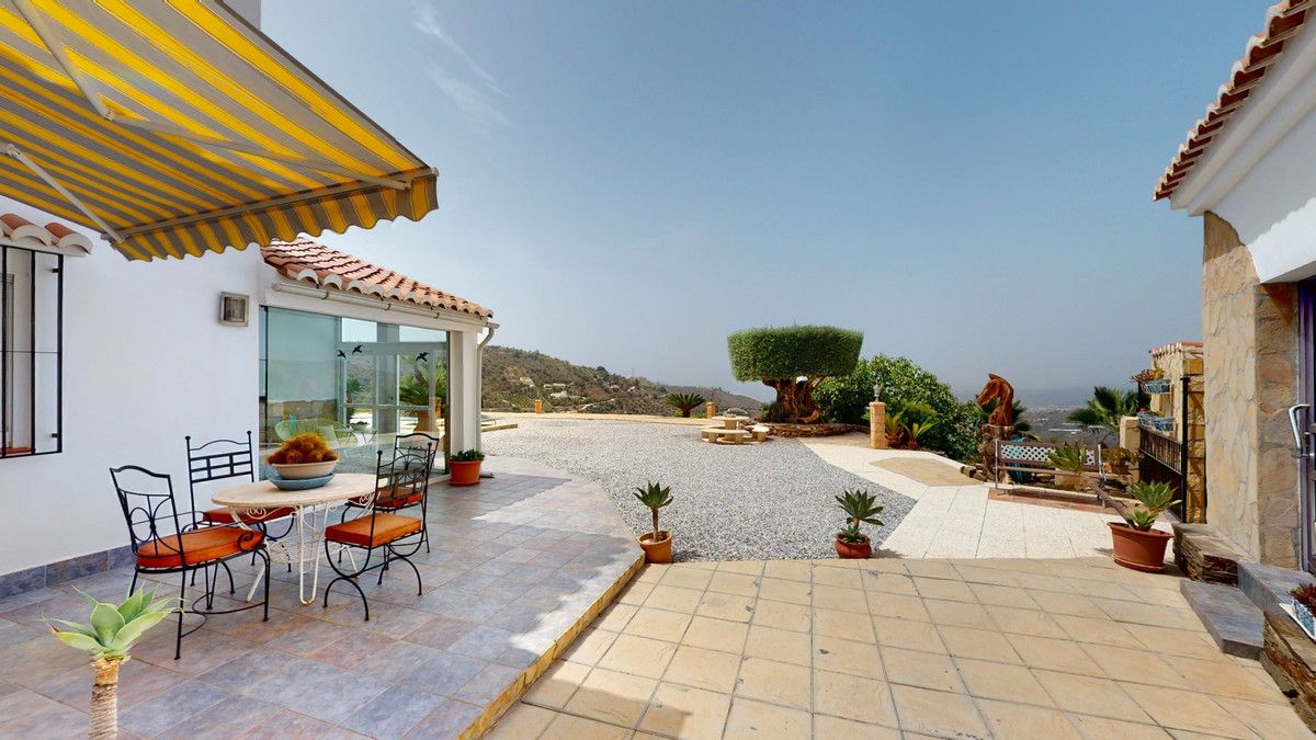If it ́s your dream to live in a fantastic, high quality built villa with a pool and breathtaking sea views, then you have found the right property. This 280 m2 luxury villa offers everything you could possibly want. In the centre of the modern villa mixed with Andalusian style is a charming patio, which gives the house a special accent and provides beautiful lighting and atmosphere. It links the entire lower area of the property. From the entrance area, one side leads to a room used as an office, as well as a bedroom with an on-suite bathroom and the spacious living room with a fireplace and sea views. This in turn is adjacent to the dining area and the kitchen, from which you enter the hallway that is connected to the entrance area. This hallway also leads to the dressing room with an on-suite bathroom, where there is a sauna. Stairs lead from the entrance to the second floor. Here you will find the large master bedroom with an on-suite bathroom and a winter garden. External stairs lead to the outdoor area, which gives this room a separate entrance. The wonderful outdoor area offers a double garage, as well as a laundry room, which is also used for storage. Right next to the inviting pool is a gym with bathroom, as well as a glass fronted annex that serves as a lounge area with an outdoor kitchen. The perfect place for celebrations and dinners with family and friends. On the 19,500 m2 property there is also a paddock, with shelter and its own driveway, for keeping horses. It ́s located below the house. The driveway also leads to a small riding arena with three horse stalls, a tack room and a shower for the horses. You have free design possibilities of the spacious property. Whether it is to plant a fruit and vegetable garden, expand the area of horse keeping, possibly convert the riding arena to a tennis court, volleyball or small soccer field, even something completely new. The choice is entirely up to you. We are pleased to be able to present this dream property to you soon, either personally or via virtual viewing. Because this world is unique – just like our Axarquía. In Andalusia. On the Costa del Sol. Here, on the sunny side of life…