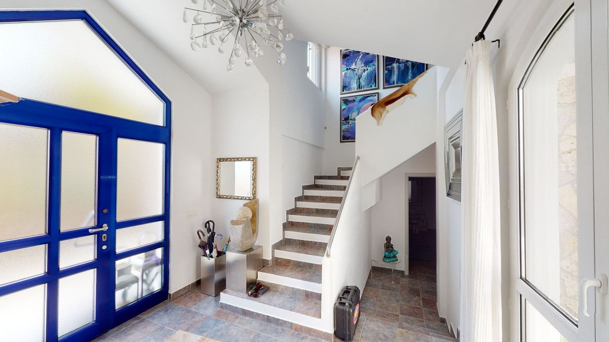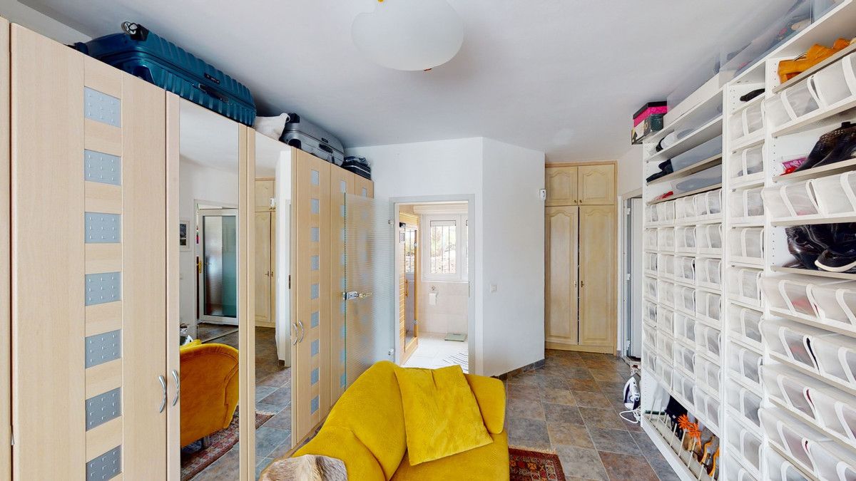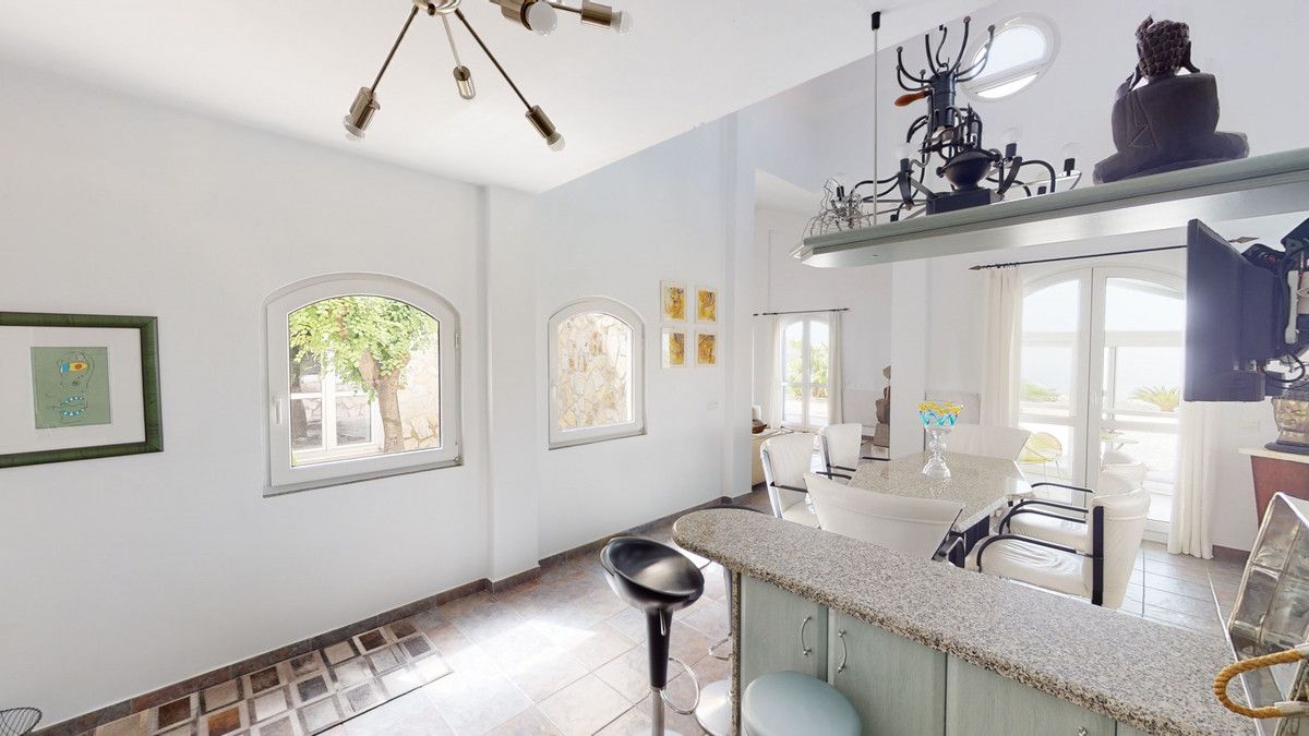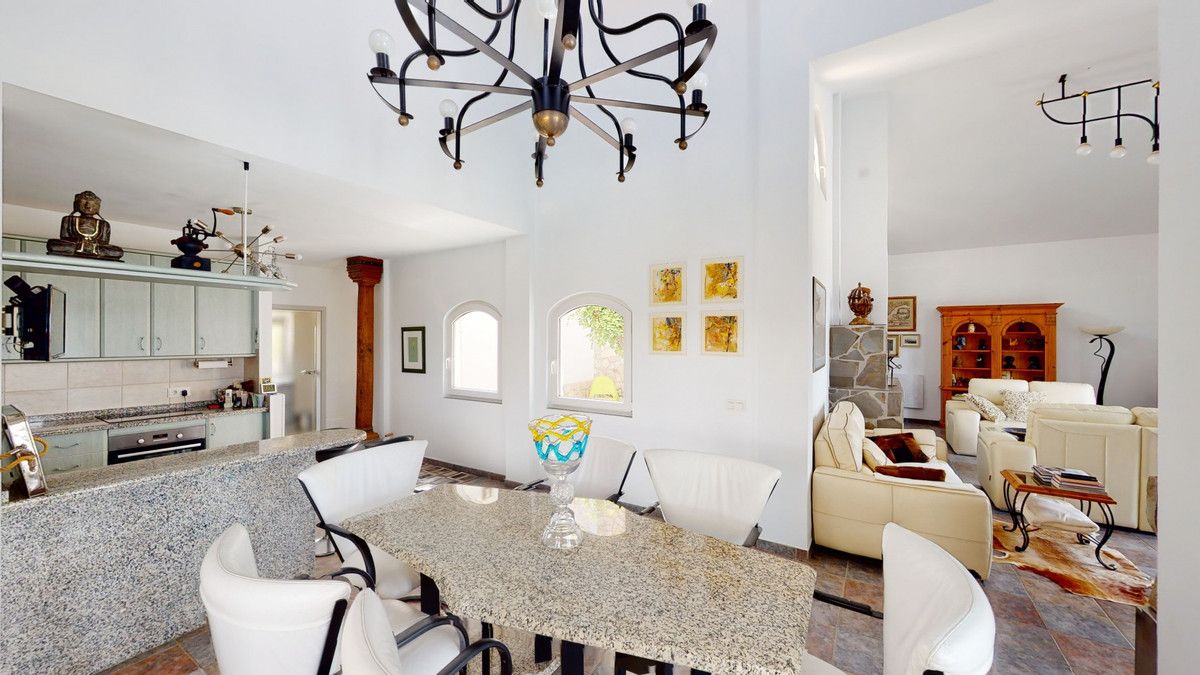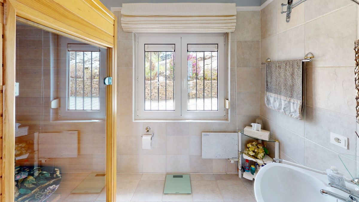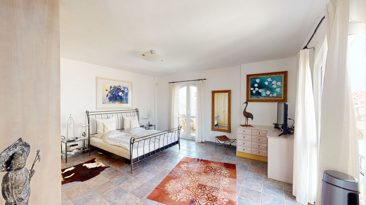 If it ́s your dream to live in a fantastic, high quality built villa with a pool and breathtaking sea views, then you have found the right property. This 280 m2 luxury villa offers everything you could possibly want. In the centre of the modern villa mixed with Andalusian style is a charming patio, which gives the house a special accent and provides beautiful lighting and atmosphere. It links the entire lower area of the property. From the entrance area, one side leads to a room used as an office, as well as a bedroom with an on-suite bathroom and the spacious living room with a fireplace and sea views. This in turn is adjacent to the dining area and the kitchen, from which you enter the hallway that is connected to the entrance area. This hallway also leads to the dressing room with an on-suite bathroom, where there is a sauna. Stairs lead from the entrance to the second floor. Here you will find the large master bedroom with an on-suite bathroom and a winter garden. External stairs lead to the outdoor area, which gives this room a separate entrance. The wonderful outdoor area offers a double garage, as well as a laundry room, which is also used for storage. Right next to the inviting pool is a gym with bathroom, as well as a glass fronted annex that serves as a lounge area with an outdoor kitchen. The perfect place for celebrations and dinners with family and friends. On the 19,500 m2 property there is also a paddock, with shelter and its own driveway, for keeping horses. It ́s located below the house. The driveway also leads to a small riding arena with three horse stalls, a tack room and a shower for the horses. You have free design possibilities of the spacious property. Whether it is to plant a fruit and vegetable garden, expand the area of horse keeping, possibly convert the riding arena to a tennis court, volleyball or small soccer field, even something completely new. The choice is entirely up to you. We are pleased to be able to present this dream property to you soon, either personally or via virtual viewing. Because this world is unique – just like our Axarquía. In Andalusia. On the Costa del Sol. Here, on the sunny side of life…