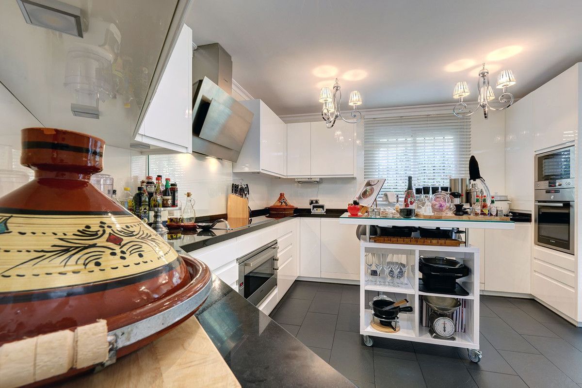 Luxury fitted kitchen with island.