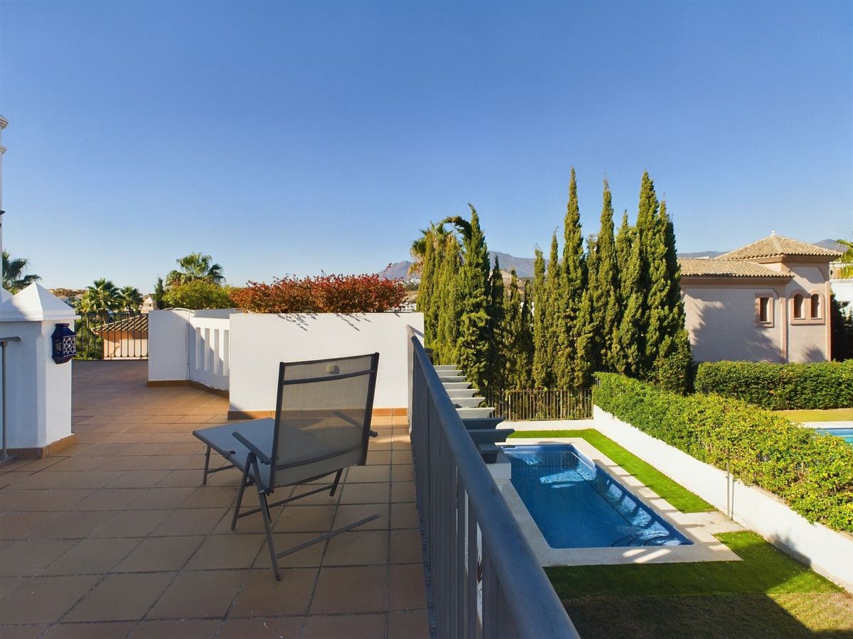 Upstairs, you'll find two more en-suite bedrooms, both with access to a large wraparound terrace. It's the perfect spot to soak up the sun and take in the beautiful views of the golf course, the sea, and even glimpses of Gibraltar on a clear day.