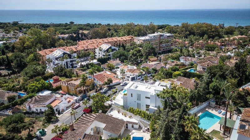 Fabulous eco-friendly family villa in Marbesa, known for its beautiful beaches and convenient location near amenities and the protected nature reserve of the dunes of cabopino with the marina nearby. Set on a spacious plot with palm trees and tropical plants, this stunning, south-facing villa boasts underfloor heating. Almost every room offers fantastic sea views of the Mediterranean and the African coastline.