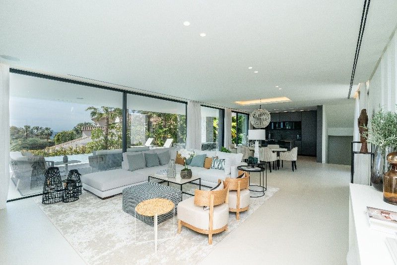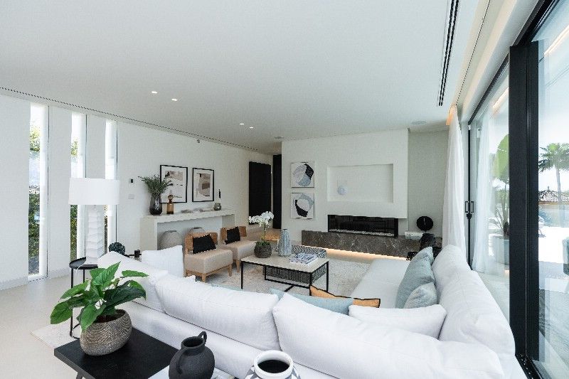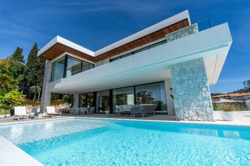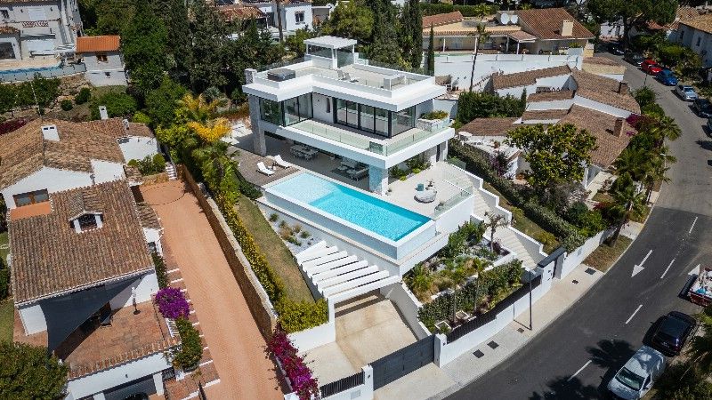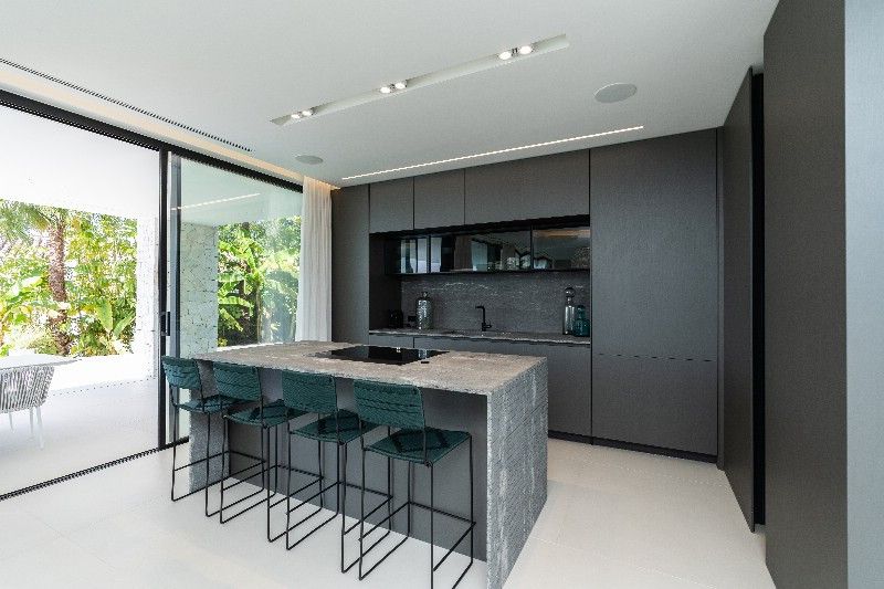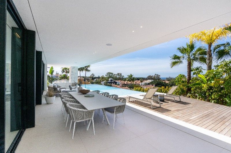 The villa offers an open-plan kitchen with top-of-the-line Gaggenau appliances, flowing into a spacious living room with sliding doors leading to a large covered terrace and BBQ area. On the first floor, you''ll find three spacious en-suite bedrooms, while the lower level houses two more en-suite bedrooms, along with a large family room, home cinema, and laundry area. This exceptional property adheres to the latest construction standards. Additional features: The rooftop terrace is a highlight, featuring a jacuzzi and bar area, perfect for enjoying the sun and breath-taking views. Solar energy, pre-installation for elevator, Sonos system. Unique contemporary villa on the beachside of Marbella, a must view!!