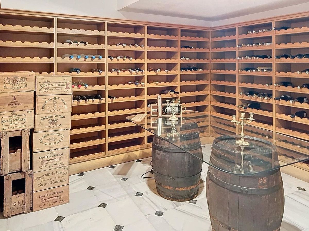✨ A basement entertainment area with a party room, wine cellar, bedroom, and toilet