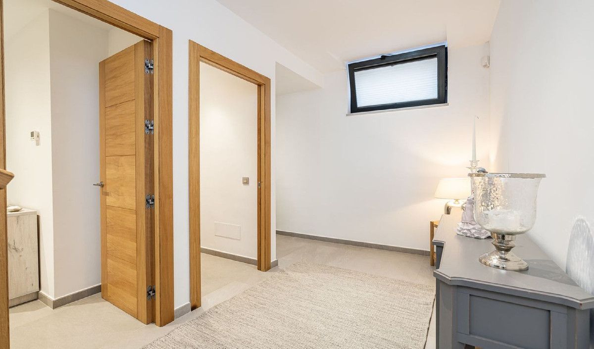 The villa is laid out on 3 separate floors. The Main accommodation is on the Ground Floor which has a welcoming entrance hall with stairs leading up to the upper floor with its bedrooms. The living room enjoys plenty of natural light with a featured window, double sets of patio doors leading out to a covered terrace and the pool. The living room also has a fireplace with a cast iron wood burner. There is a separate kitchen/diner fully equipped with top of the range appliances. The guest cloakroom is on the lower level.