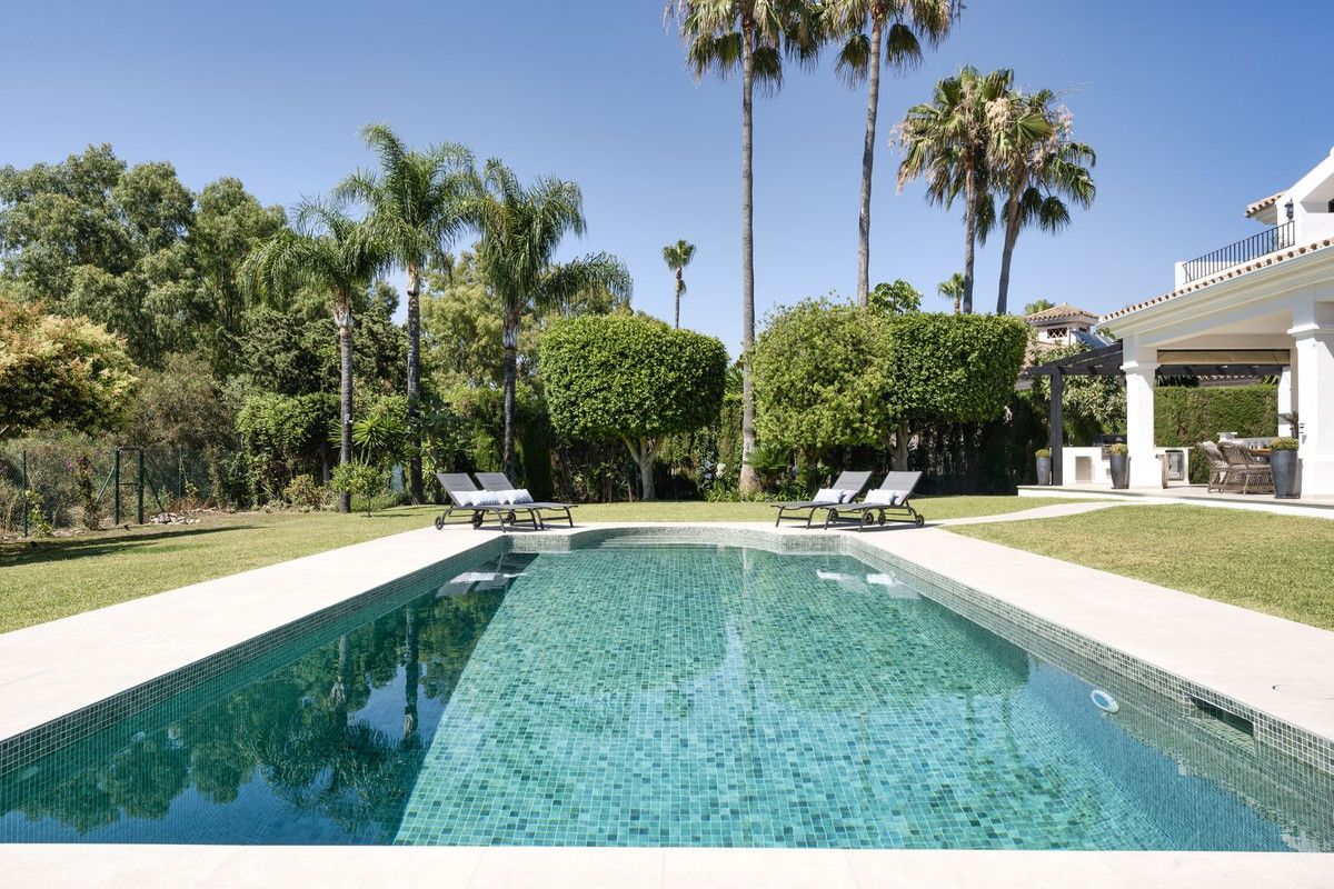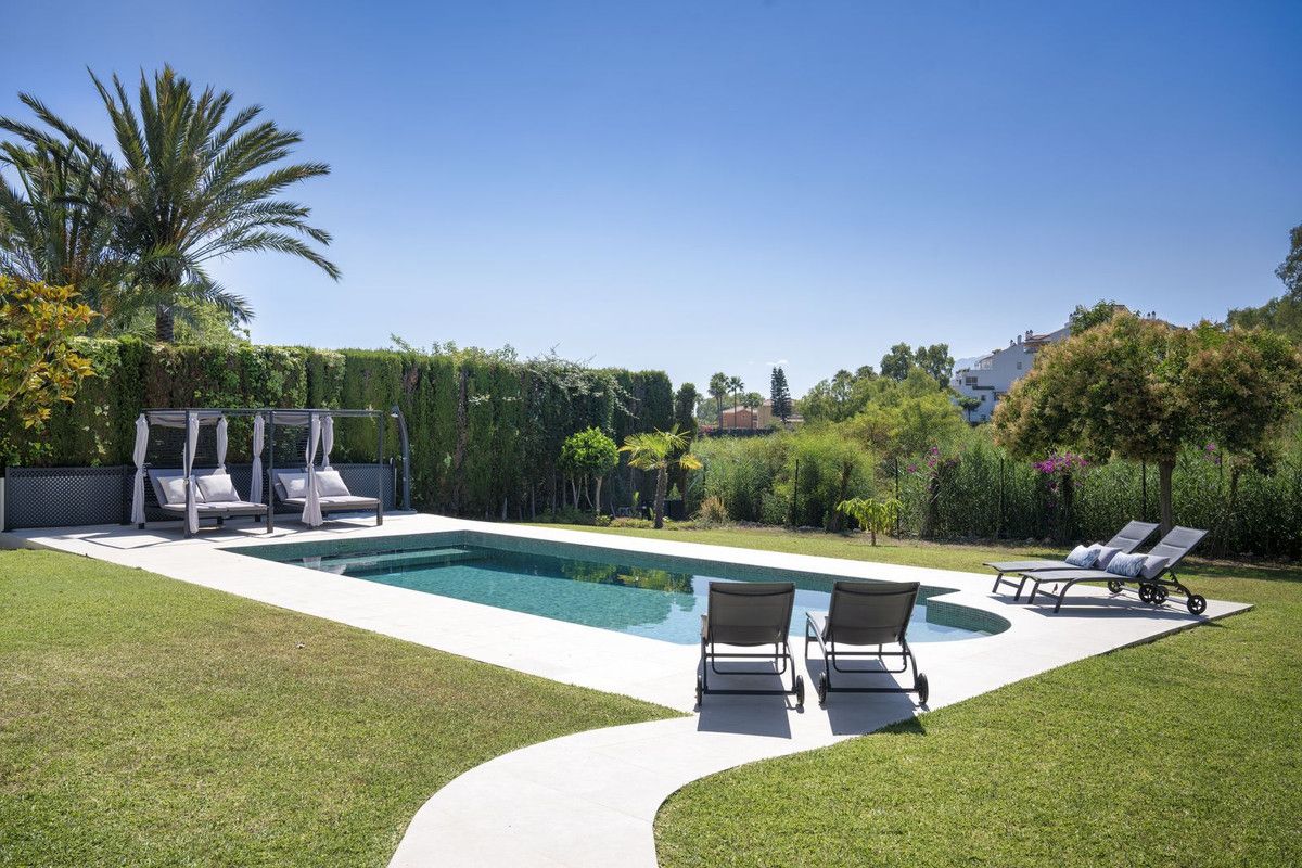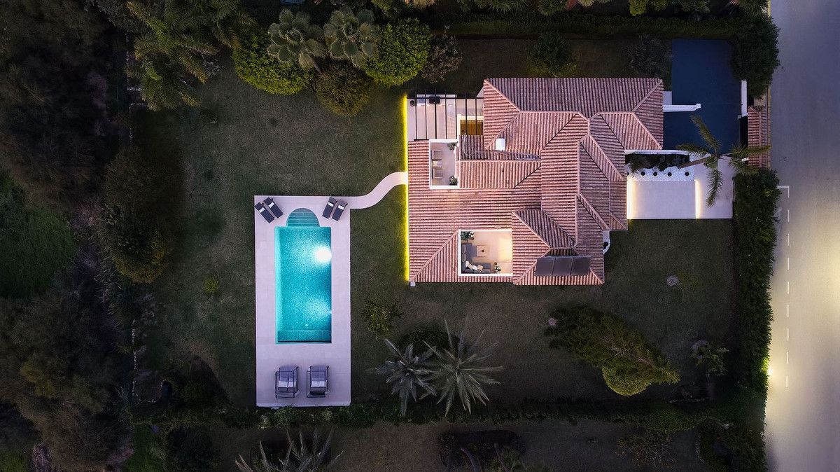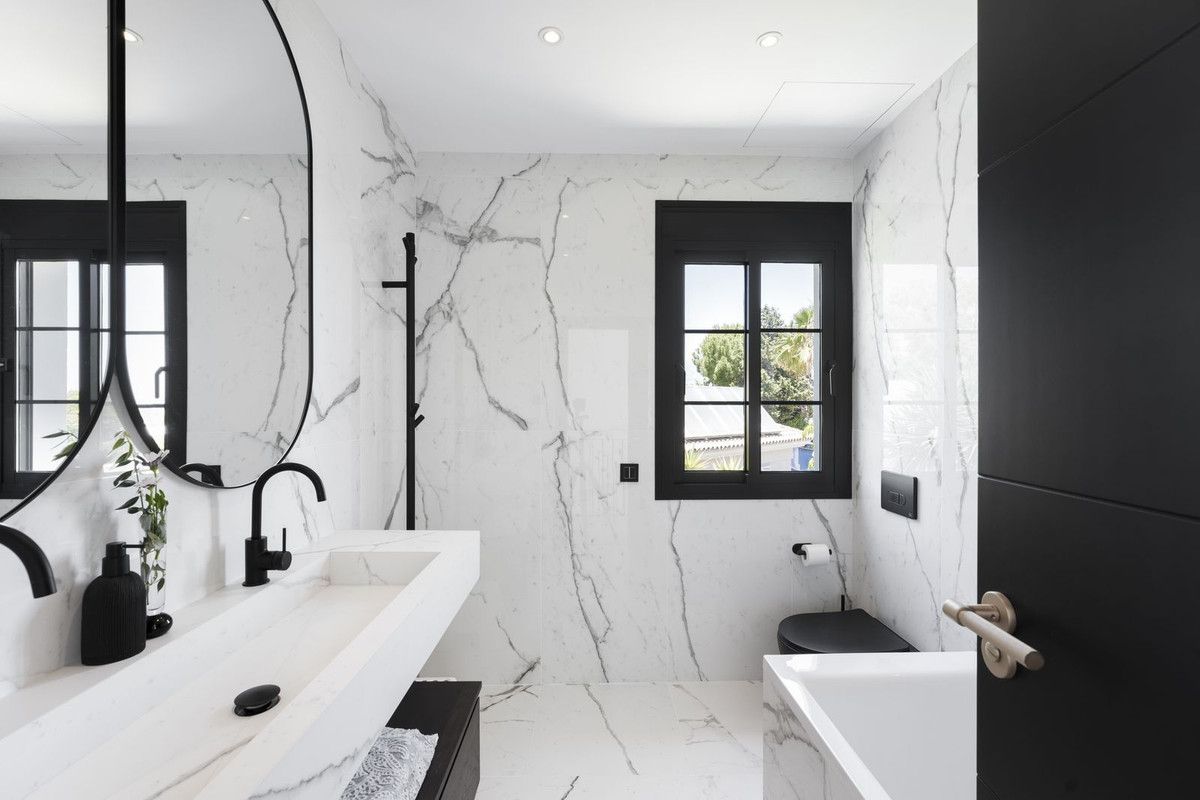 Welcome to this elegant villa that has recently gone through a total renovation located in Monte Biarritz. As you enter you are greeted by an abundance of light and space where the chosen materials blend perfectly. The generously sized ground floor of the villa has an open plan distribution with both formal and informal dining area, an office and a bedroom suite. The large terrace doors take you to the covered terrace, to the bbq area and out to the garden and heated pool. On the second floor you have the beautiful master suite, a relax area and 2 bedrooms sharing a bathroom. The basement area has been fitted with a home cinema, big laundry area, a family bathroom and the 5th bedroom, there is also direct access to the garage from here. Situated in a well established residential area with ammenities nearby and the beach is only a short distance away. A true gem of a property!!