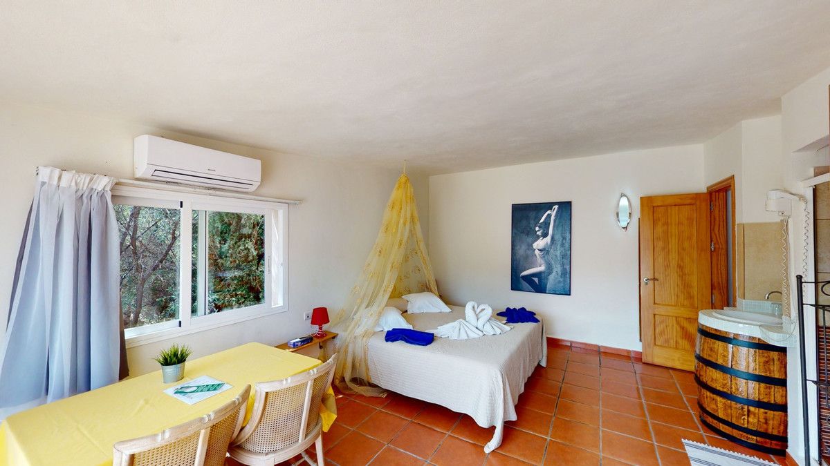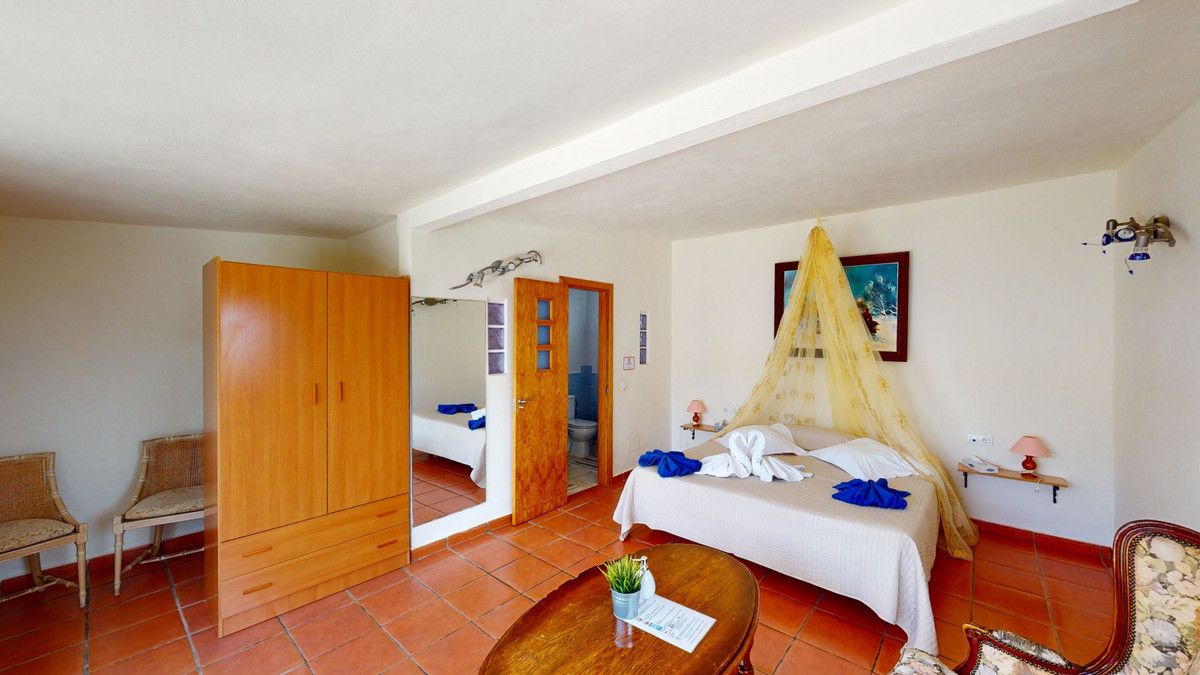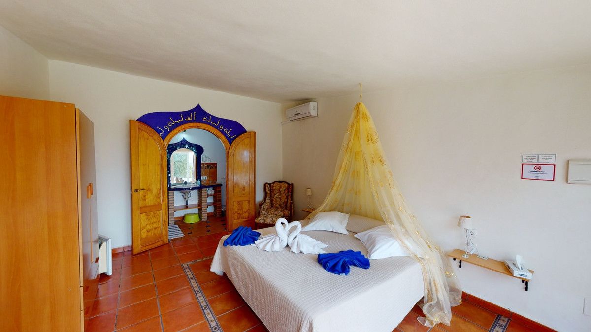 Unique finca close to the sea – Tourist rental and private living, here everything is possible. They have become scarce, the true, authentic and unique fincas on the Costa del Sol, only because of their impressive size and resulting almost unlimited possibilities. But they still exist – as here between Velez-Malaga and Arenas in the heart of the Axarquia. . . and yet only a few minutes by car from the sea. An ideal property, marketed exclusively by Casa & Terreno, for private individuals and investors alike: whether as a country hotel, bed & breakfast or horse farm. This stately estate is reached by a short concrete road, away from stress and traffic. On 140,000 square meters of land, we have a built area of 1,500 m2, 13 complete studios, 2 separate apartments and horse stable – a unique in the south of Spain. There are several buildings on the terrain. The total area of usable residential units is about 920 m2. In addition, there are about 340 m2 of storage space, a sauna, and the pools. Other highlights of the finca, which is only 40 minutes away from Malaga airport, are a large pool of about 8×15 meters with adjacent Jacuzzi and a large BBQ area, another pool of about 3×8 meters with panoramic views over the Mediterranean Sea, a fully equipped commercial kitchen, a bar area that is also fully equipped and private parking for more than 30 vehicles. Everything ready to go! The property has a fantastic southern exposure and therefore sun all day, also the fantastic sea view can be enjoyed from the whole finca. To the beach you need just 15 minutes. The apartments are in the upper part of the finca and can be used commercially or privately, there is also the second pool. The property is sold with a water right, so there are no problems with that. Here is the place where you can realize yourself in all directions. Events, weddings, corporate parties and B&B. The mix of authentic cortijo style, coupled with modern nuances creates the perfect atmosphere. It is a unique property with multiple levels, lounge areas and special features that are rarely found. We are pleased to be able to present this dream property to you soon, either personally or via virtual viewing. Because this world, it is unique – just like our Axarquía. In Andalusia. On the Costa del Sol. Here, on the sunny side of life…