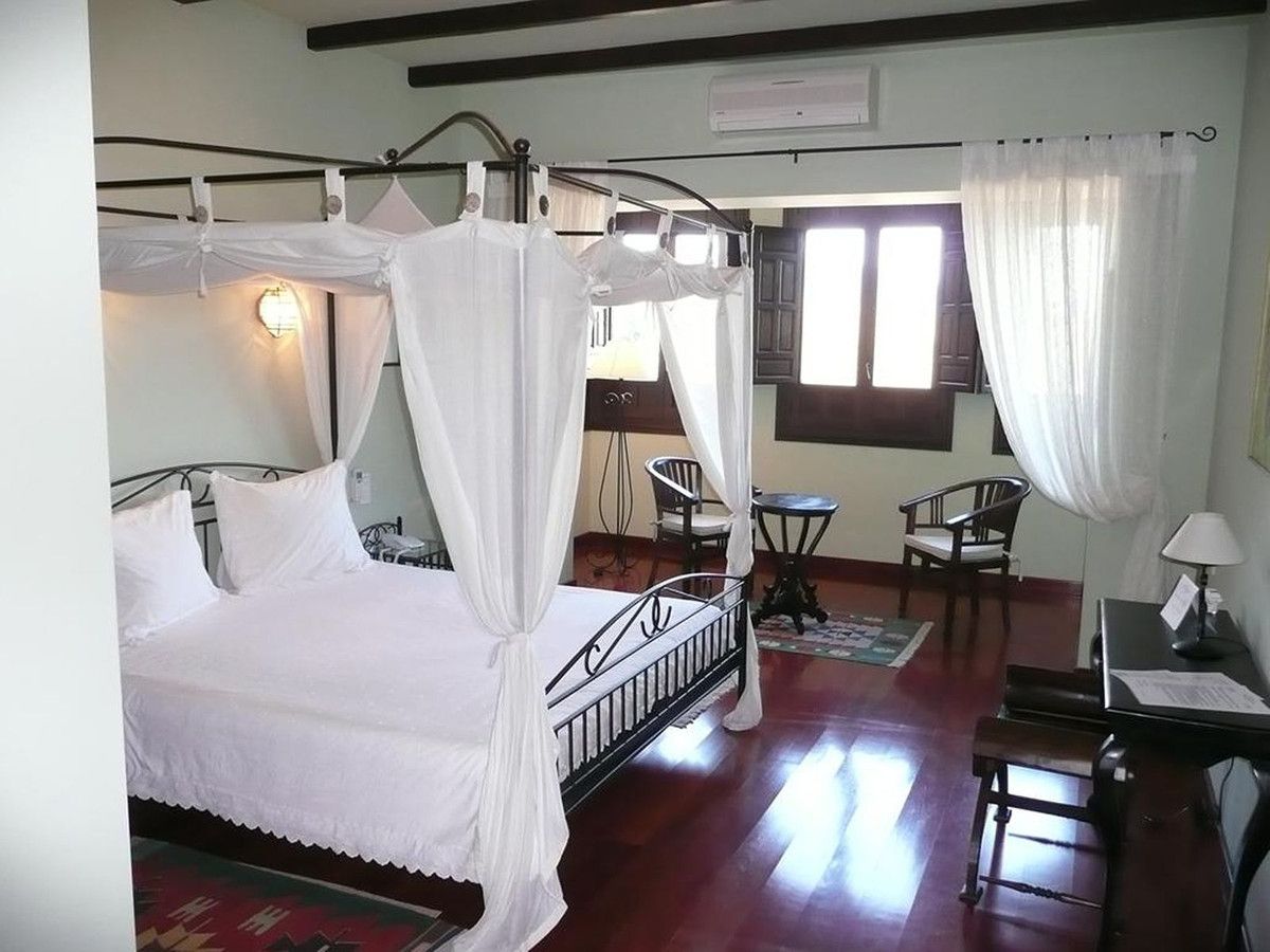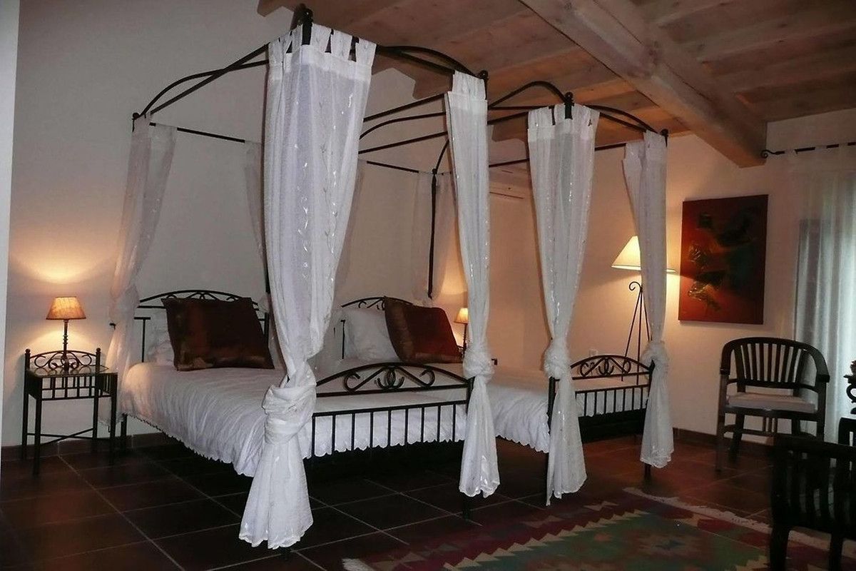 First floor: Eight spacious double bedrooms, four of which boast balconies that overlook the courtyard and/or the scenic countryside. The bathrooms exhibit consistent design elements, while the bedrooms showcase diverse color schemes to set them apart. Every room is furnished with modern four-poster beds, whether in double or twin configurations. Each bedroom offers abundant space, luxury, and is sizable enough to incorporate a seating area and a work desk. A linen storage area is conveniently located on this level as well. One level higher is the "Mirador" currently used as atelier.