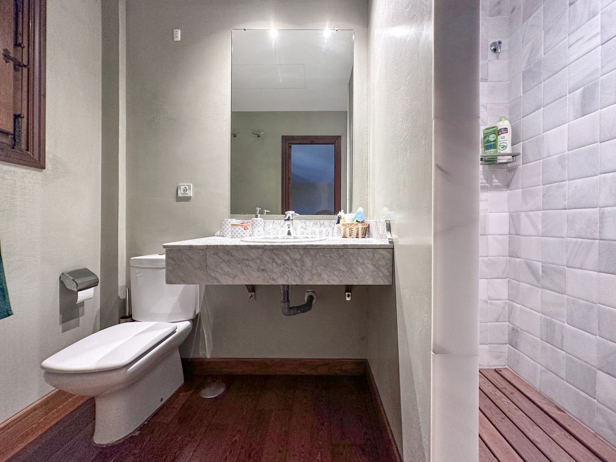 The main residence features on the ground floor an open plan layout with double height ceilings, a cosy fireplace and fully fitted kitchen with modern appliances and dining room area and a guest bathroom. On the first floor, four ensuite bedrooms all with outstanding views. Outside you have a lovely covered terrace, a large pool, and an immaculate garden framed with mature trees. Beyond the garden lies a separate studio built into the mountainside showcasing natural rock walls and adjacent a BBQ pit. Add to this the extensive plot, a chicken coop, stables, fruit trees galore and a perfect allotment area with scope to grow your vegetables. All the space needed to live an authentic country life but only a five-minute drive to amenities.