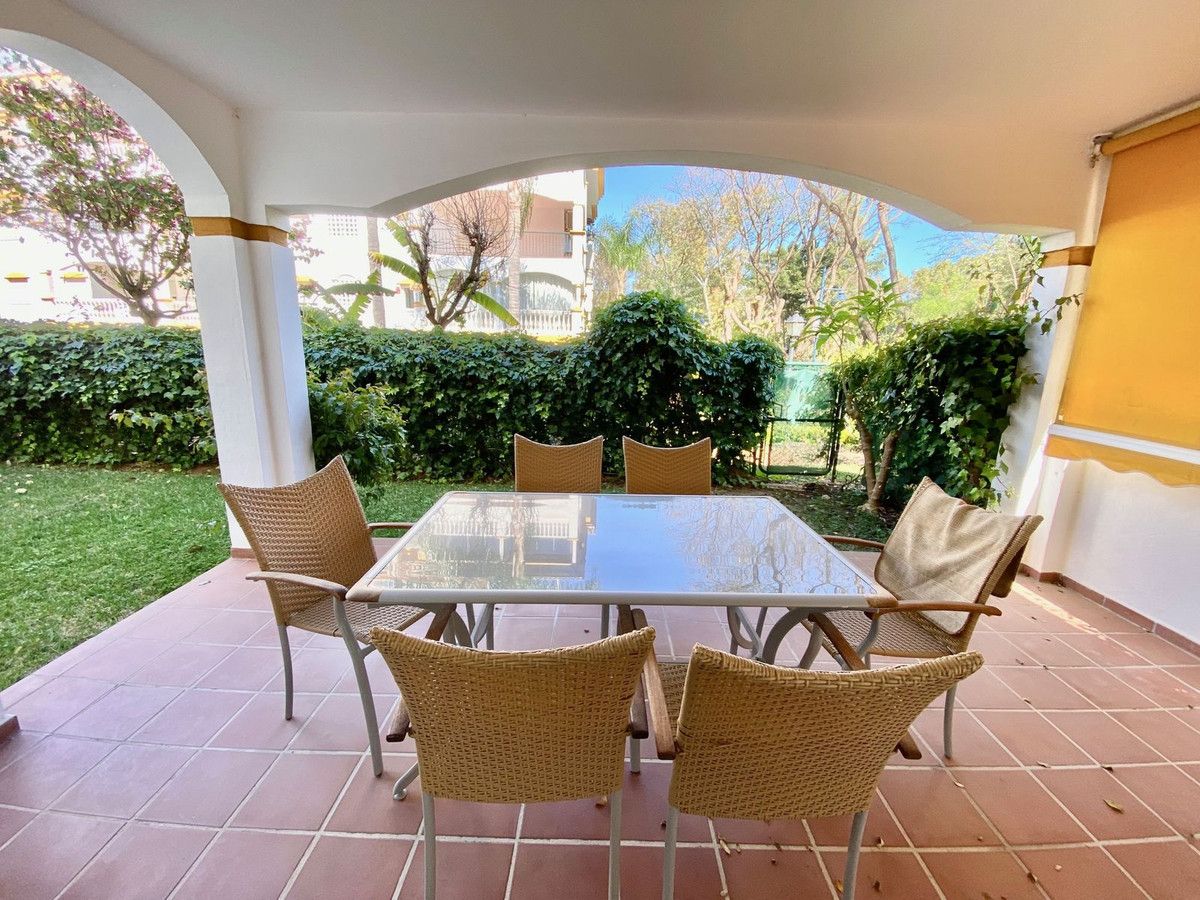 Excellent ground floor apartment in a prestigious development in Puerto Banús, Costa del Sol. South facing with a small private garden.
