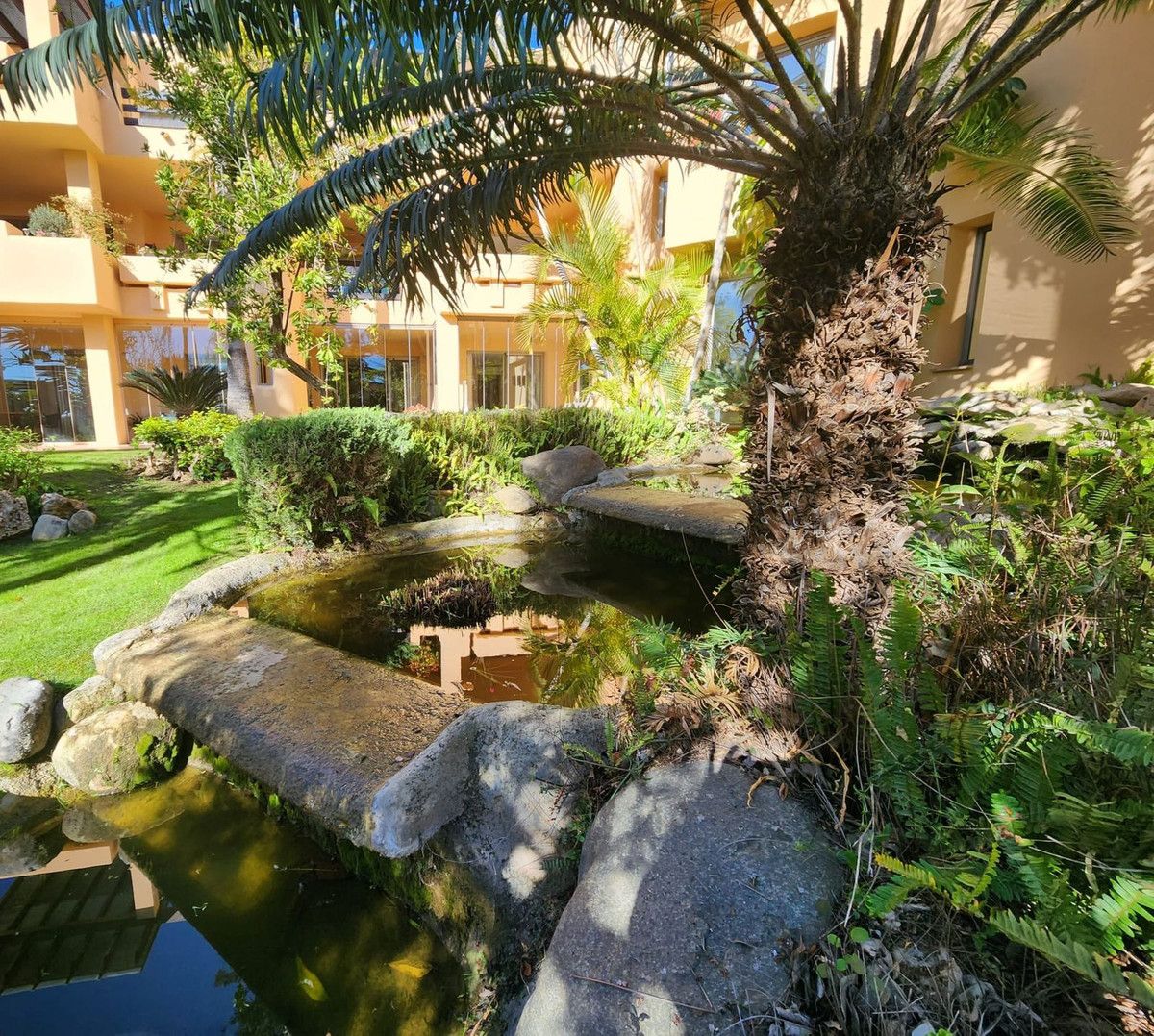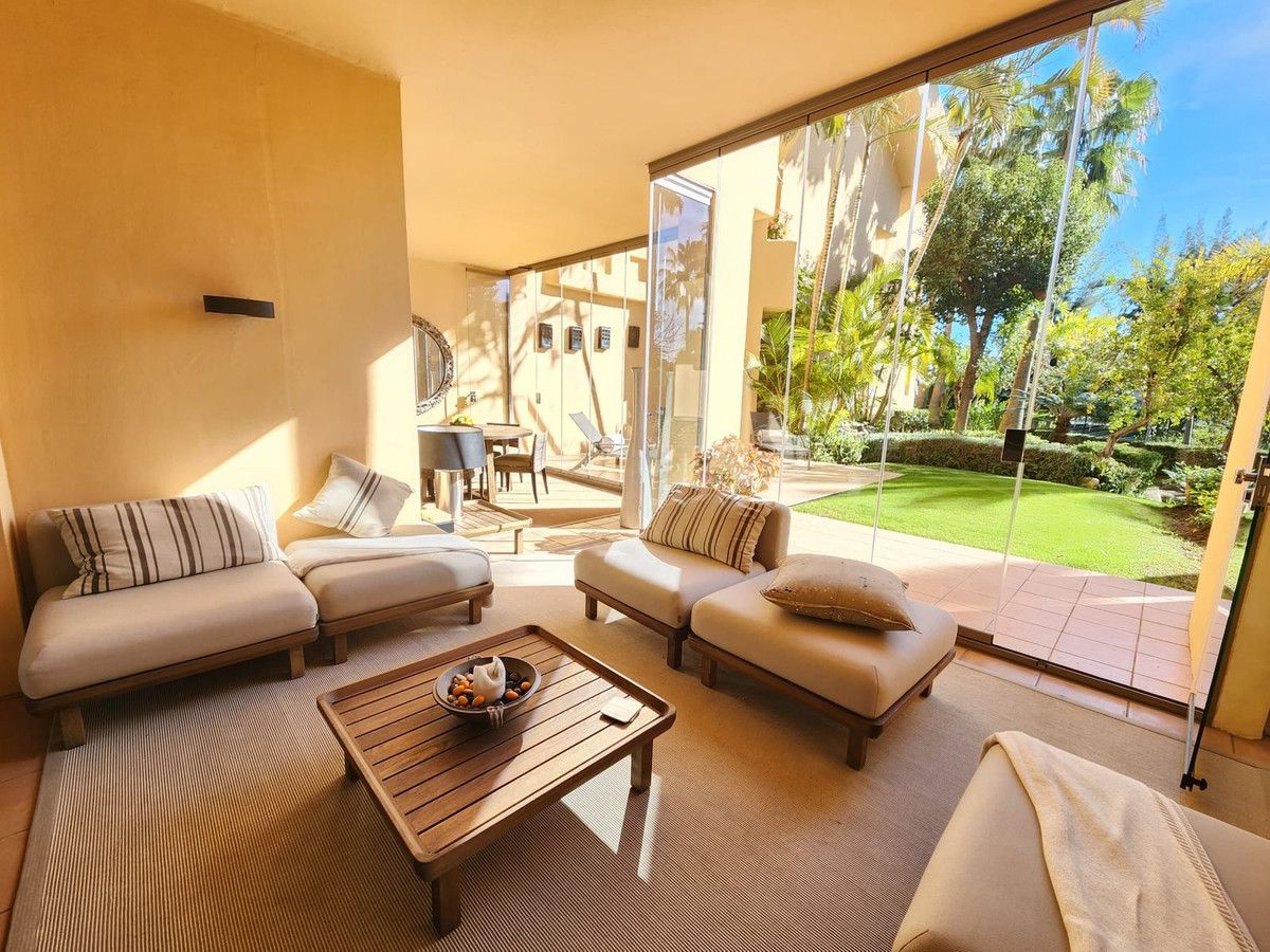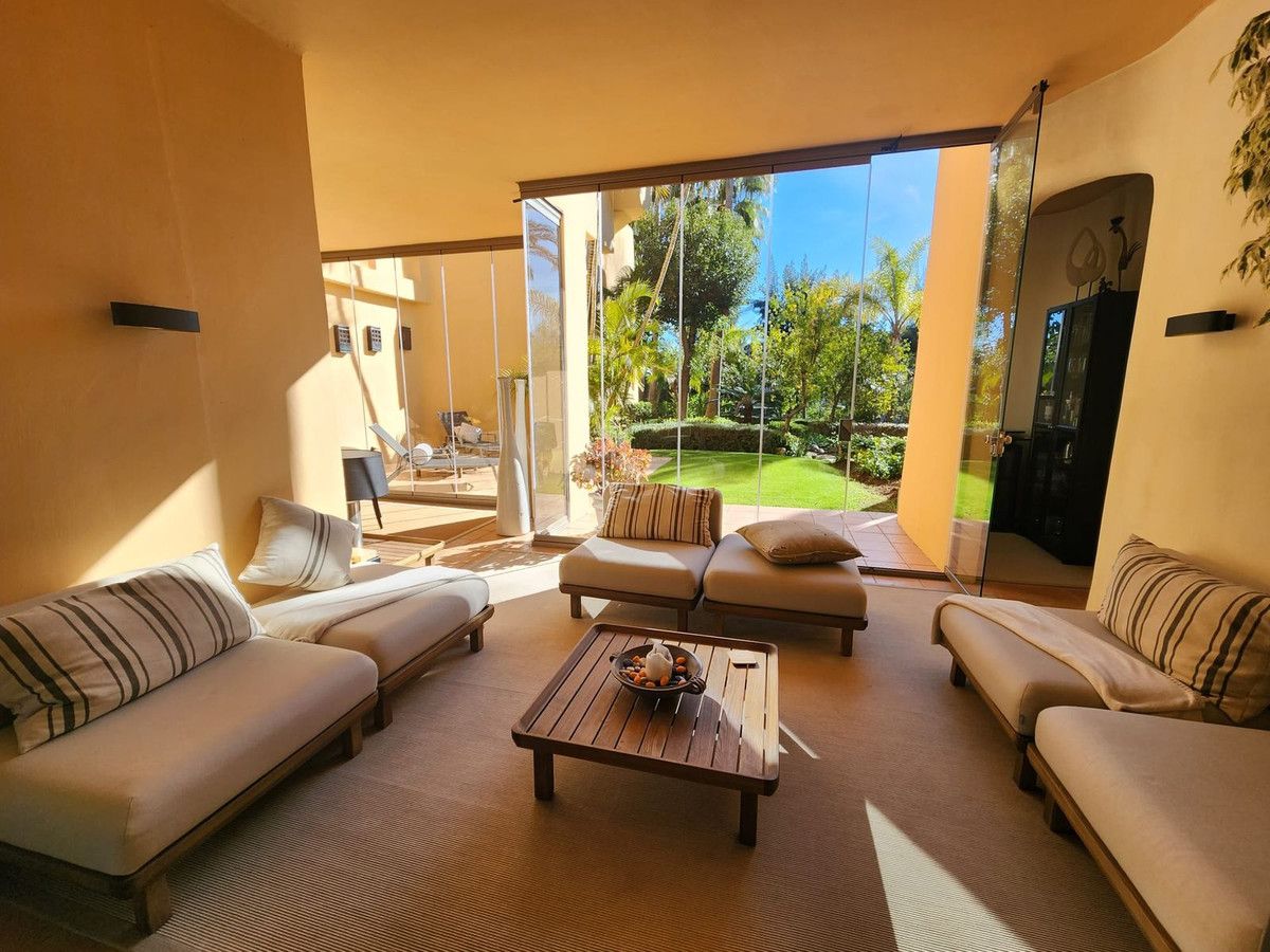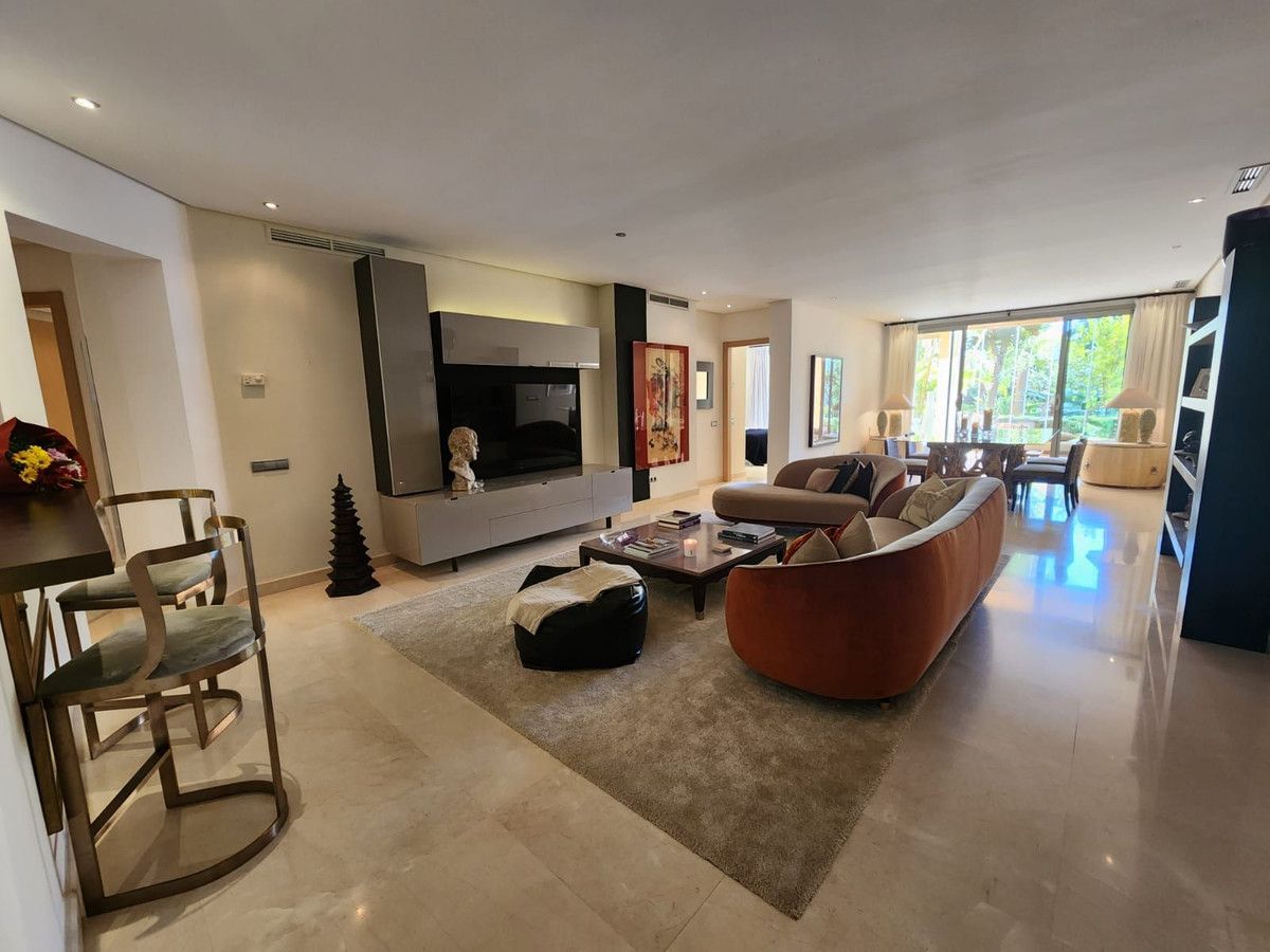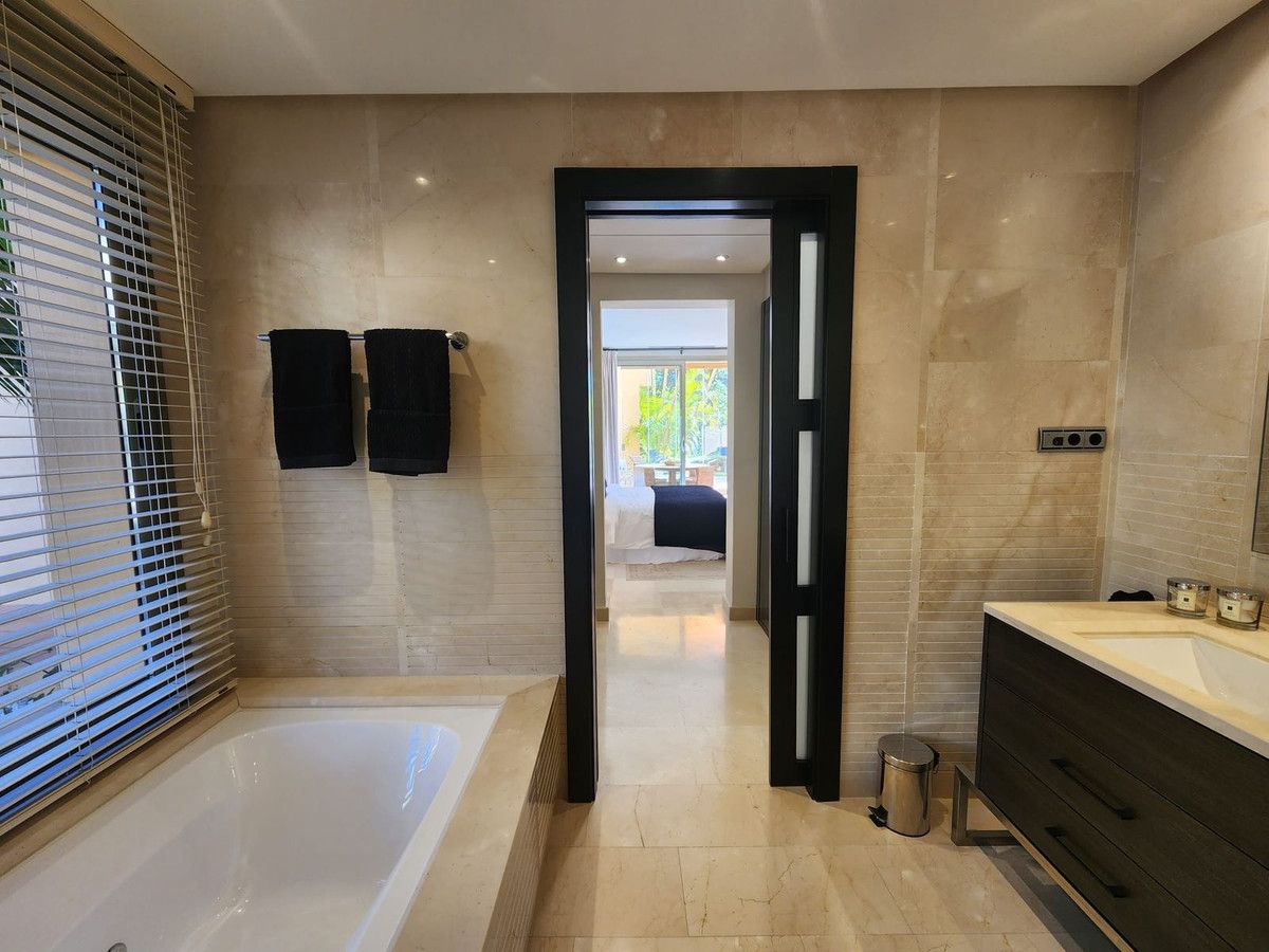 Fabulous opportunity to buy a luxury 3 bedroom ground floor apartment in one of the most sought after places to live in Marbella. This luxury apartment is located in the Mansion Club one of Melvin Villarroel's design in exclusive Sierra Blanca area of Marbella. Mansion Club is renowned for it's design and beautiful landscaped gardens lwhich have really nice water features through out. A complete Oasis and yet so near the centre of Marbella and Puerto Banus with it's Marinas, long sandy beaches, beach clubs, shops, restaurants, night club everything you need under the sun which shines all year round. It is a gated complex with 24hrs security.