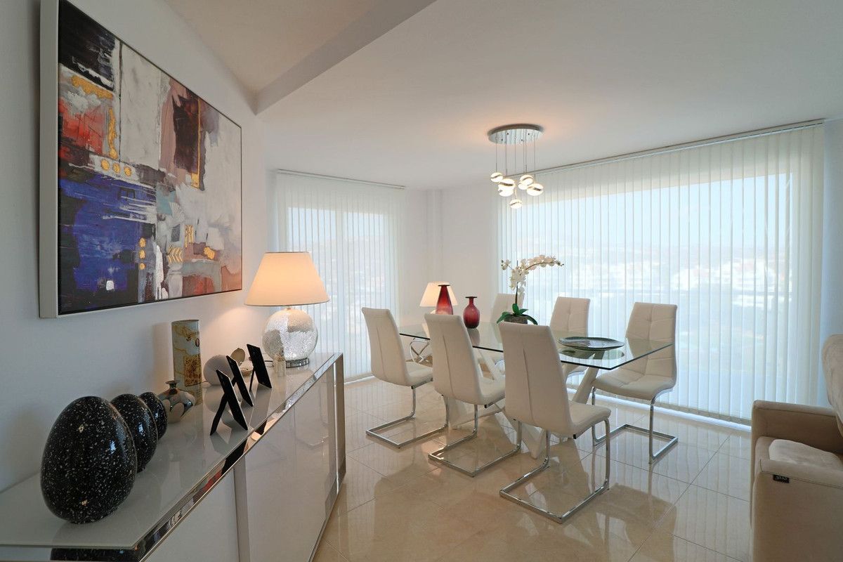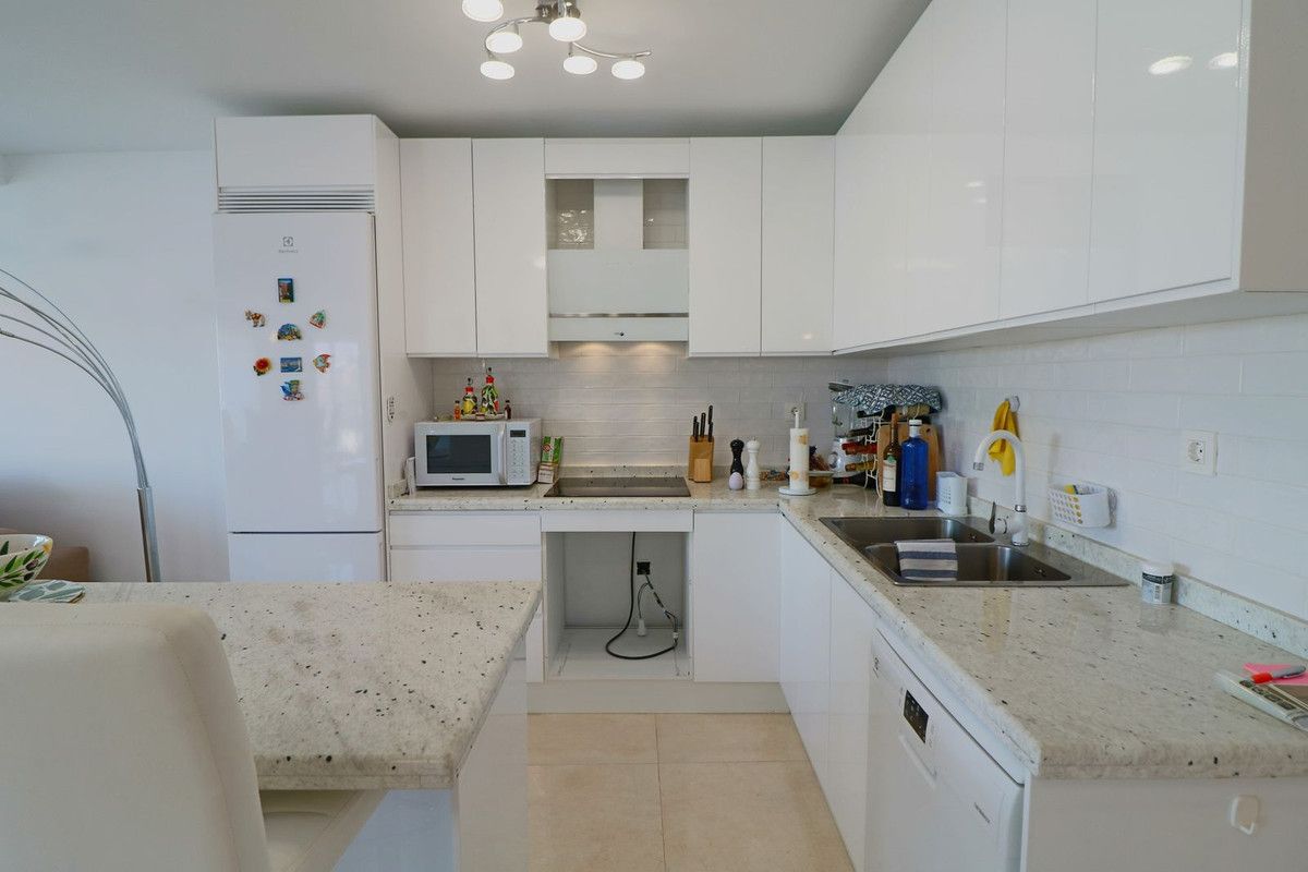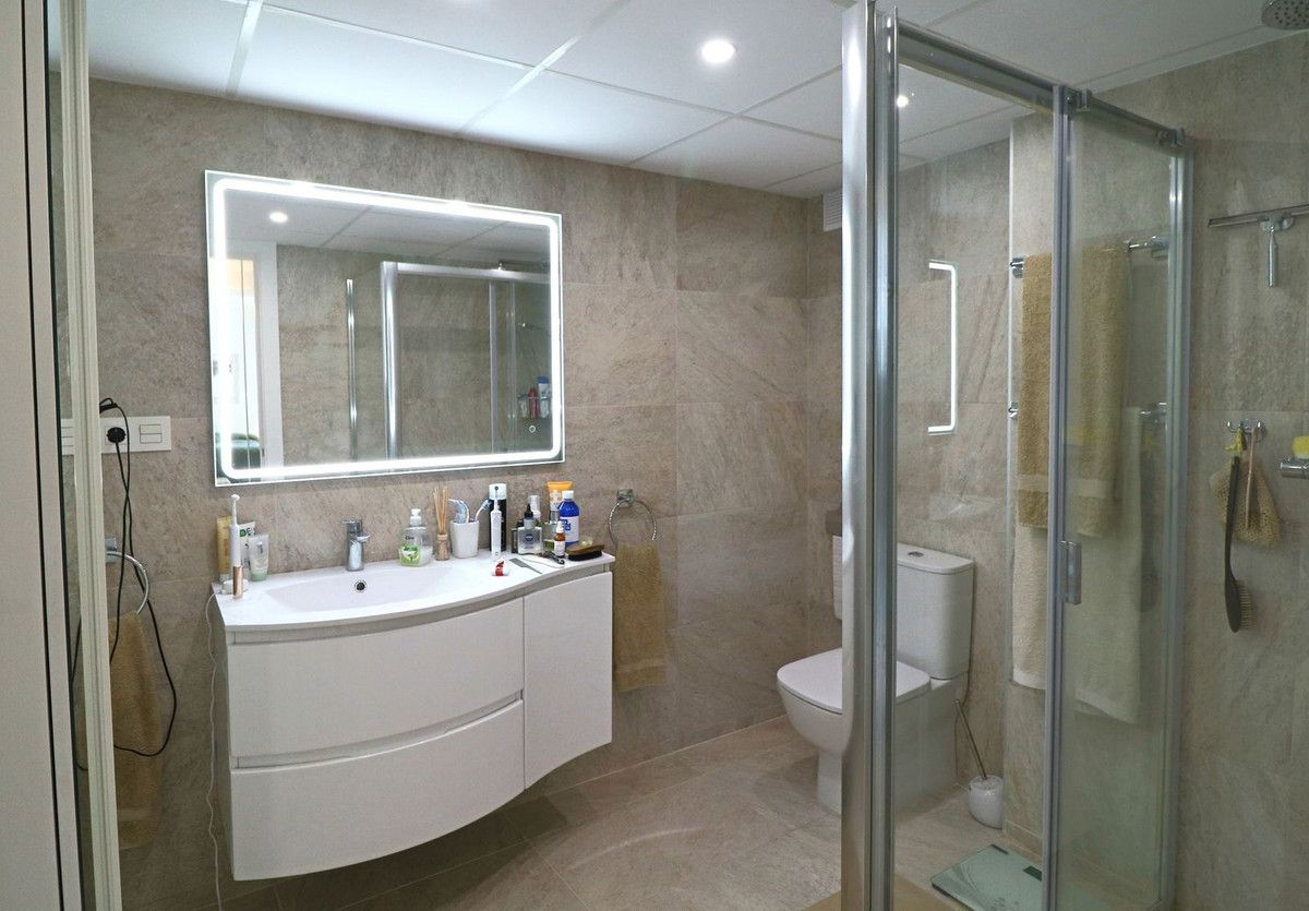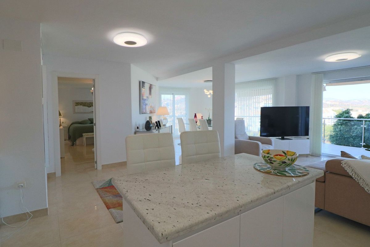 Spectacular 5 bedroom flat on an elevated ground floor with unobstructed views of the Miraflores Golf Course, Mijas, and the mountains, in a Luxury Urbanisation with extensive gardens and a large communal swimming pool with spectacular views over Mijas and Fuengirola and the Mediterranean Sea in the background. In fact, these are 2 flats with separate entrances. The top floor flat consists of a spacious living/dining room, a modern open plan fully fitted kitchen, 3 large bedrooms, 2 full bathrooms and a magnificent terrace with unobstructed views over the golf and the mountains. A second flat situated on a lower floor consists of a second living/dining room with a modern open plan fully fitted kitchen, a master bedroom with en suite bathroom, a second bedroom, a second bathroom/toilet and finally a large terrace with the same unobstructed views as the top floor flat. The urbanization stands out for its magnificent communal swimming pool with stunning views of the Mediterranean Sea, the mountains and the Mijas / Fuengirola Valley. We are located in a very consolidated area of Mijas Costa, with several golf courses such as the Miraflores Golf Club, La Siesta, etc., Finally, the distance to several of the magnificent beaches of the Costa del Sol is only 2 km, to the centre of Marbella is 17 km, to Fuengirola only 14 km and 40 km to the international airport of Malaga via the next exit to the motorway AP7.