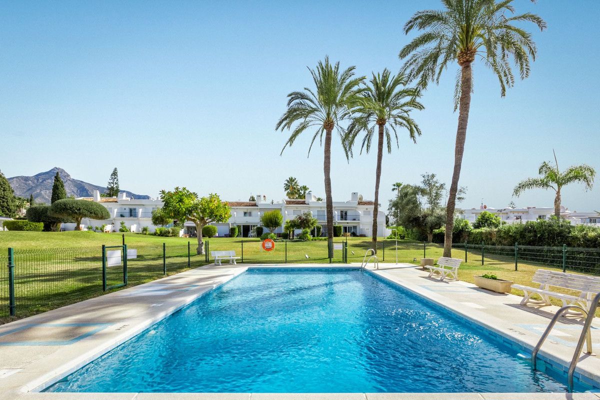 Garden Apartment for Sale in Aloha, Aloha Gardens, Nueva Andalucia, with garden and pool views. Corner Unit with very spacious terrace.