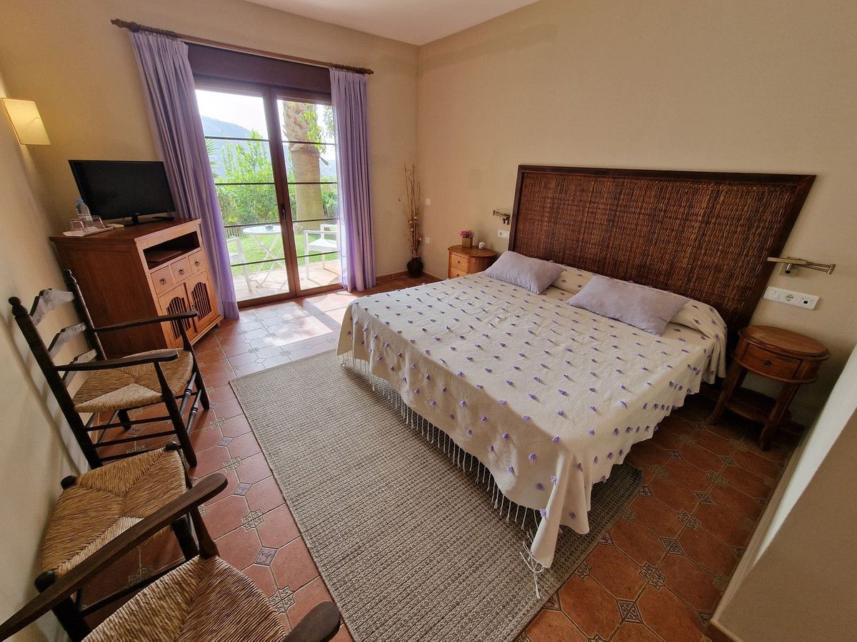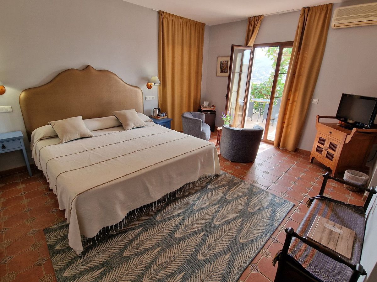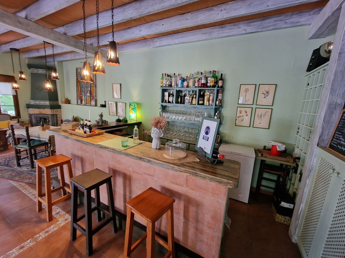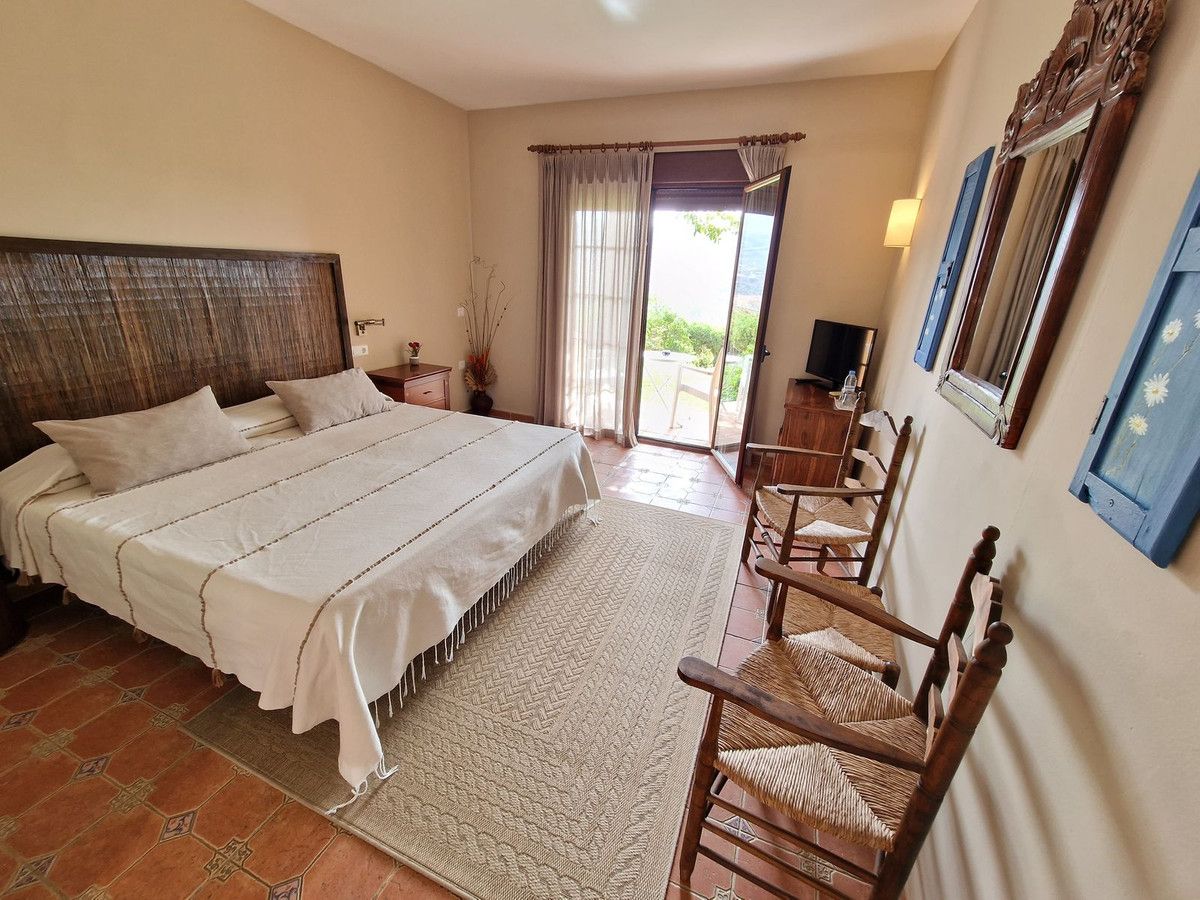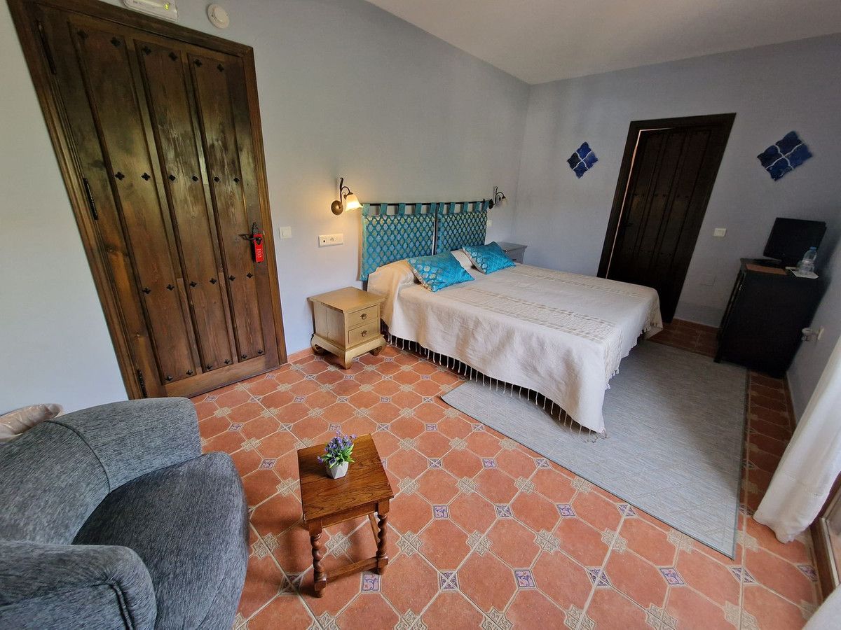 Through the entrance gates there is a car park sufficient for all guests residing at the hotel. The main hotel consists of 2 floors, on the ground floor there is an entrance hall with 2 toilets, a reception area, a split level lounge with patio doors onto a terrace, a restaurant with a fully stocked bar and store room, an industrial size kitchen with all of the equipment and then 3 further rooms currently used as 2 large storage rooms and a laundry room. Upstairs there is a family suite with 2 bedrooms, a shower room and a large terrace. There are a further 2 separate rooms with their own ensuite bathrooms. The rooms are all finished with solid wood doors, fitted wartdrobes and AC units. Separate to the main hotel there is a small block of a further 7 bedrooms, all with their own ensuite bathrooms and terraces to enjoy the views of Mount Maroma. The hotel is surrounded by well kept gardens, paths, terraces, established plants and trees and a large L shape pool. Hotel Cortijo de Salia is a turn key opportunity for anyone wanting to start a hotel business in Andalucia.