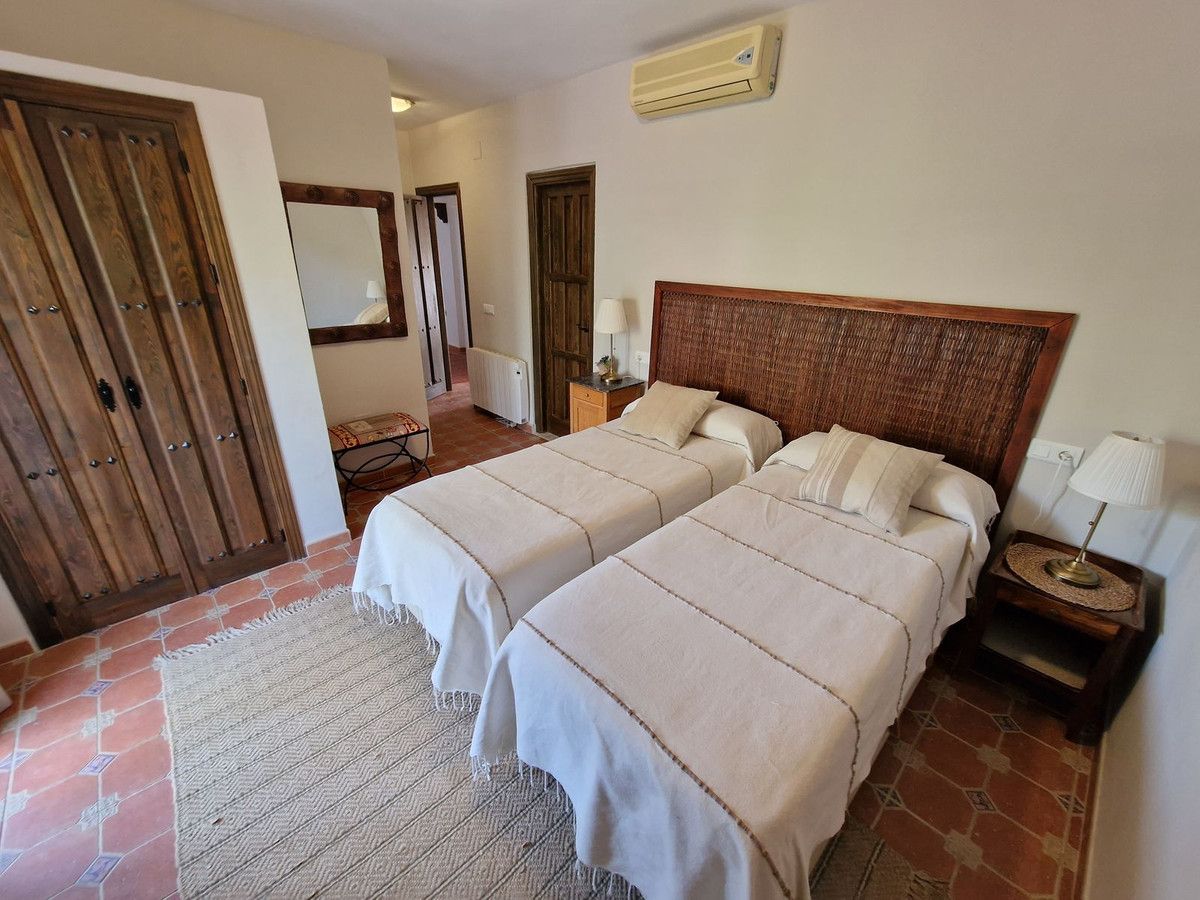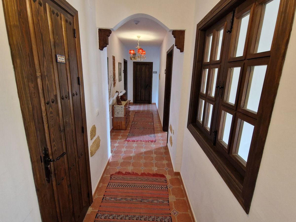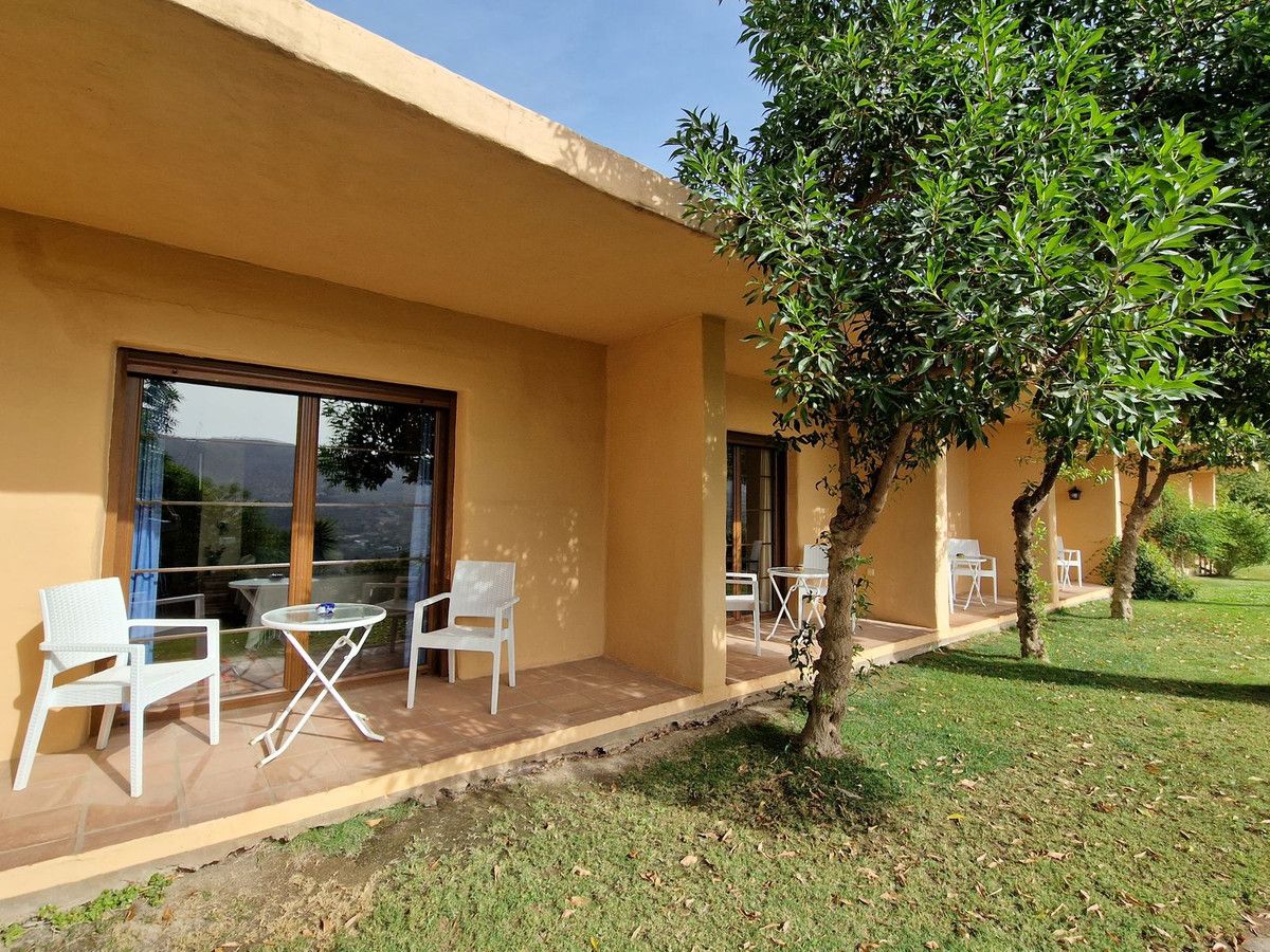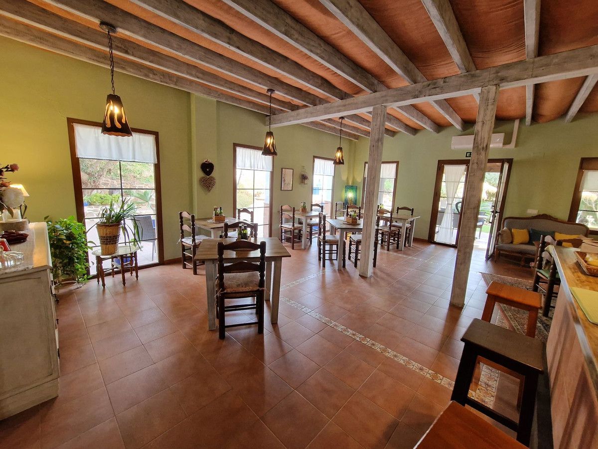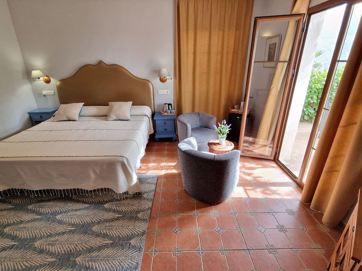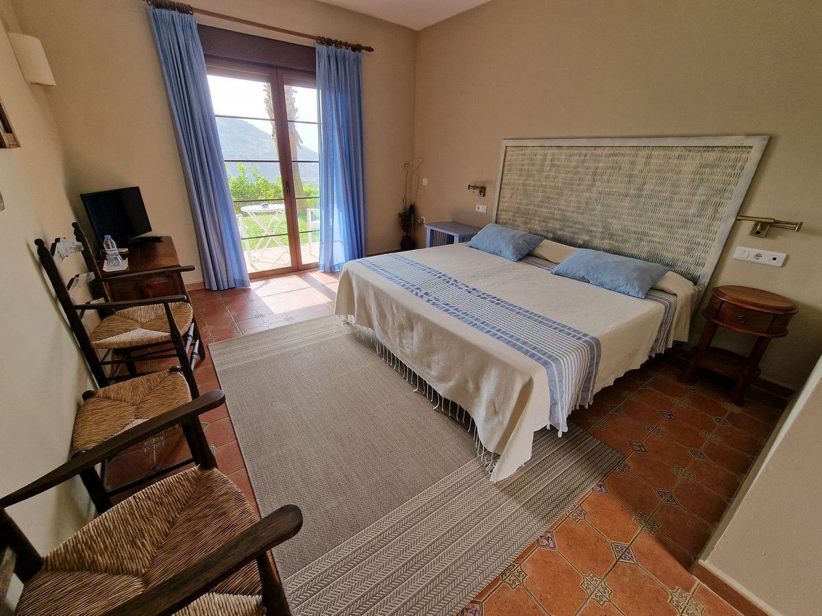 Through the entrance gates there is a car park sufficient for all guests residing at the hotel. The main hotel consists of 2 floors, on the ground floor there is an entrance hall with 2 toilets, a reception area, a split level lounge with patio doors onto a terrace, a restaurant with a fully stocked bar and store room, an industrial size kitchen with all of the equipment and then 3 further rooms currently used as 2 large storage rooms and a laundry room. Upstairs there is a family suite with 2 bedrooms, a shower room and a large terrace. There are a further 2 separate rooms with their own ensuite bathrooms. The rooms are all finished with solid wood doors, fitted wartdrobes and AC units. Separate to the main hotel there is a small block of a further 7 bedrooms, all with their own ensuite bathrooms and terraces to enjoy the views of Mount Maroma. The hotel is surrounded by well kept gardens, paths, terraces, established plants and trees and a large L shape pool. Hotel Cortijo de Salia is a turn key opportunity for anyone wanting to start a hotel business in Andalucia.