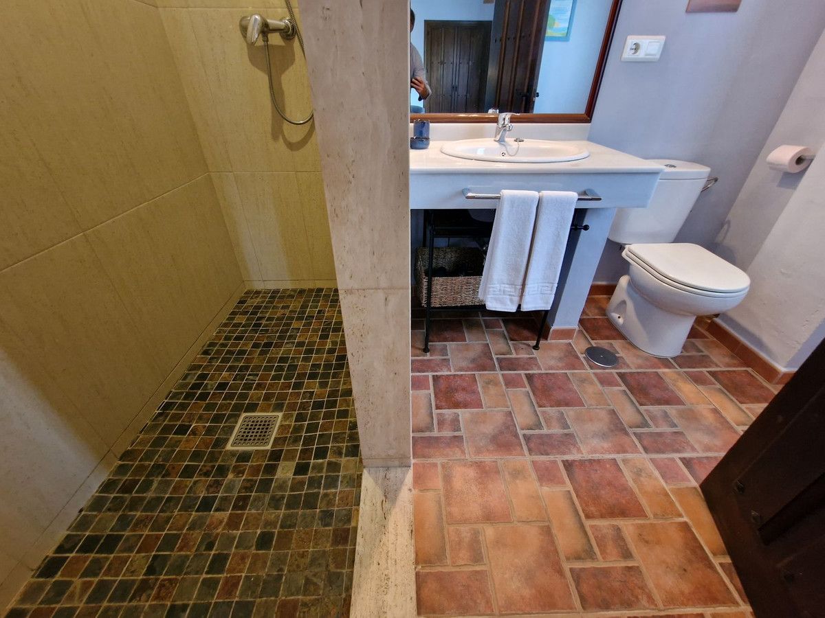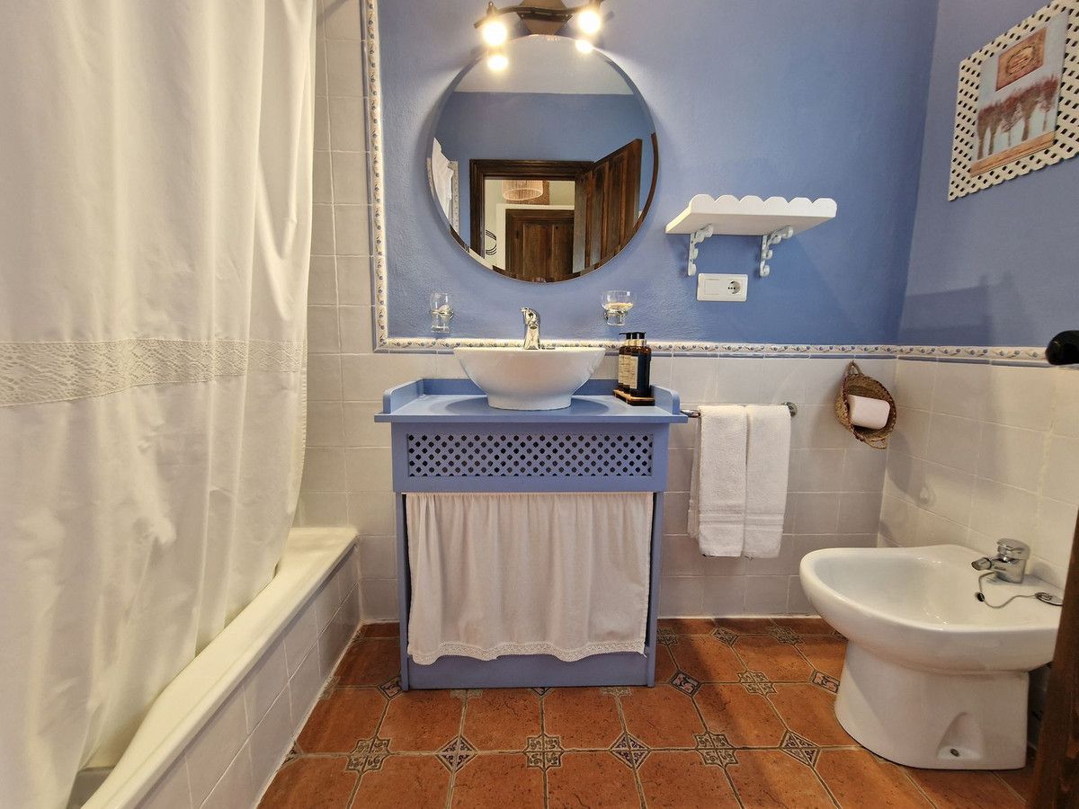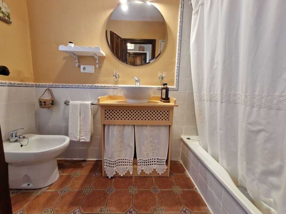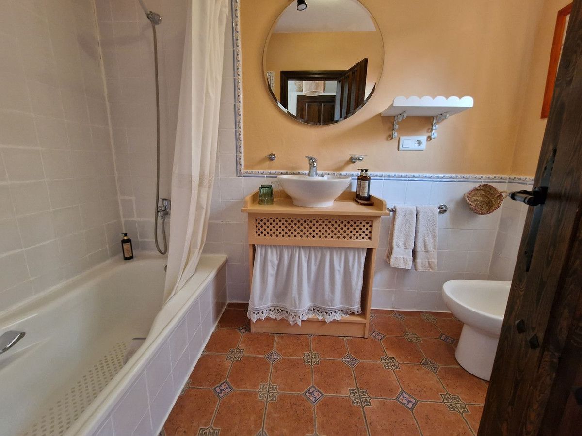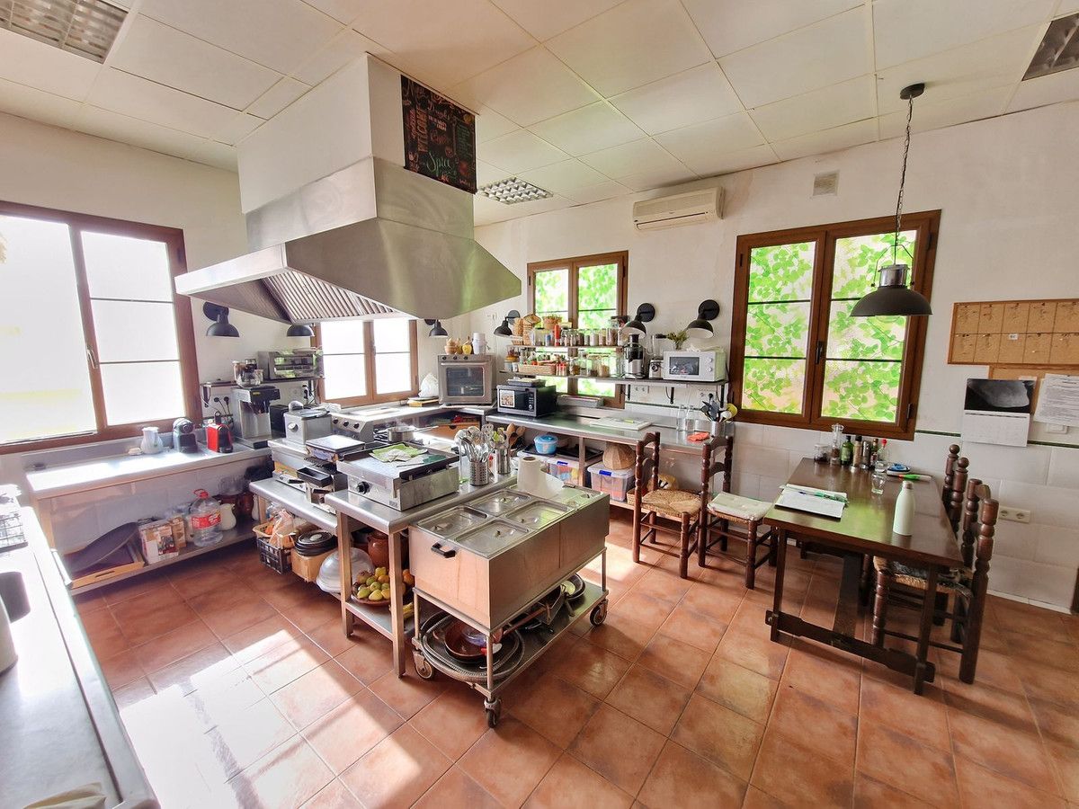 Through the entrance gates there is a car park sufficient for all guests residing at the hotel. The main hotel consists of 2 floors, on the ground floor there is an entrance hall with 2 toilets, a reception area, a split level lounge with patio doors onto a terrace, a restaurant with a fully stocked bar and store room, an industrial size kitchen with all of the equipment and then 3 further rooms currently used as 2 large storage rooms and a laundry room. Upstairs there is a family suite with 2 bedrooms, a shower room and a large terrace. There are a further 2 separate rooms with their own ensuite bathrooms. The rooms are all finished with solid wood doors, fitted wartdrobes and AC units. Separate to the main hotel there is a small block of a further 7 bedrooms, all with their own ensuite bathrooms and terraces to enjoy the views of Mount Maroma. The hotel is surrounded by well kept gardens, paths, terraces, established plants and trees and a large L shape pool. Hotel Cortijo de Salia is a turn key opportunity for anyone wanting to start a hotel business in Andalucia.