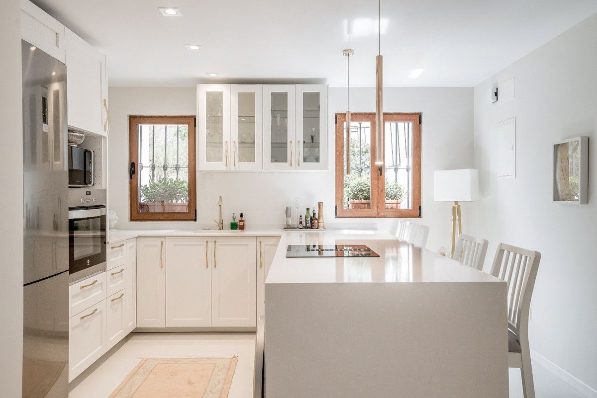 Set in a secure gated community, this special property sits in an elevated position allowing beautiful views of the surrounding nature and sea. Elevated Ground Floor Apartment. Benahavis is one of the most exclusive municipalities of Marbella, Is in fact renowned for its white village and untouched nature. This area is also home to some of the most lavish Villas in the world making every property acquire in Benahavis a secure valuable investment. Less than 15 minutes' drive to Puerto Banus and 10 minutes to San Pedro town & beach it provides a perfect balance between relaxation & recreation. The property makes for an ideal permanent family or holiday home. The small and very well-run community, is suitable for individuals or families who are looking for tranquility and love enjoying beautiful surroundings. The community pool has stunning views of the sea, golf and mountains. You will find a welcoming patio as you enter, giving the property a picturesque charm. The main outdoor space is the South /South east facing great sized terrace with breathtaking views out to sea, country & golf valley. This lovely Apartment has a spacious corner open plan layout with a very attractive open plan kitchen that integrates and flows perfectly with the lounge. The property provides 2 spacious bedrooms and 2 recently renovated en-suite bathrooms.