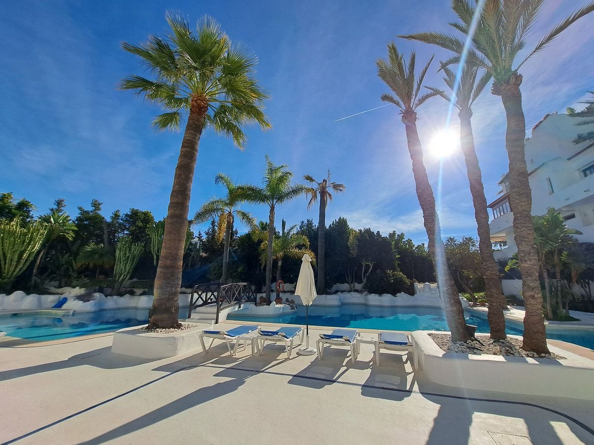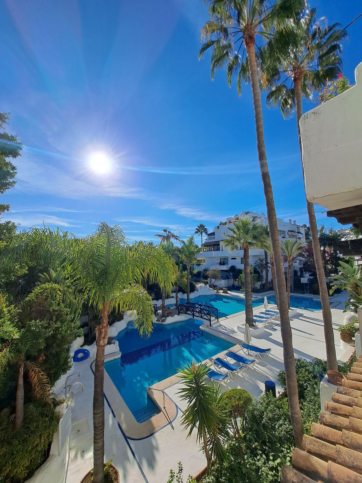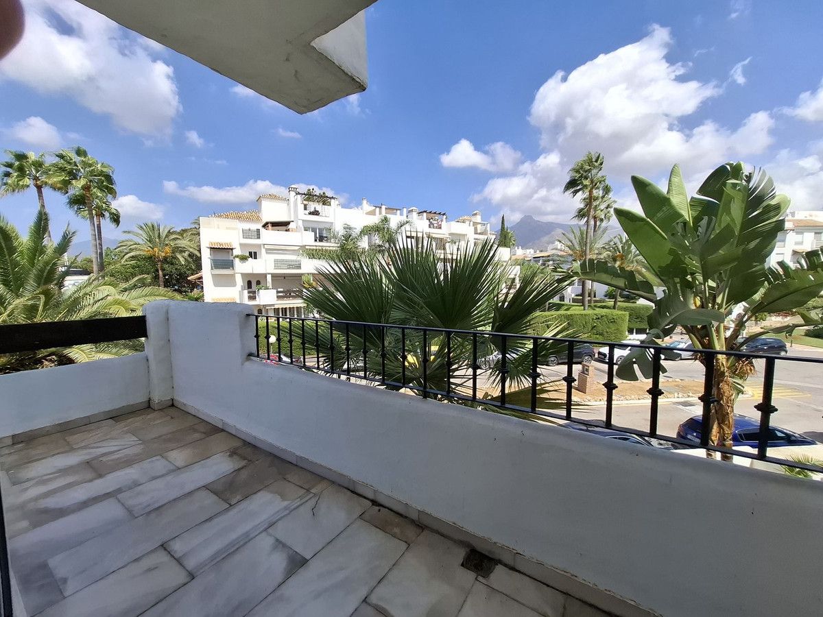 Very nice corner apartment, facing East South and North, with morning sun: many meters of terraces that surround a large part of the house, with open views of the Marbella mountain and looking out onto the fantastic common areas.