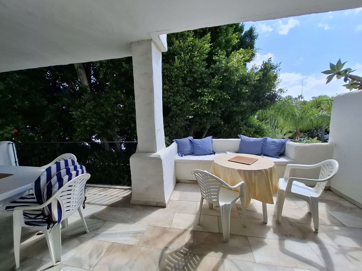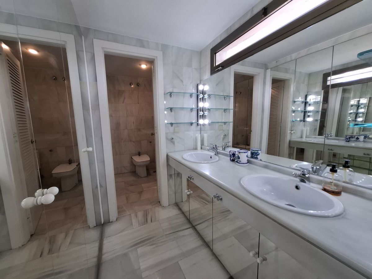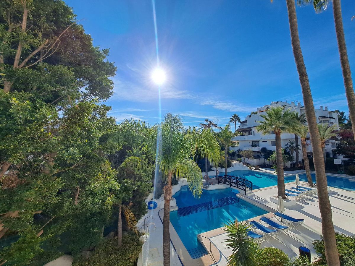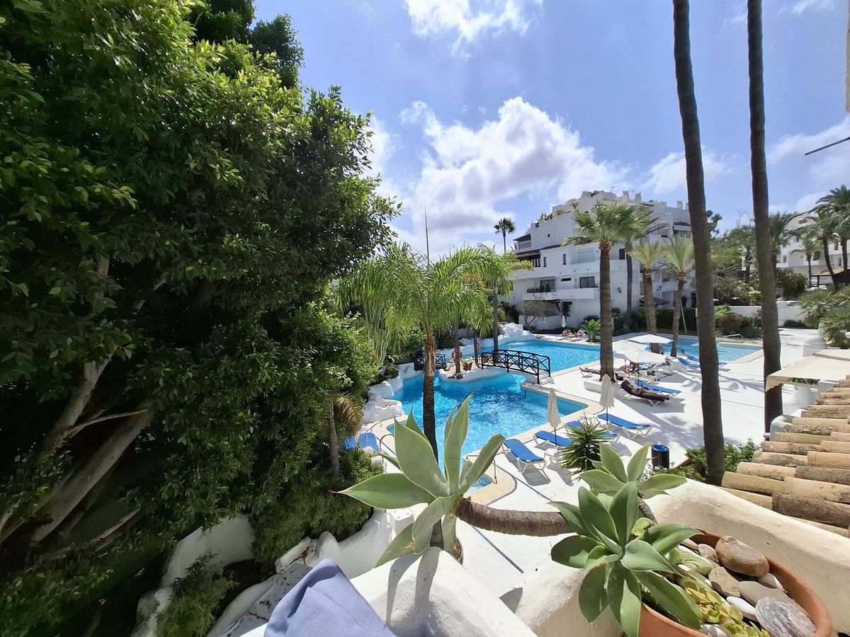 Very nice corner apartment, facing East South and North, with morning sun: many meters of terraces that surround a large part of the house, with open views of the Marbella mountain and looking out onto the fantastic common areas.