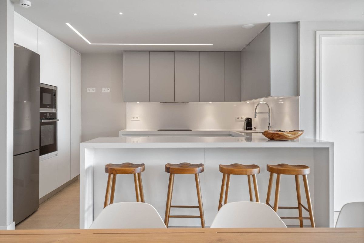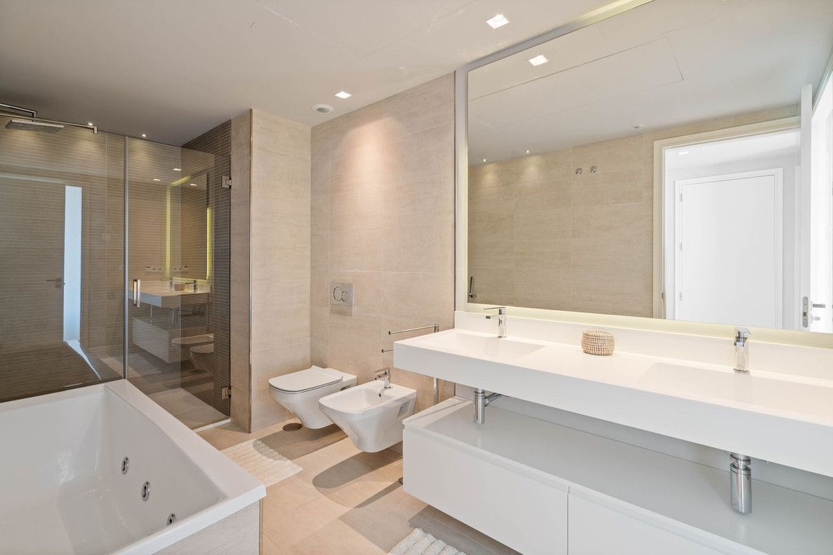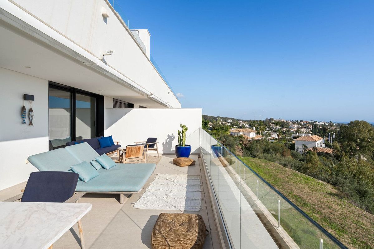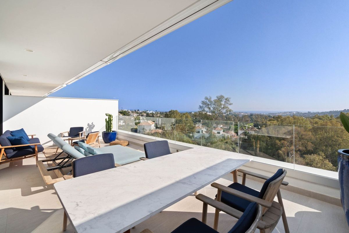 This modern 2 bedroom apartment with stunning sea views is located in the exclusive boutique project Azahar de Marbella (2018) in Nueva Andalucía. It is fully equipped with a modern open kitchen, spacious living room, 2 spacious bedrooms and 2 bathrooms. Large wall-to-wall windows in the living room and master bedroom provide plenty of light and allow indoor and outdoor space to flow harmoniously into one another. From the terrace you really have an amazing view over the green valley in front towards the sea. Furthermore there is 1 parking space and a large storage.