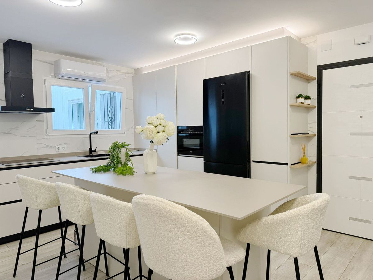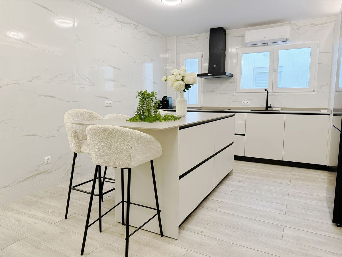 Discover this recently renovated urban flat of 174 m2, perfectly situated in the heart of San Pedro de Alcántara. This second-floor property with an elevator boasts six individually designed bedrooms and five en suite bathrooms, offering ample space and privacy. The modern, open-concept kitchen seamlessly connects to the apartment, creating a welcoming environment for social gatherings. The property includes air conditioning, fitted wardrobes, double-glazed windows, new flooring and an electrical system.