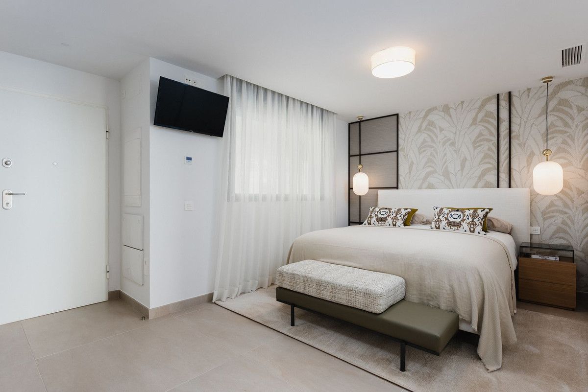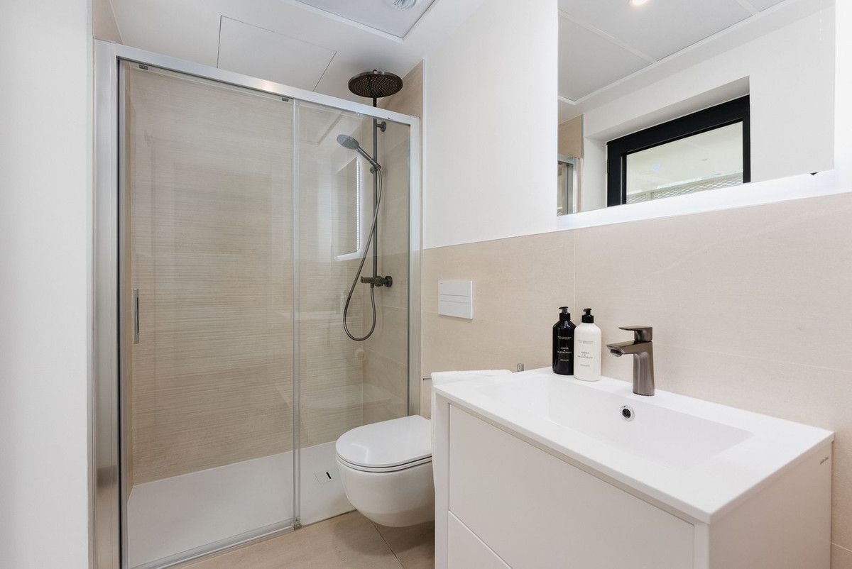 The apartment has a modern floor plan with an open kitchen equipped with top quality appliances, all very tastefully and practically designed. From the living area you freely go to the incredibly spacious terrace, from where you have a magnificent view of the sea and the nearby Mediterranean park.The train stop is actually a few minutes as the crow flies.The historic town of Fuengirola, with its long promenade, offers an incredible variety of activities, be it water sports, beach relaxation, cafes, restaurants or shops.Everything is within walking distance and very easily accessible. The residential complex is completely gated and provides great facilities for its residents and visitors.