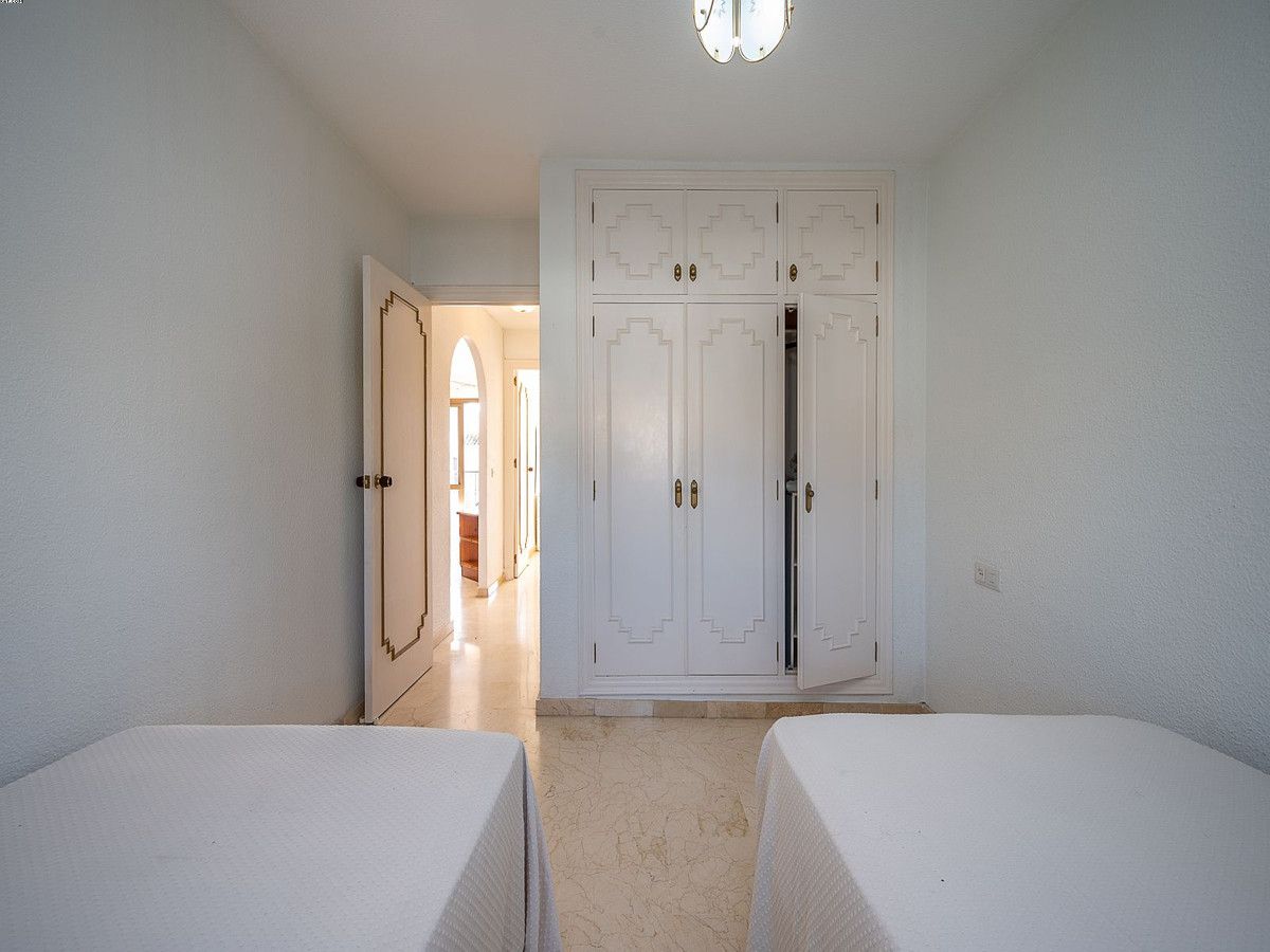 LOCATION, LOCATION! Excellent apartment within walking distance to the beach, shops, restaurants & the fantastic sports center which has it all tenis, padel, gym! This great, south facing, 2 bedroom, 1 bathroom apartment is located on the second floor of the popular and very well maintained El Salado complex in Riviera Del Sol. This property has great potential. The large terrace is south facing, big enough to dine on together with a seating area. This complex has a nice communal swimming pool, very spacious gardens & is currently being painted. For your information this lovely apartment is on the 2nd floor but only 8 steps above road level. Due to the great location this one will sell quickly! We have the keys!
