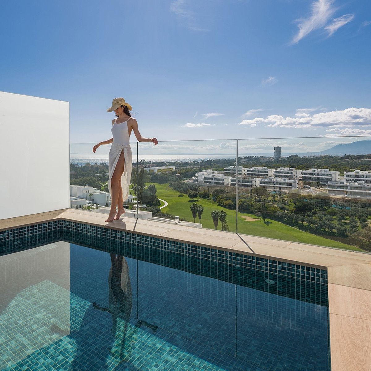 One of the best parts of this home is the outdoor space – and there's plenty of it. With 173 m² of sunny terraces, including a huge rooftop solarium, you'll have everything you need to soak up the Mediterranean lifestyle. Lounge by your private pool, unwind in the chill-out zones, or host family and friends in the outdoor kitchen with a built-in BBQ and dining area – all with fantastic sea and golf views.