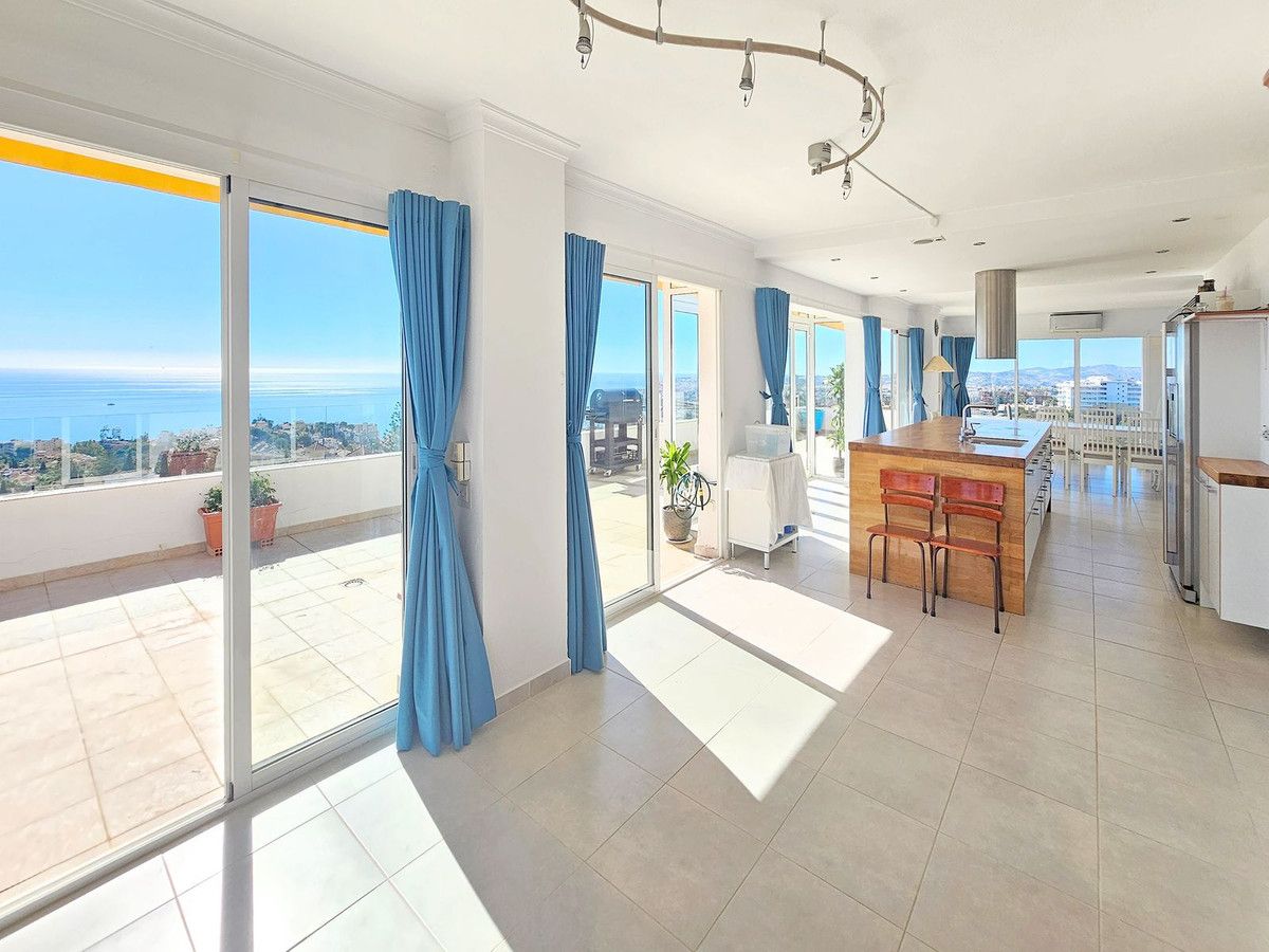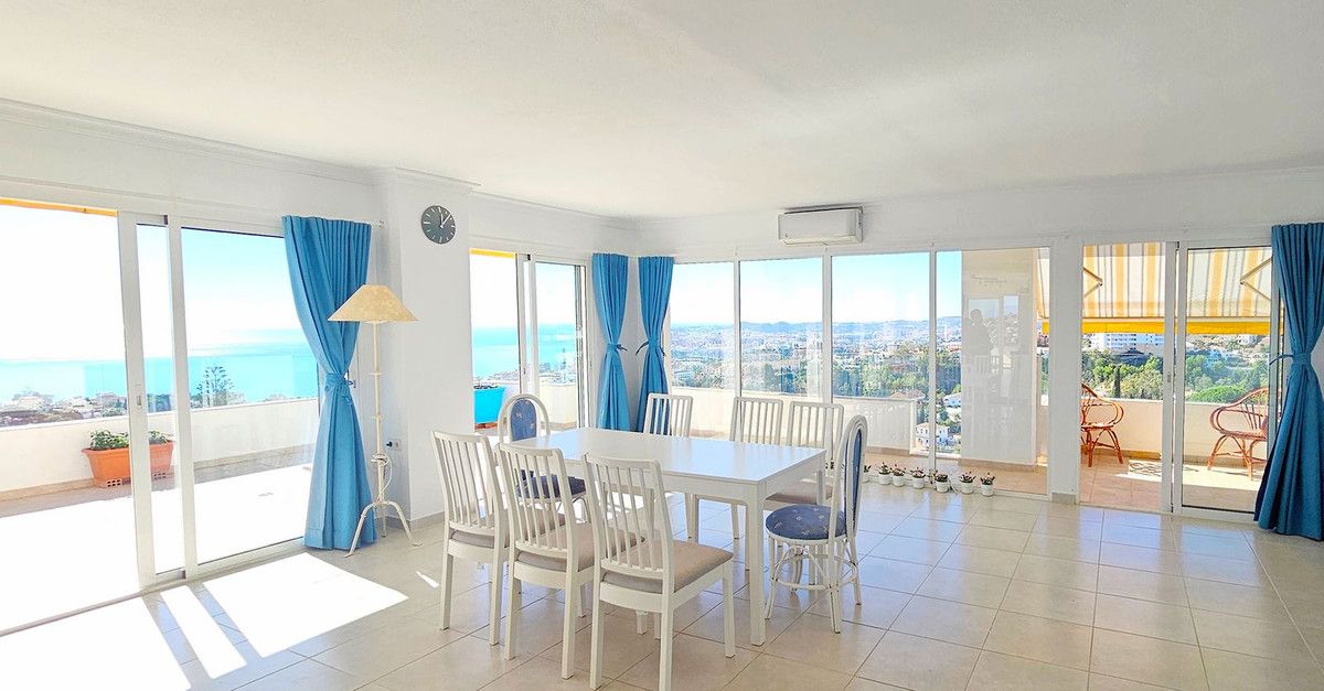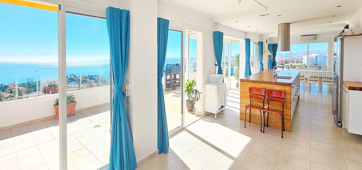 Recently reduced to €620,000 for a quick sale Stunning penthouse offering breathtaking panoramic coastal views, located just a short drive from the beach and in close proximity to the town, restaurants, and all conveniences.This three-bedroom penthouse emerged from the combination of two separate units, creating an exceptionally spacious lounge area. The recent refurbishment has transformed the apartment into an open and airy living space, where the kitchen, living, and dining areas seamlessly blend together. The large terrace provides the perfect vantage point to savor the picturesque views of the coastline. Penthouse, Torreblanca, Costa del Sol. 3 Bedrooms, 2 Bathrooms, Built 170 m², Terrace 100 m². Setting : Close To Shops, Close To Town, Close To Schools. Orientation : East, South, West. Condition : Excellent, Recently Renovated. Pool : Communal. Climate Control : Air Conditioning. Views : Sea, Mountain, Panoramic, Pool, Courtyard, Urban. Features : Lift, Fitted Wardrobes, Private Terrace, ADSL / WIFI, Marble Flooring, Double Glazing. Furniture : Optional. Kitchen : Fully Fitted. Garden : Communal. Security : Entry Phone, Safe. Parking : Street. Utilities : Electricity, Drinkable Water.