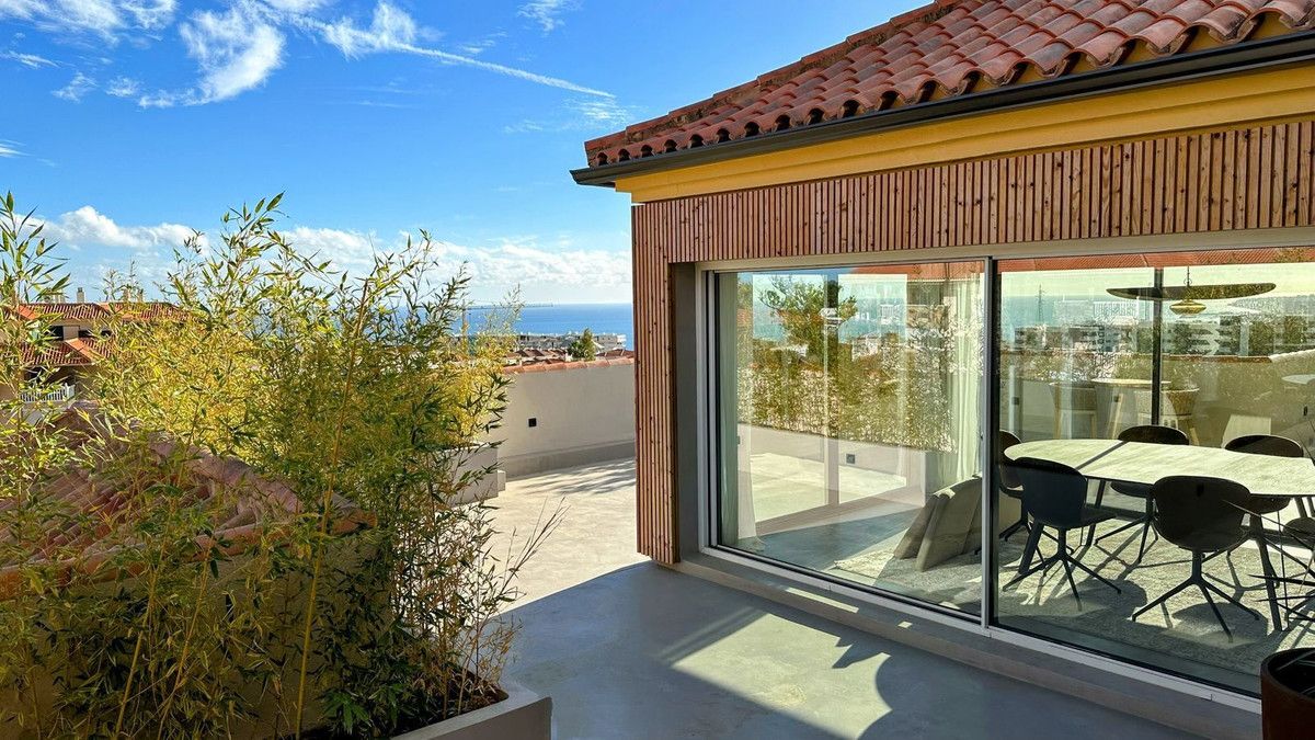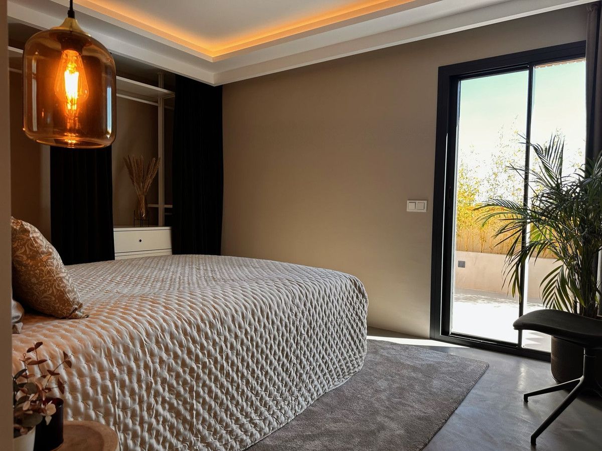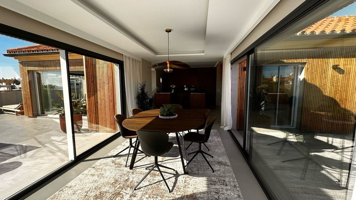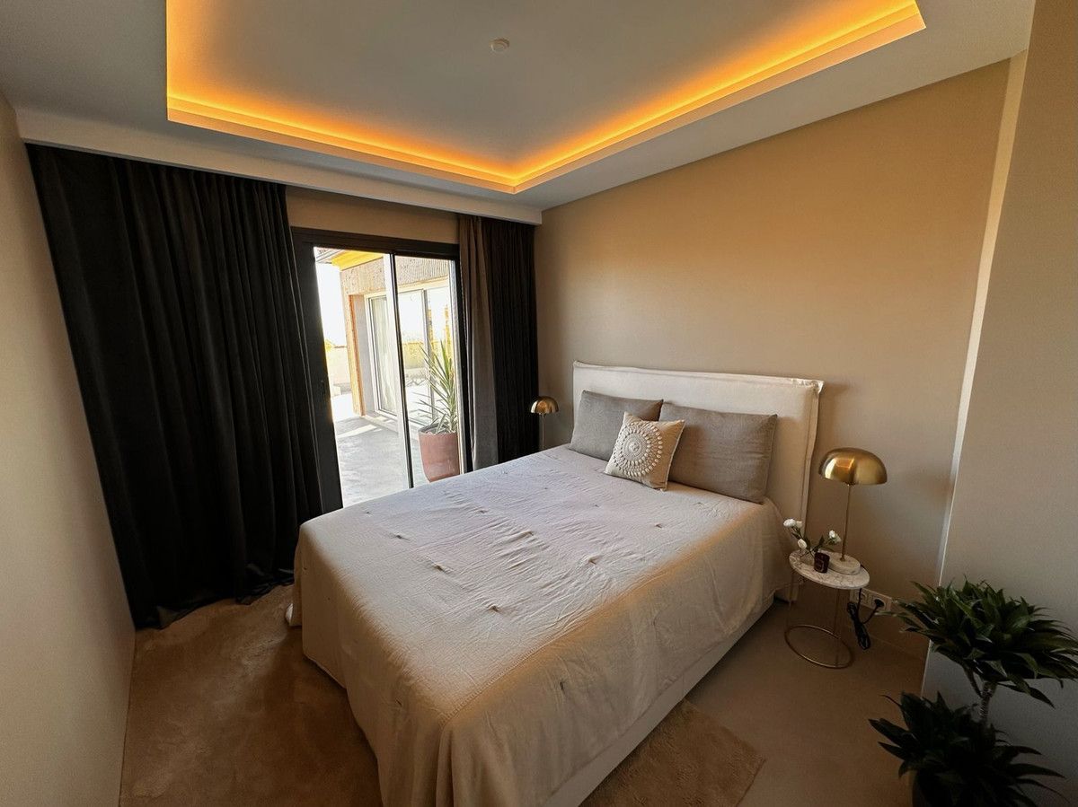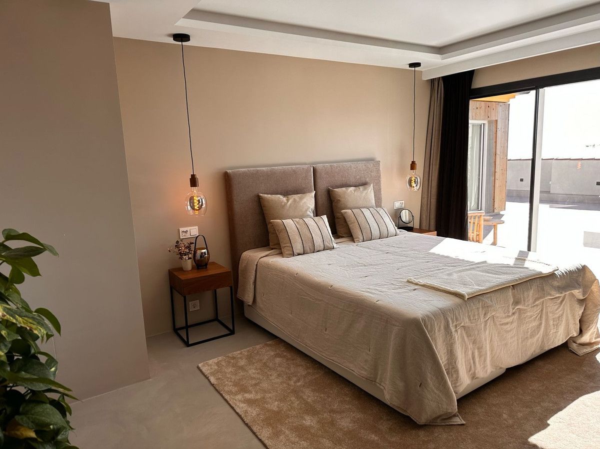 Welcome to this unique penthouse in popular El Higueron. The penthouse has an open floor plan with generous social spaces both inside as well as outside and three comfortable bedrooms with storage and two bathrooms, of which the master bedroom has a gorgeous en suite solution. The apartment is characterized by high quality material choices and standards, where products from Liebherr, Cortizo & Laminam harmonize well with the modern microcement flooring and the well-thought-out layout. The exclusive design and lighting of the inner ceiling, together with the centrally located fireplace, create an airy and luxurious atmosphere, and through the large windows a 150 sqm terrace opens up that stretches around the entire top floor and offers sun from sunrise to sunset. Here you can enjoy a fantastic view of the Mediterranean Sea to the east and south and the mountains to the west and north. In the morning you set the table for a breakfast and watch the sun rise from the Mediterranean Sea and in the evening you unwind in the lounge outside the master bedroom and watch the sun set over the mountains. This penthouse offers not only an elegant and stylish residence but also proximity to the Reserva del Higuerón Sports Club, a luxury sports and leisure center with 9 paddle tennis courts, tennis court, 4 beach volleyball courts, indoor and outdoor pools, spa with sauna and a well-equipped gym. The area of El Higueron is one of the most sought-after residential areas on the Costa del Sol, ideally located between the coastal towns of Benalmadena and Fuengirola and only 15 minutes from Malaga Airport. This gated community features 24-hour surveillance with cameras and security guards patrolling the premises. Enhancing convenience, a complimentary shuttle service is available to transport residents and guests to the mall, train station, and beach. Seize the opportunity to enjoy this oasis — your dream lifestyle awaits!