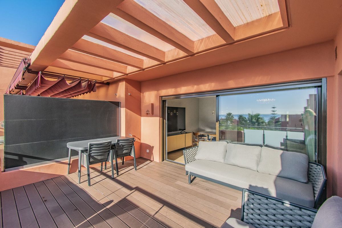 Elegant penthouse, completely renovated with beautiful sea views, located in the exclusive area of the New Golden Mile of Estepona, between Marbella and Estepona, walking to the beach and just a few minutes from all kinds of services, Puerto Banus and several of the best golf courses in the area.
