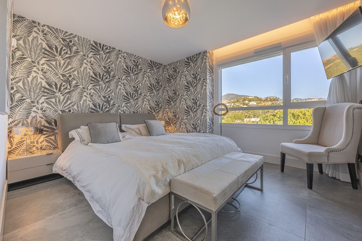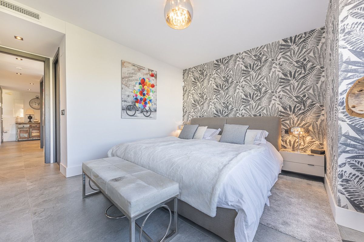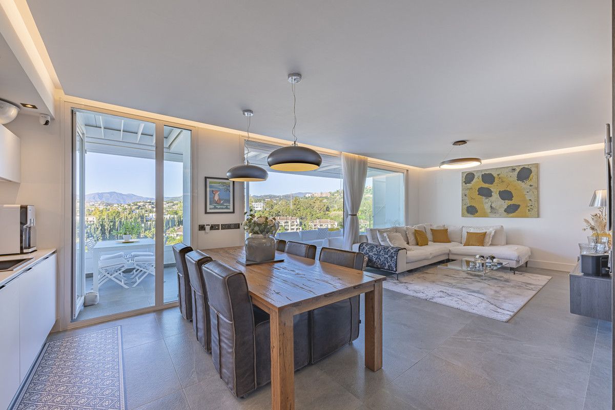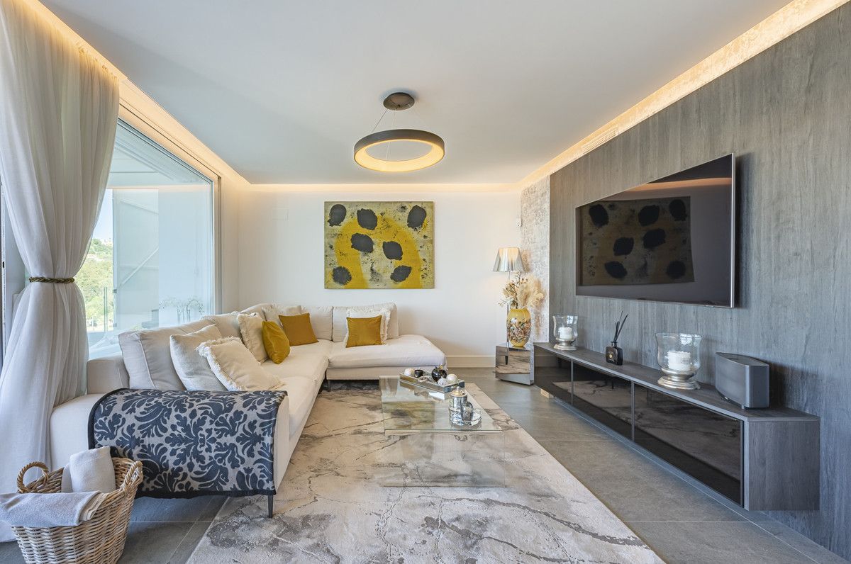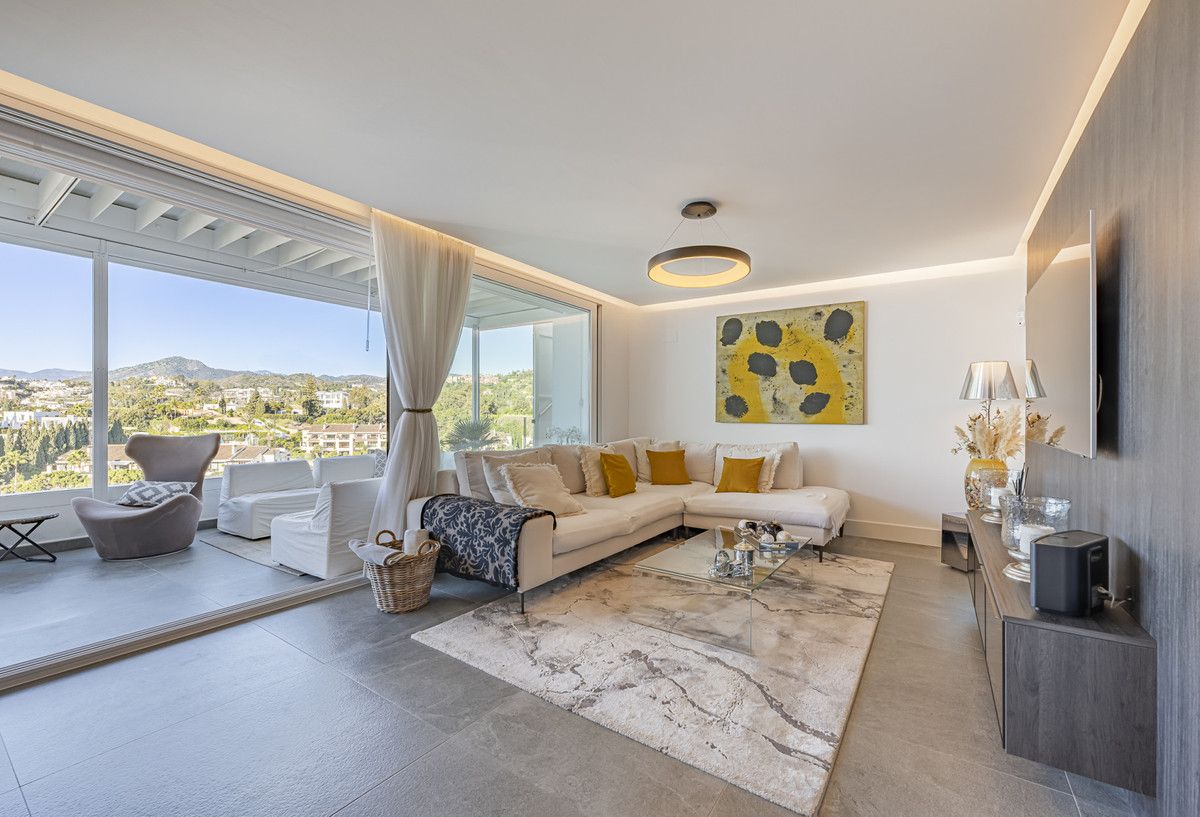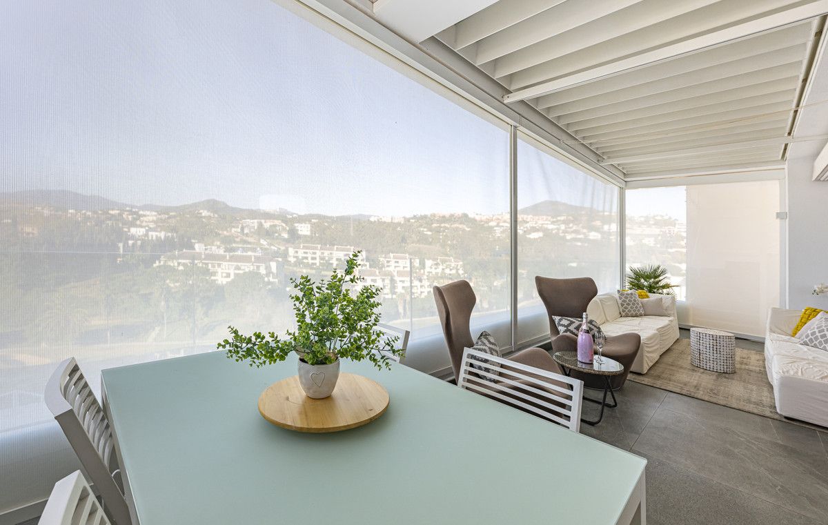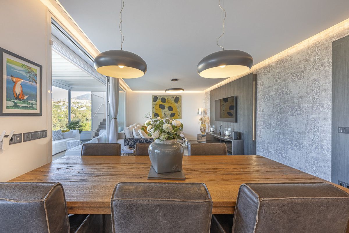 Superb modern duplex penthouse situated in the exclusive area of La Quinta, with absolutely stunning mountain, golf views and partial sea views. Benefits include a private lift and exceptional roof terrace. Set in a private gated community of only 14 exclusive apartments with communal landscaped gardens and swimming pool. All within easy reach of Puerto Banus, San Pedro de Alcantara and Nueva Andalucia. This exceptional property has a lift that arrives into the interior of the penthouse, which can only be accessed by this apartment at this level. The other notable feature of this property is the fabulous roof terrace which has it´s own all weather cinema and superb views. The living area is all on one level and comprises large entrance hall, stylish open plan lounge/diner with modern fully fitted kitchen incorporating bespoke units. This room opens on to a lovely west facing terrace which allows for an outdoor seating and dining area with automatic sun blinds. From the entrance hallway you access the bedrooms. Master suite with separate dressing room and en-suite bathroom. Two further double bedrooms and family bathroom. From the living area terrace there is an enclosed staircase to the magnificent roof terrace., where you can truly enjoy the best of the Spanish weather. Affording 147m2 of outdoor living space with 360 degree panoramic views. This area incorporates a covered seating area with an all weather TV, excellent built-in summer kitchen/BBQ, covered dining area, automated sun blinds and an outdoor shower. The property includes two private underground parking spaces and a storeroom.