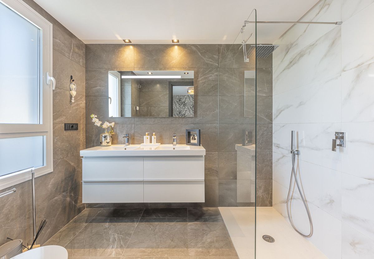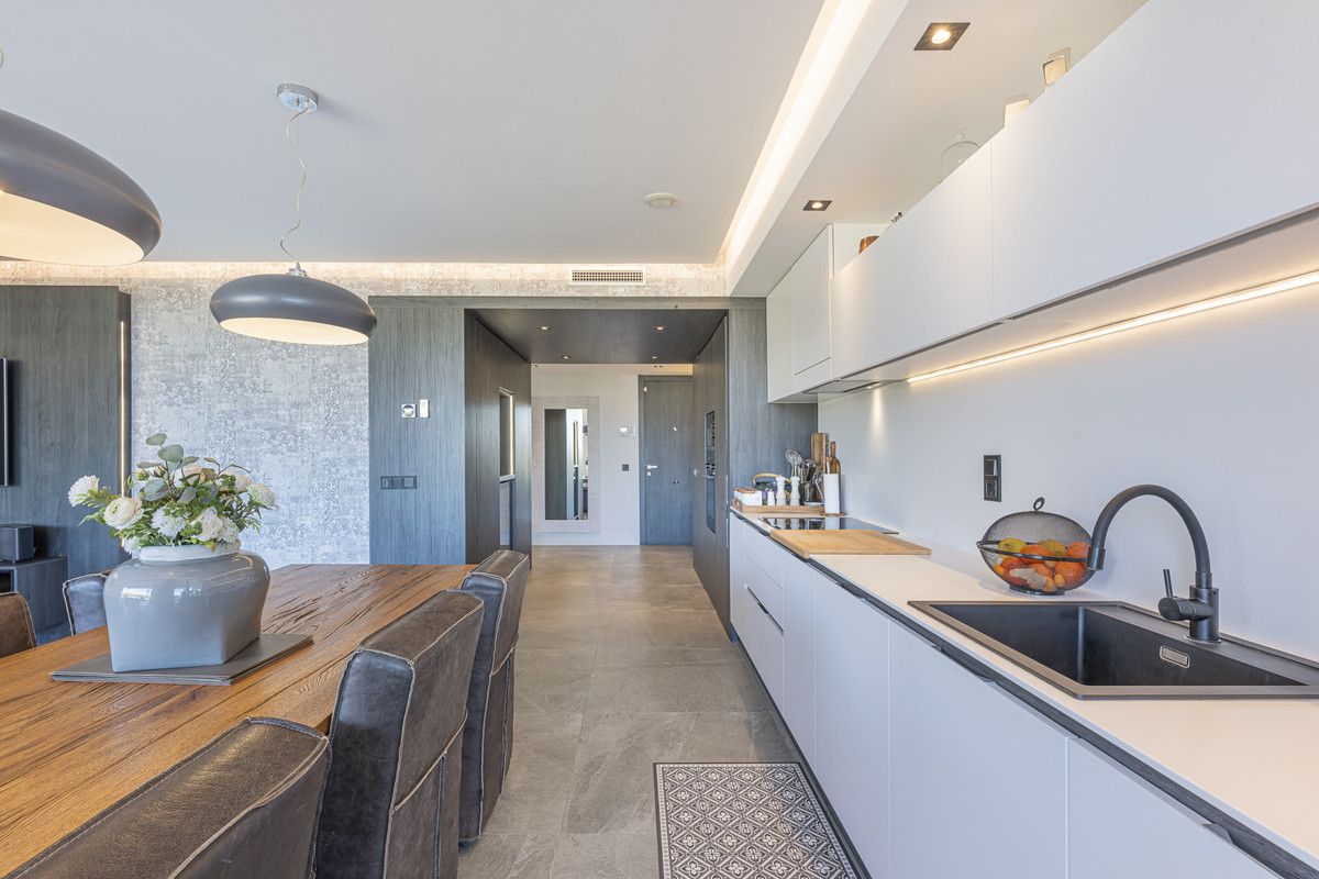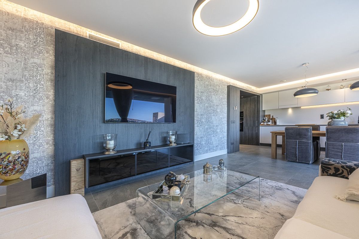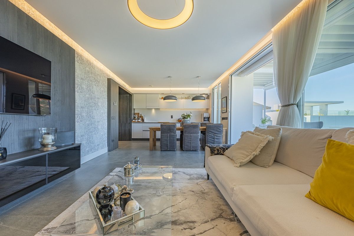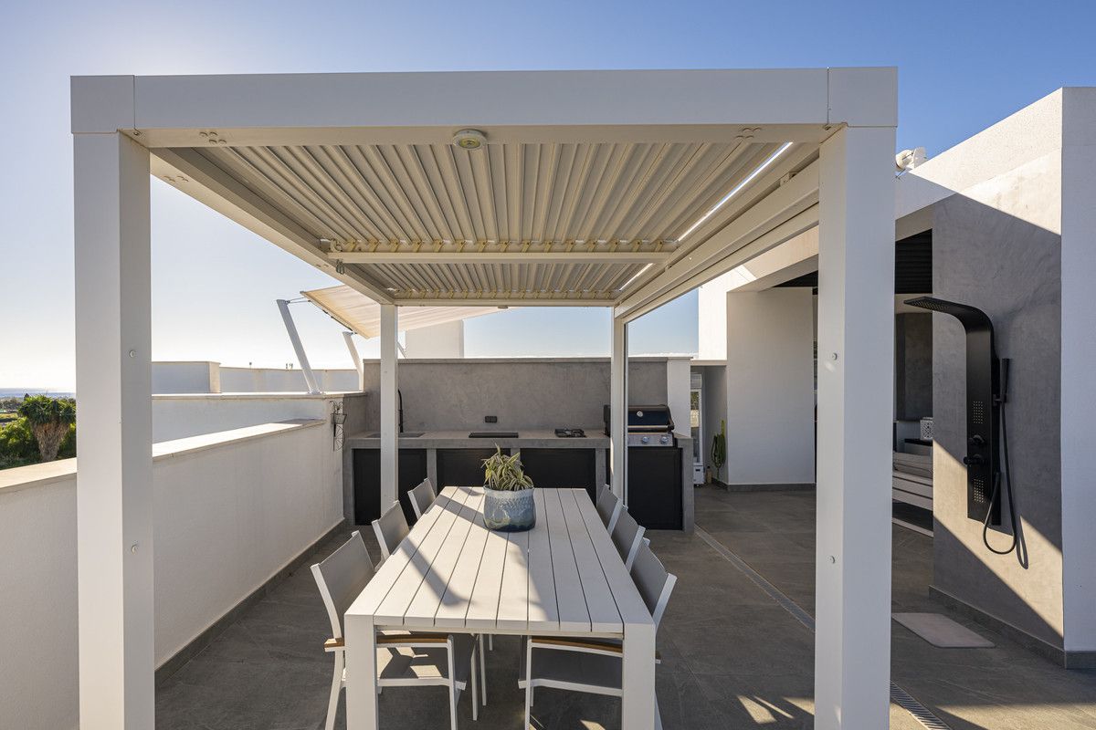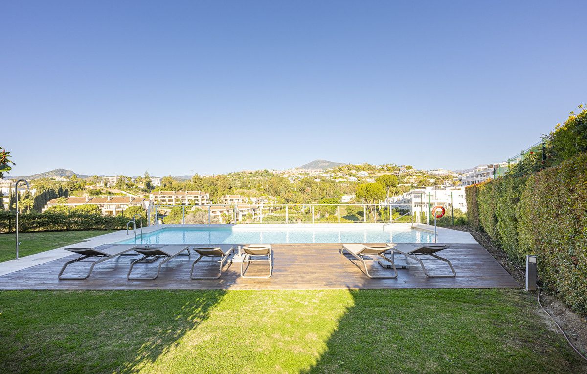 Superb modern duplex penthouse situated in the exclusive area of La Quinta, with absolutely stunning mountain, golf views and partial sea views. Benefits include a private lift and exceptional roof terrace. Set in a private gated community of only 14 exclusive apartments with communal landscaped gardens and swimming pool. All within easy reach of Puerto Banus, San Pedro de Alcantara and Nueva Andalucia. This exceptional property has a lift that arrives into the interior of the penthouse, which can only be accessed by this apartment at this level. The other notable feature of this property is the fabulous roof terrace which has it´s own all weather cinema and superb views. The living area is all on one level and comprises large entrance hall, stylish open plan lounge/diner with modern fully fitted kitchen incorporating bespoke units. This room opens on to a lovely west facing terrace which allows for an outdoor seating and dining area with automatic sun blinds. From the entrance hallway you access the bedrooms. Master suite with separate dressing room and en-suite bathroom. Two further double bedrooms and family bathroom. From the living area terrace there is an enclosed staircase to the magnificent roof terrace., where you can truly enjoy the best of the Spanish weather. Affording 147m2 of outdoor living space with 360 degree panoramic views. This area incorporates a covered seating area with an all weather TV, excellent built-in summer kitchen/BBQ, covered dining area, automated sun blinds and an outdoor shower. The property includes two private underground parking spaces and a storeroom.