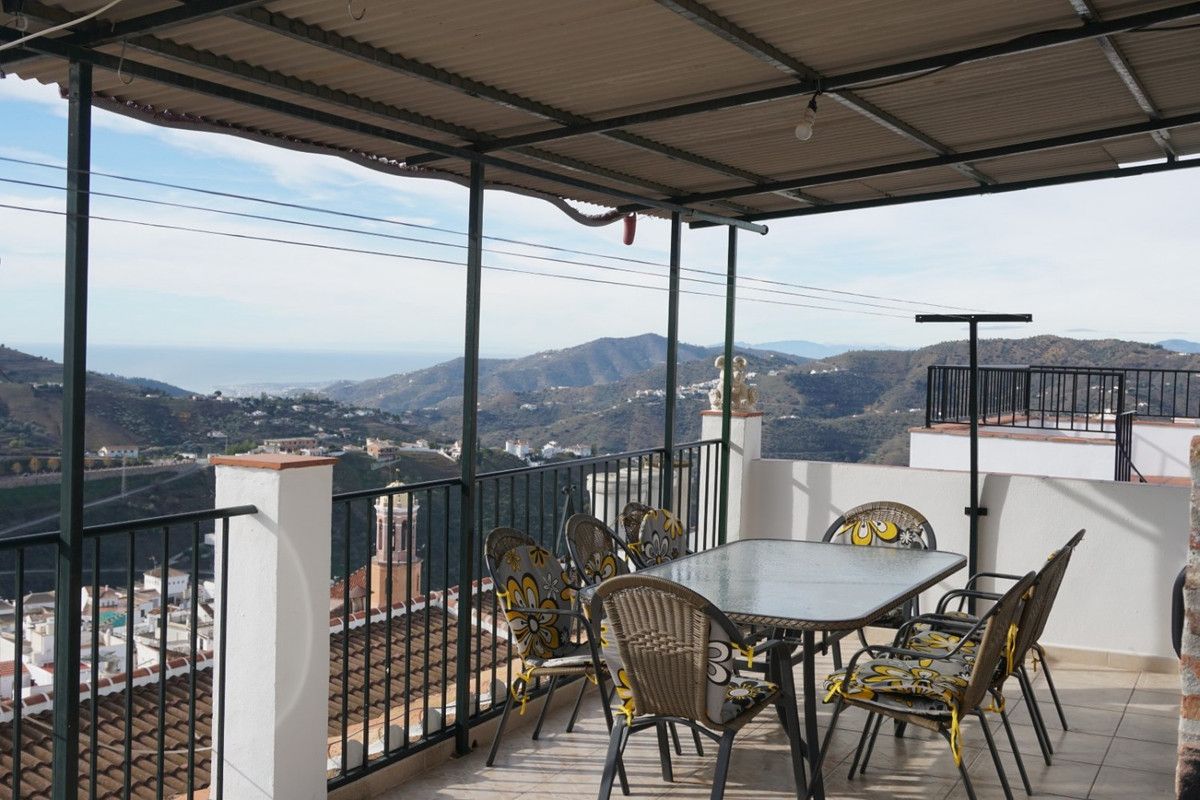 Great town house in Cómpeta. If you are looking for a home in a quiet place, without noise or pollution, with good views, with all the services of a city at hand and at a very reasonable price, this is a perfect option. The house was completely renovated in 2005. It consists of four floors. The first has a toilet, a small living room and a good bedroom. Going up to the second floor we find a bedroom, a complete bathroom, kitchen and living room. From the living room there is access to a workshop that has access to the street behind the house. The owner of the property can park a car at this exit. On the third floor there are two great bedrooms. And on the fourth floor there is another very large one, with access to a fantastic terrace that has a large kitchen, barbecue, solar panels, a water tank and incredible panoramic views of the town and the sea.