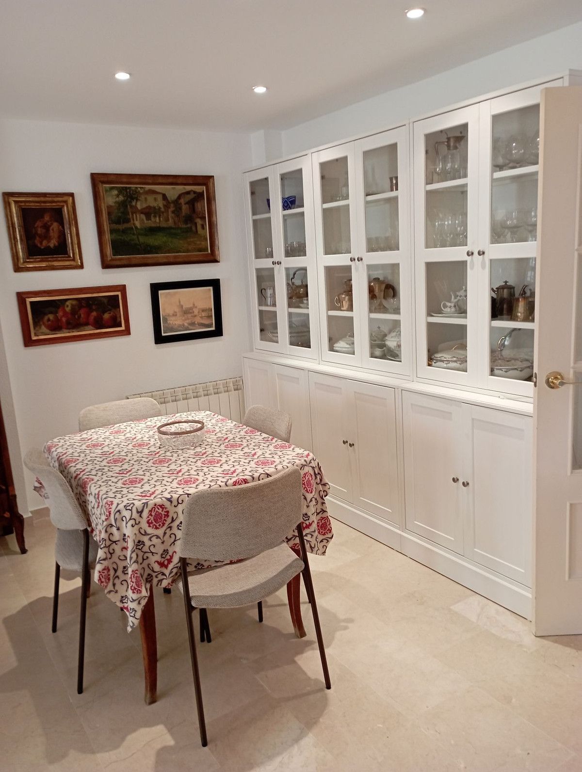 Detailed description: It has two garages, one exterior and one interior of 30m2, entrance hall, living-dining room with fireplace, equipped kitchen, gas heating (with radiators in all rooms), 4 bedrooms, 3 bathrooms, 1 toilet, laundry room, pantry, storage room, woodshed, terrace and solarium. It has fitted wardrobes in all the bedrooms, and marble floors on the first and second floors (except in the kitchen and toilet. In the outdoor patio there is a flowerbed with drip irrigation installation and a large solarium.