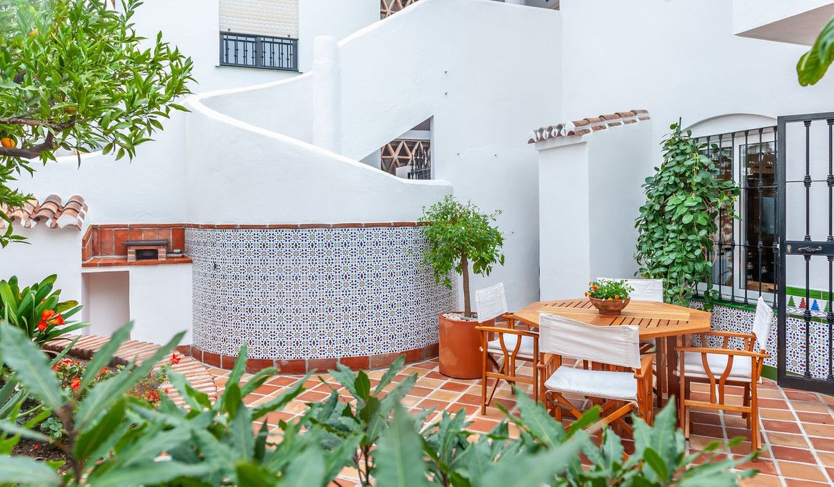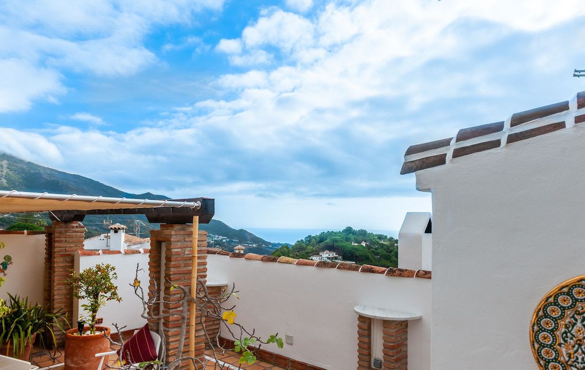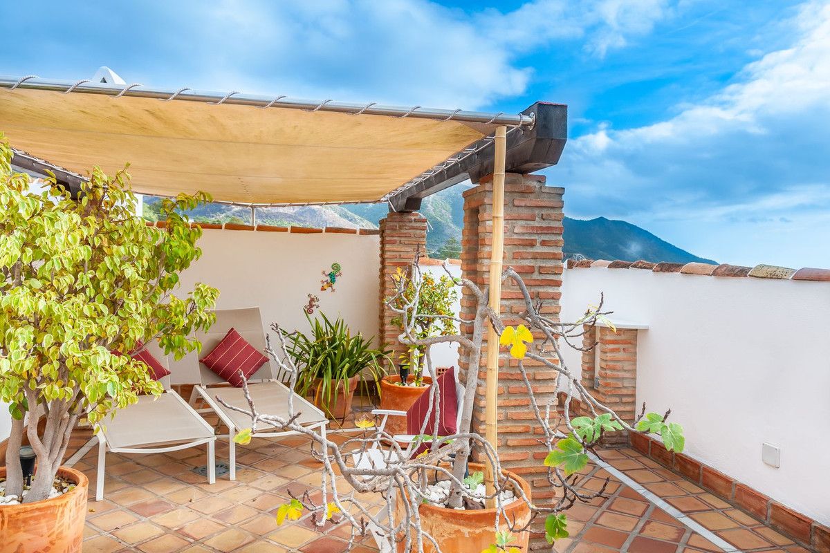 Immerse in the enchanting landscape of Mijas Pueblo, where the sun-kissed coast meets the majestic mountains, is this stunning semi-detached house. Offering an exceptional blend of luxury and comfort, this home boasts four bedrooms, three bathrooms, a large living area with a cozy fireplace. The kitchen area is a perfect combination of space and functionality, And when it is time for al fresco dining with family and friends, there could not be a better spot than the picturesque inner patio with lemon and mandarin trees. Step up to the sun roof terrace, and youll be greeted with a breathtaking vista of the sea and mountains. Enjoy the warmth of the sun as you shower in the outdoor shower or lounge with a good book.