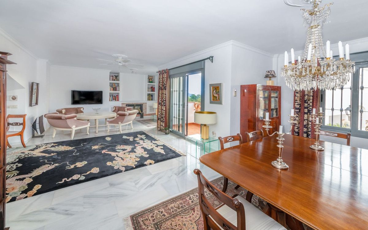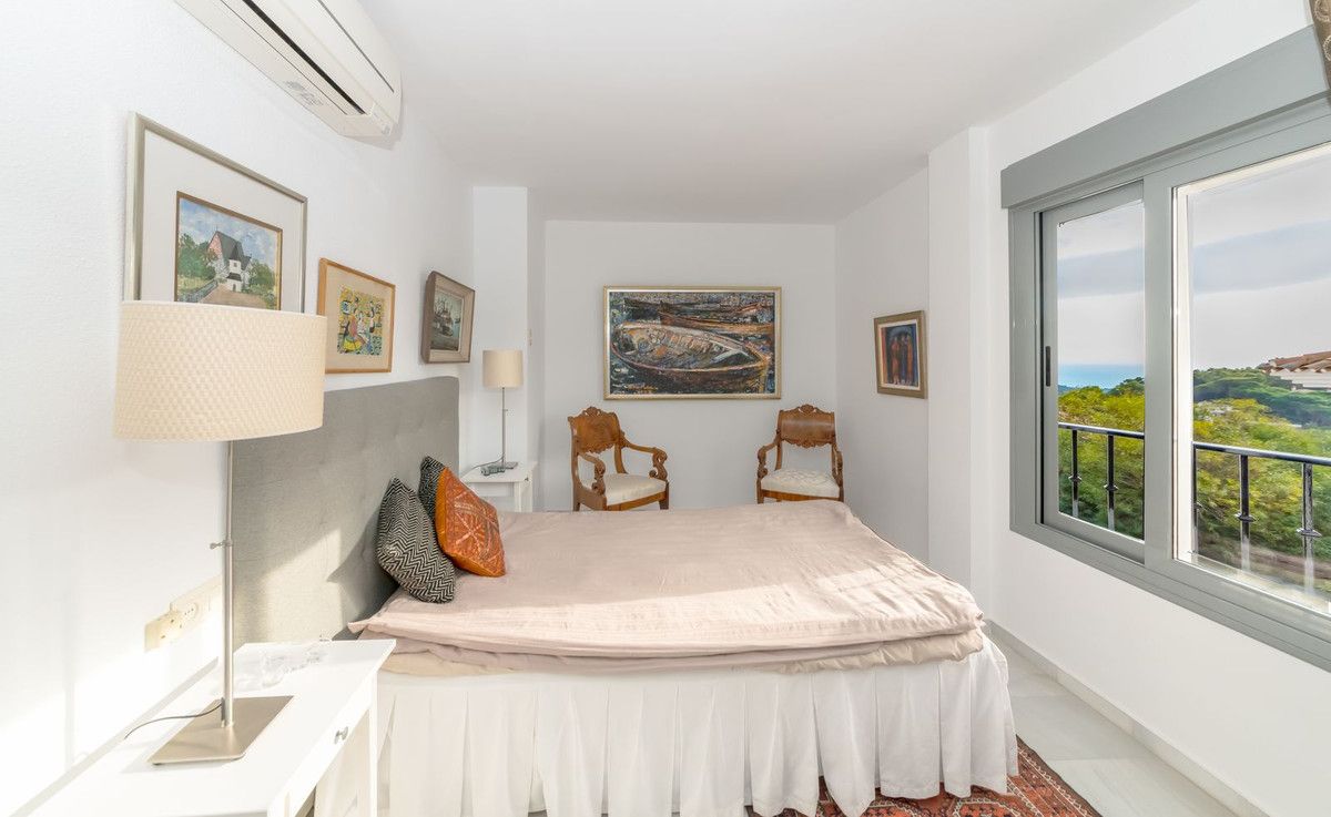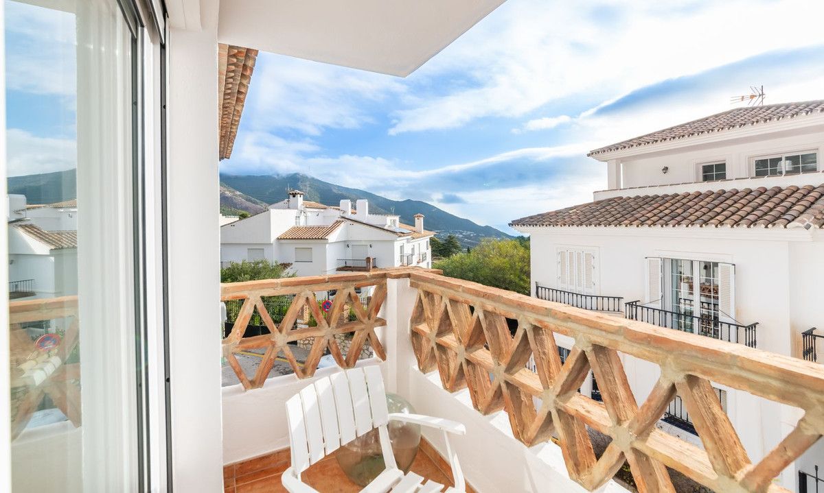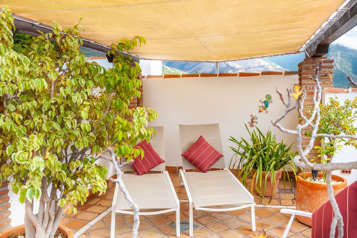 Immerse in the enchanting landscape of Mijas Pueblo, where the sun-kissed coast meets the majestic mountains, is this stunning semi-detached house. Offering an exceptional blend of luxury and comfort, this home boasts four bedrooms, three bathrooms, a large living area with a cozy fireplace. The kitchen area is a perfect combination of space and functionality, And when it is time for al fresco dining with family and friends, there could not be a better spot than the picturesque inner patio with lemon and mandarin trees. Step up to the sun roof terrace, and youll be greeted with a breathtaking vista of the sea and mountains. Enjoy the warmth of the sun as you shower in the outdoor shower or lounge with a good book.