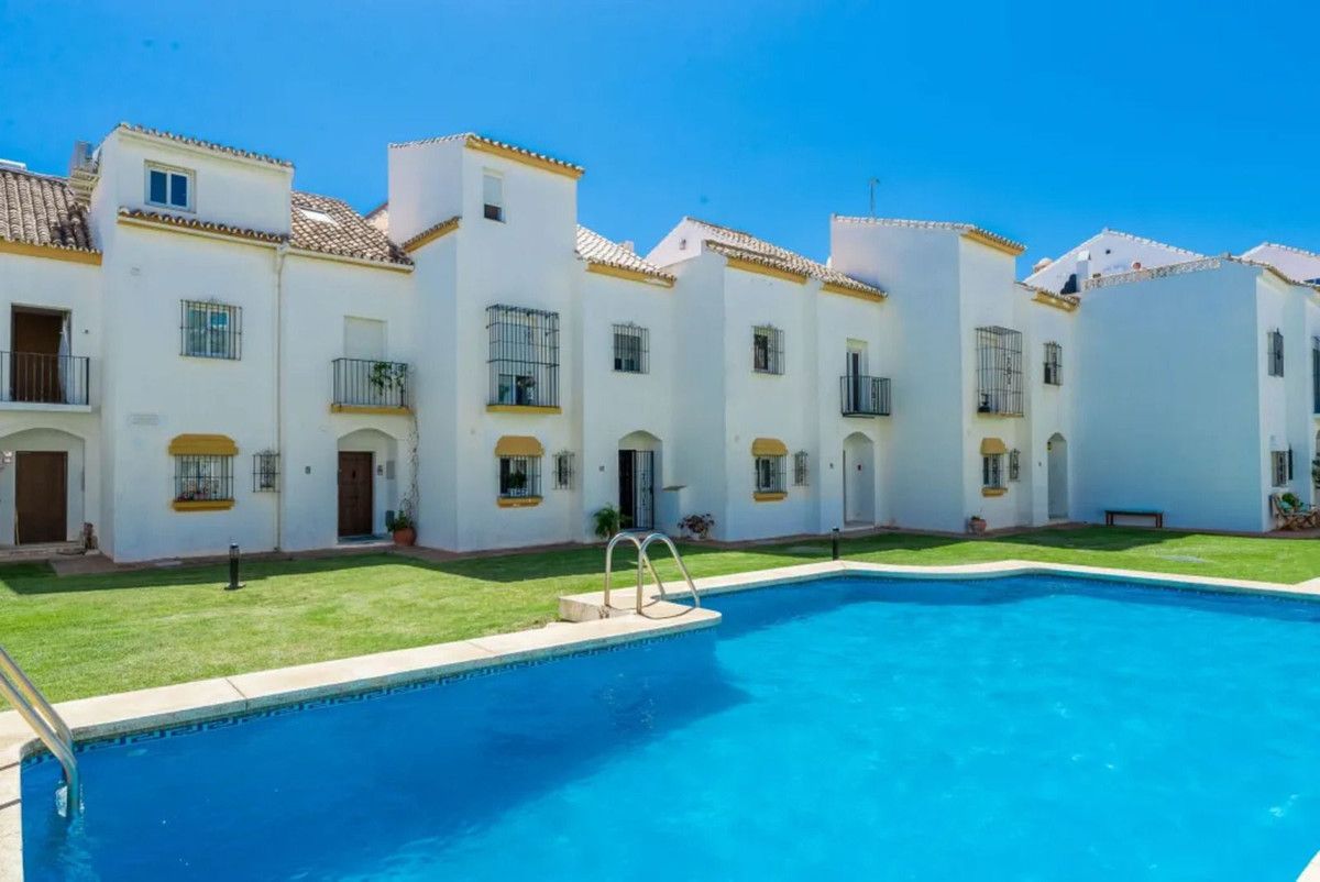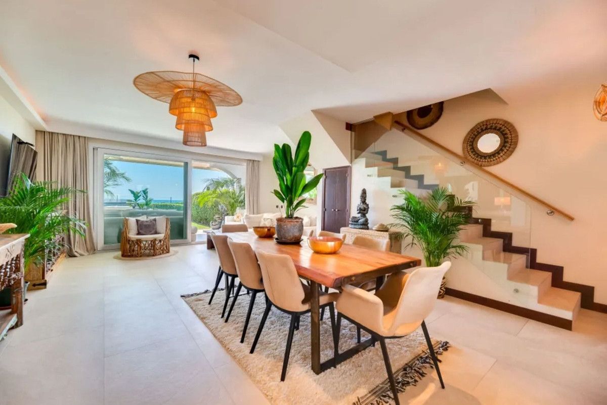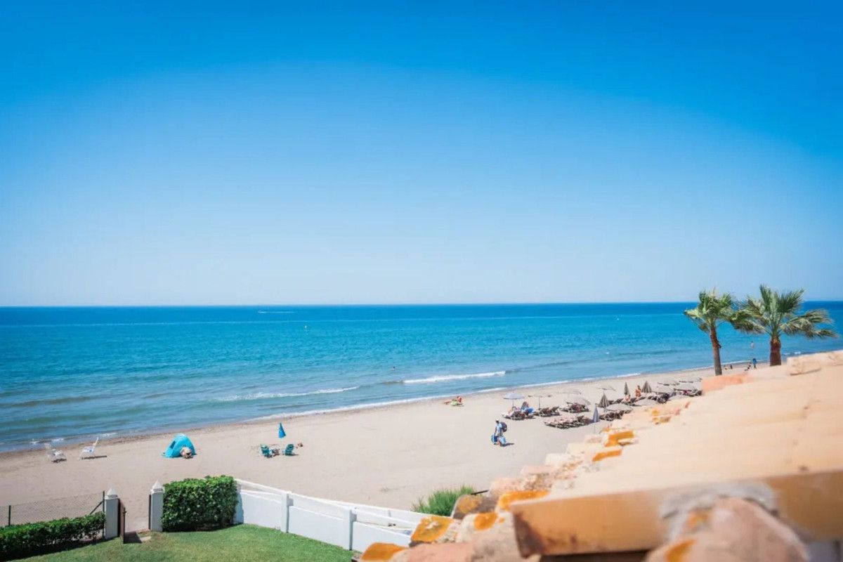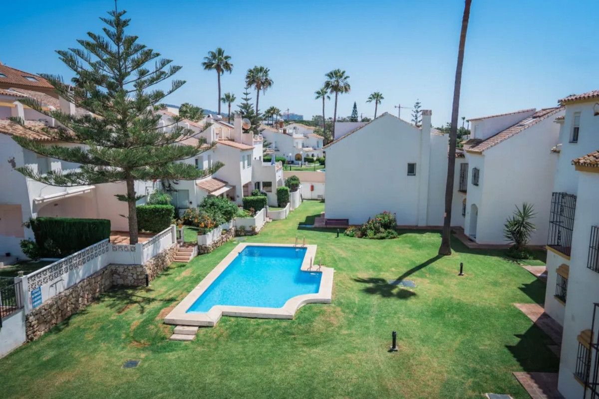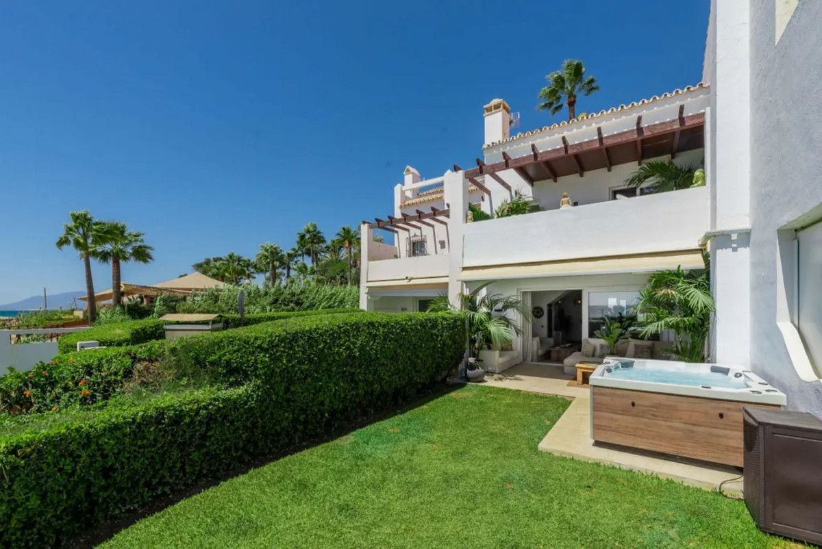 Beautiful Beachfront Townhouse in El Rosario (Marbella East) with direct access to the beach, in a small urbanisation of terraced houses with communal gardens & a communal swimming pool.