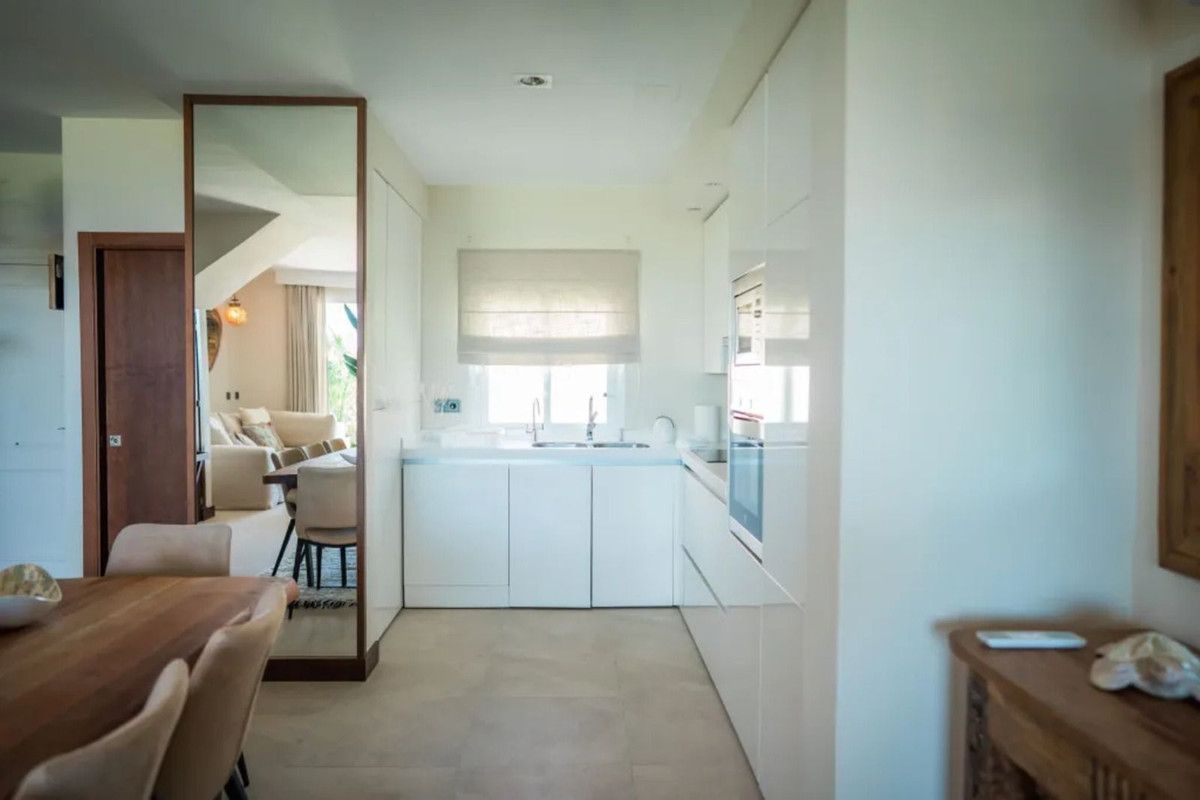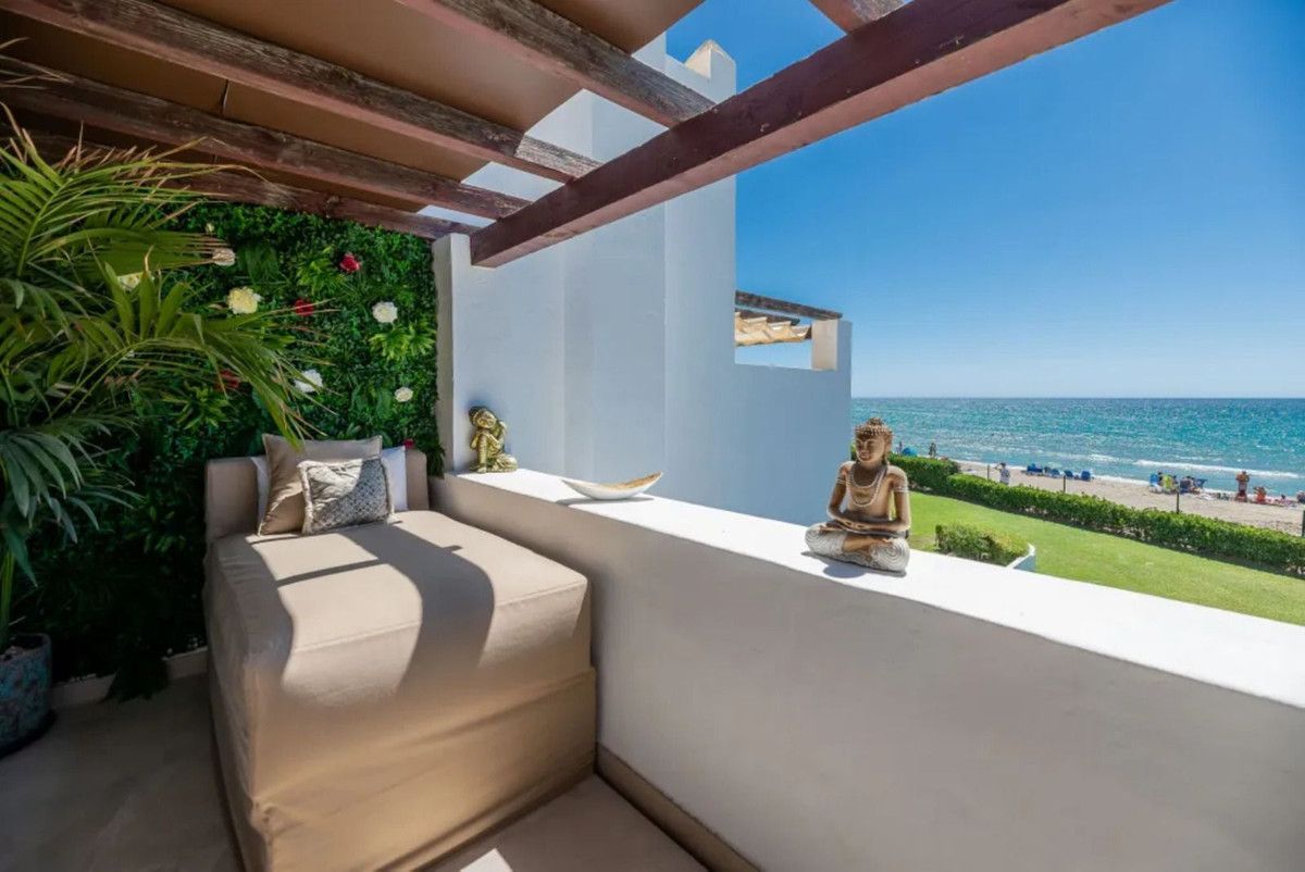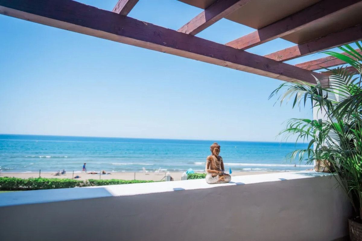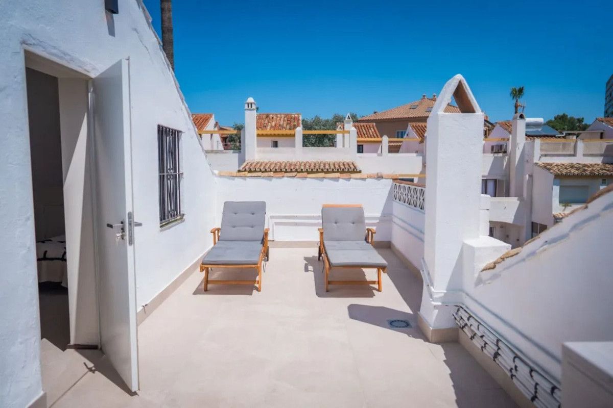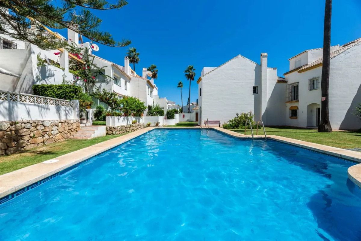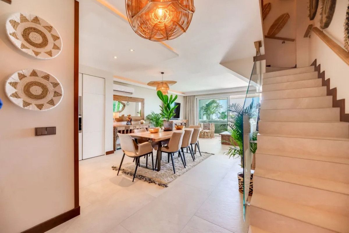 Beautiful Beachfront Townhouse in El Rosario (Marbella East) with direct access to the beach, in a small urbanisation of terraced houses with communal gardens & a communal swimming pool.