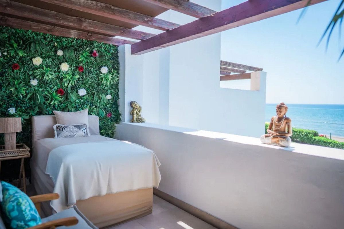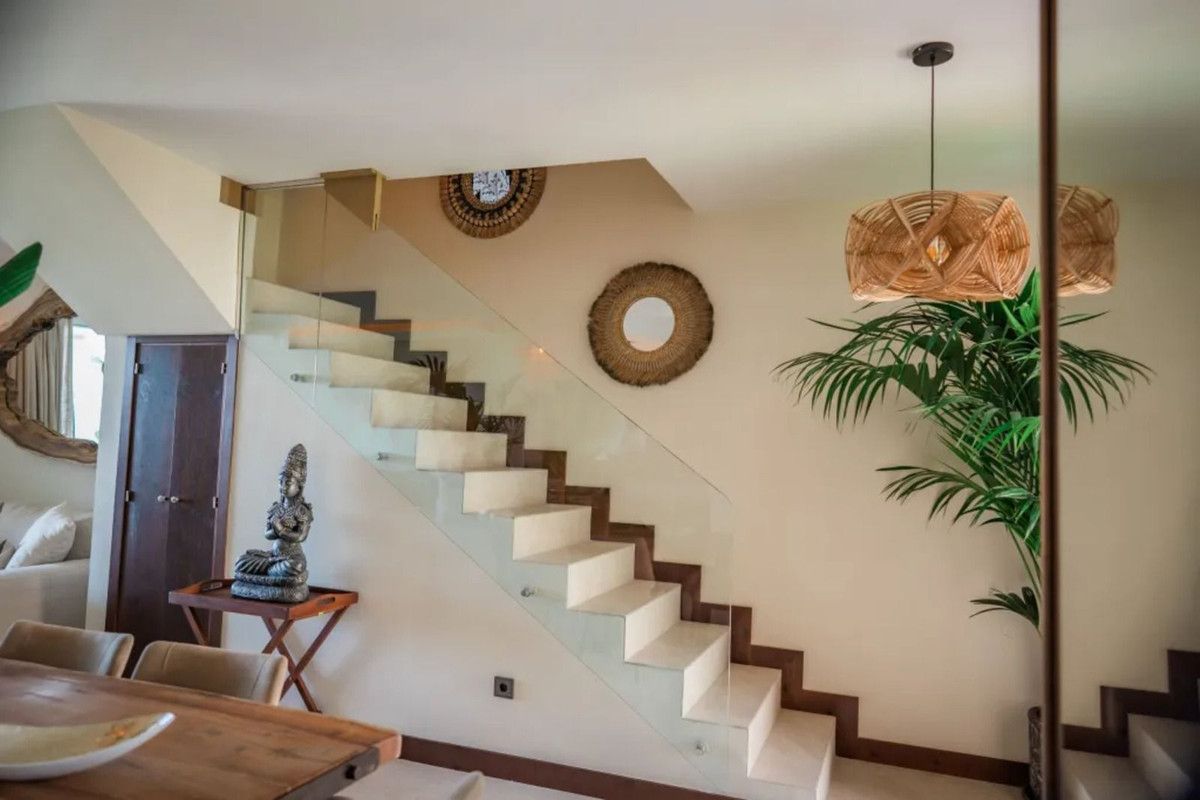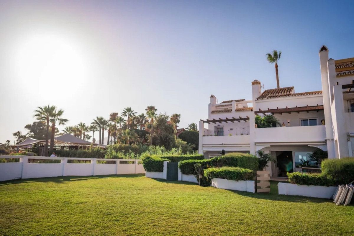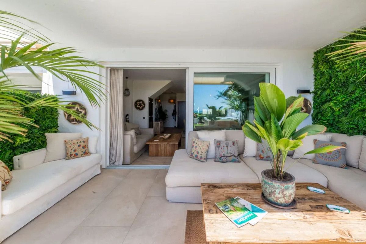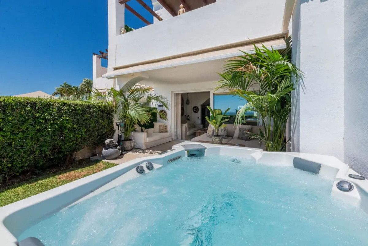 Beautiful Beachfront Townhouse in El Rosario (Marbella East) with direct access to the beach, in a small urbanisation of terraced houses with communal gardens & a communal swimming pool.