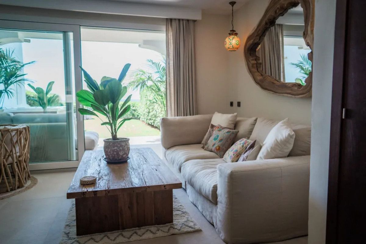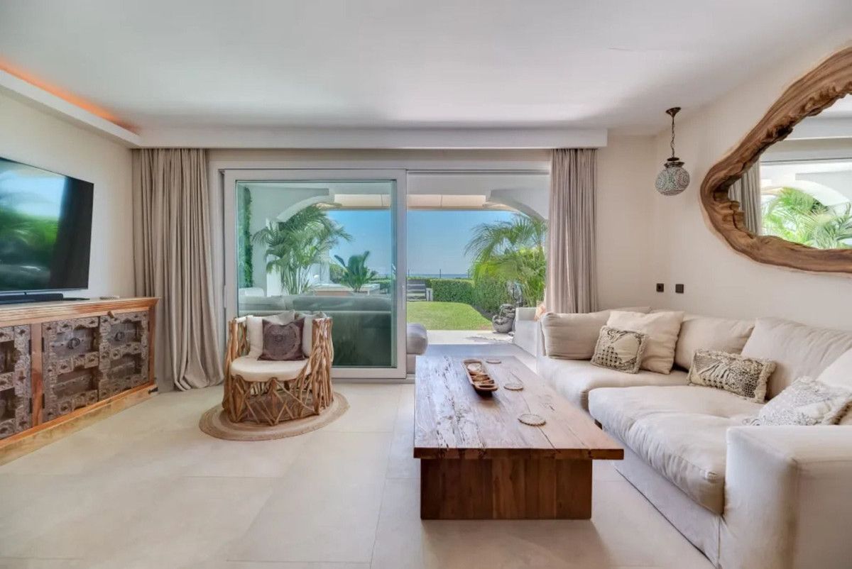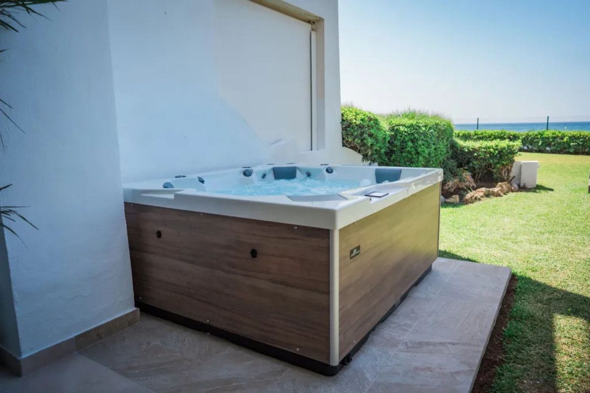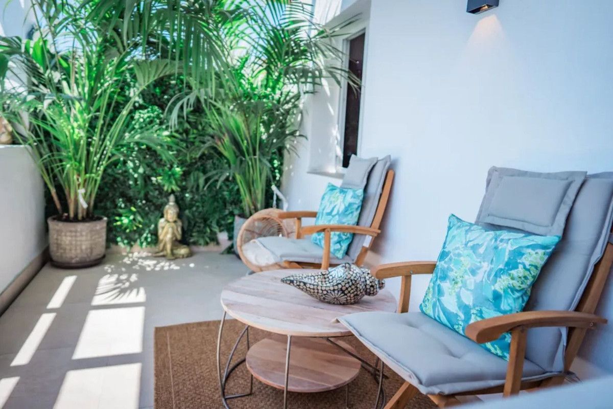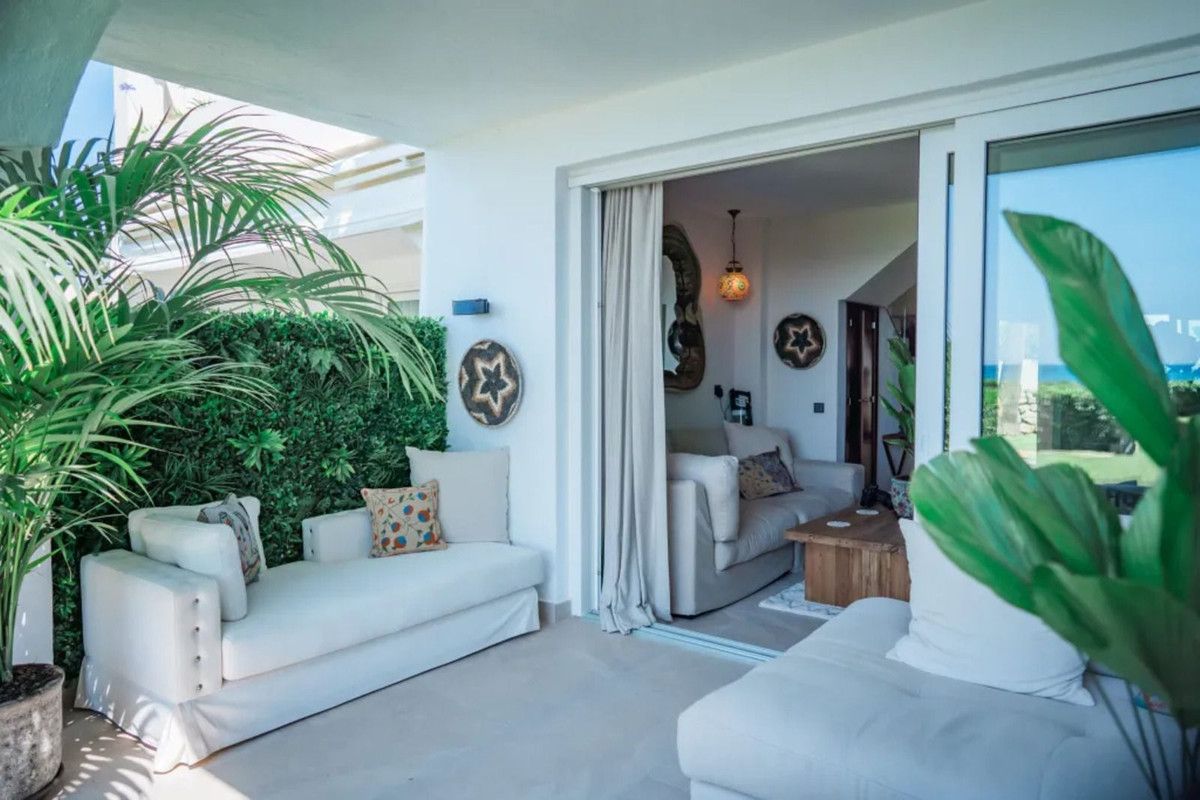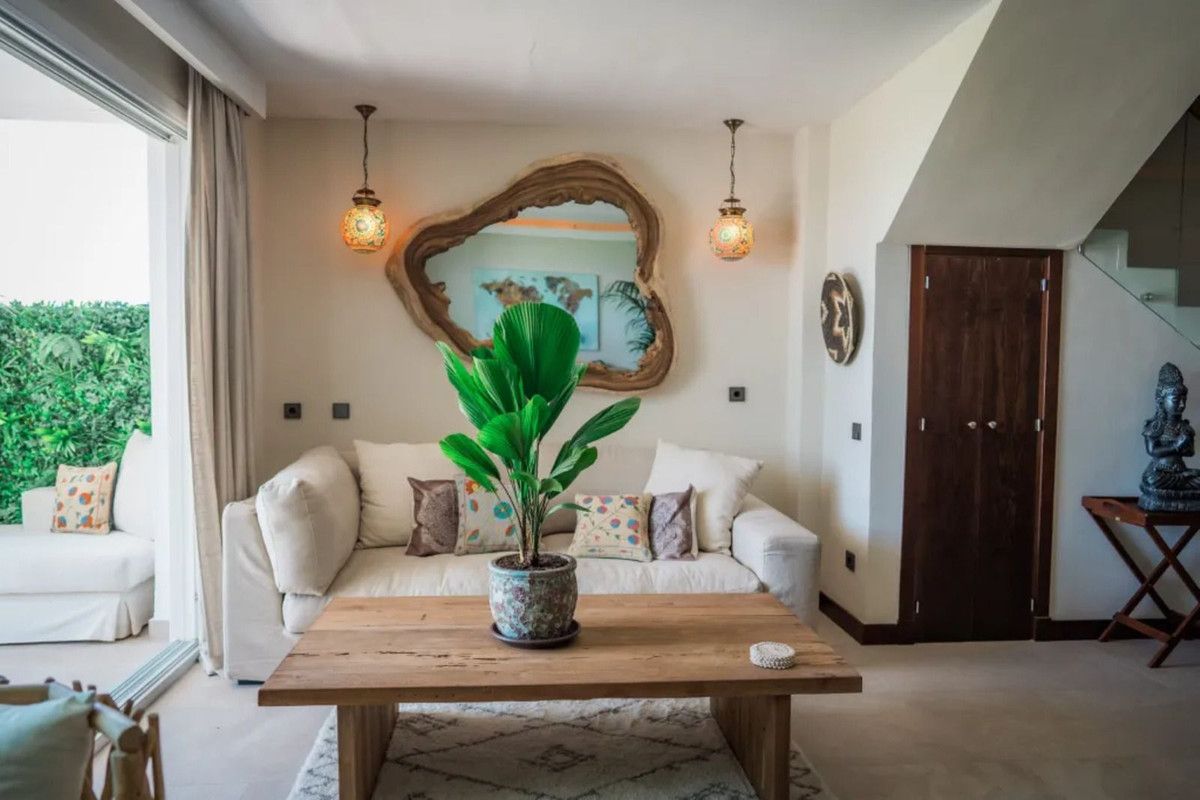 Beautiful Beachfront Townhouse in El Rosario (Marbella East) with direct access to the beach, in a small urbanisation of terraced houses with communal gardens & a communal swimming pool.