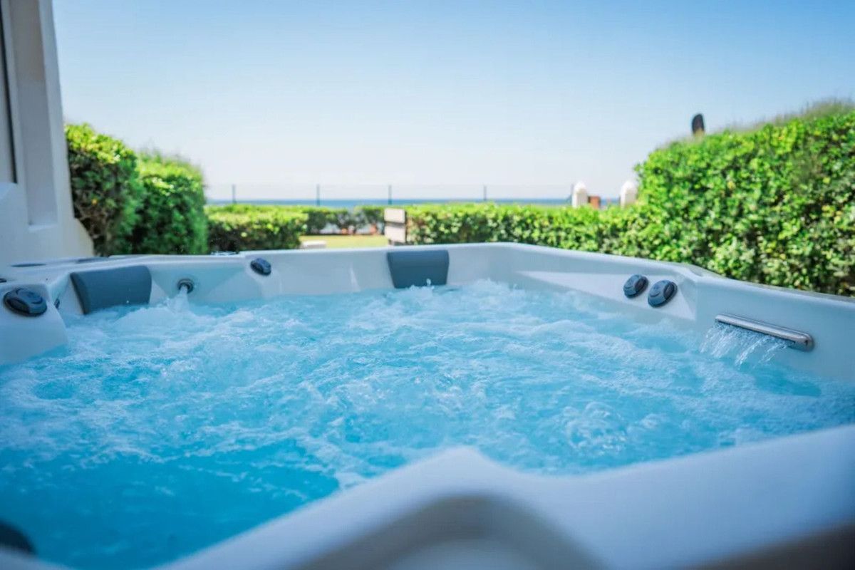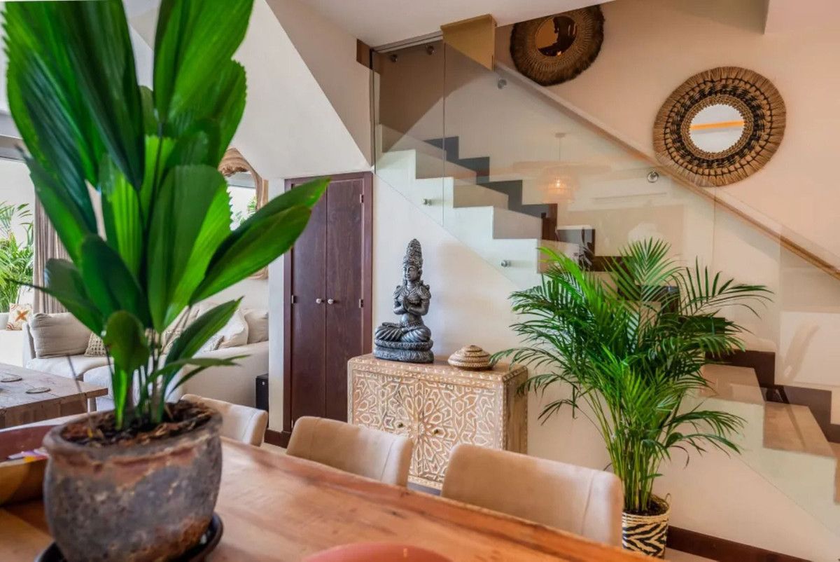 The Townhouse got recently renovated & tastefully decorated. On the ground floor you will find a guest WC, an open plan kitchen, Living & dining room leading out to the private garden with a covered terrace & Jacuzzi. The garden is bordering the Beach.
