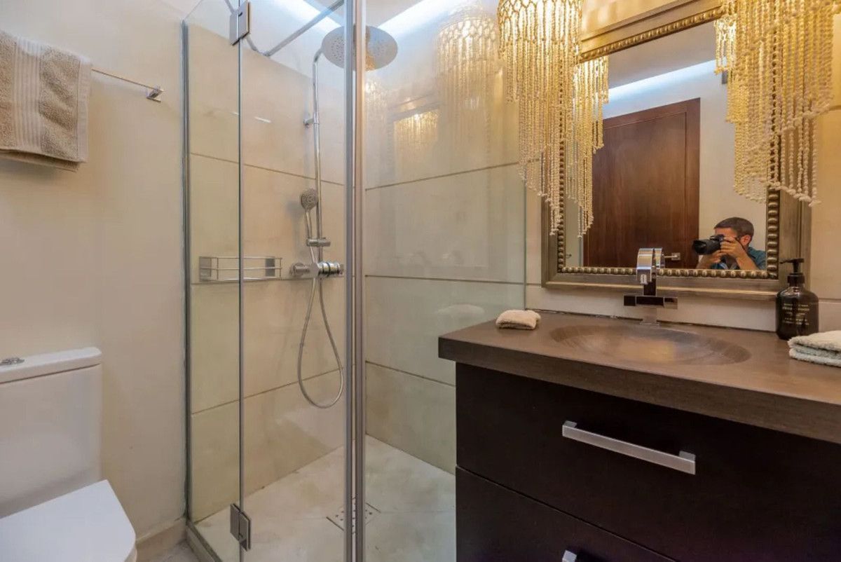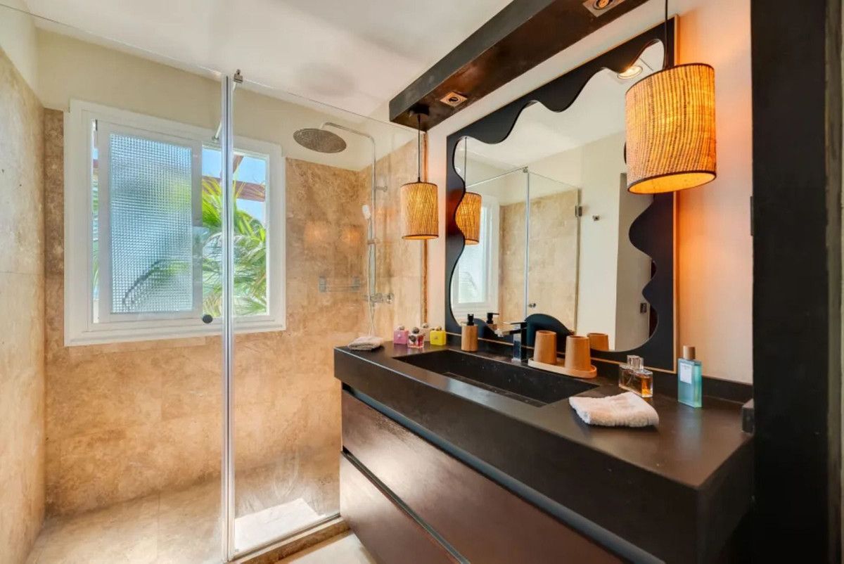 On the first floor you will find 3 bedrooms, two of the are sharing one bathroom. The master bedroom has an en-suit bathroom and is leading out to a good size terrace with the most beautiful beach & sea views.