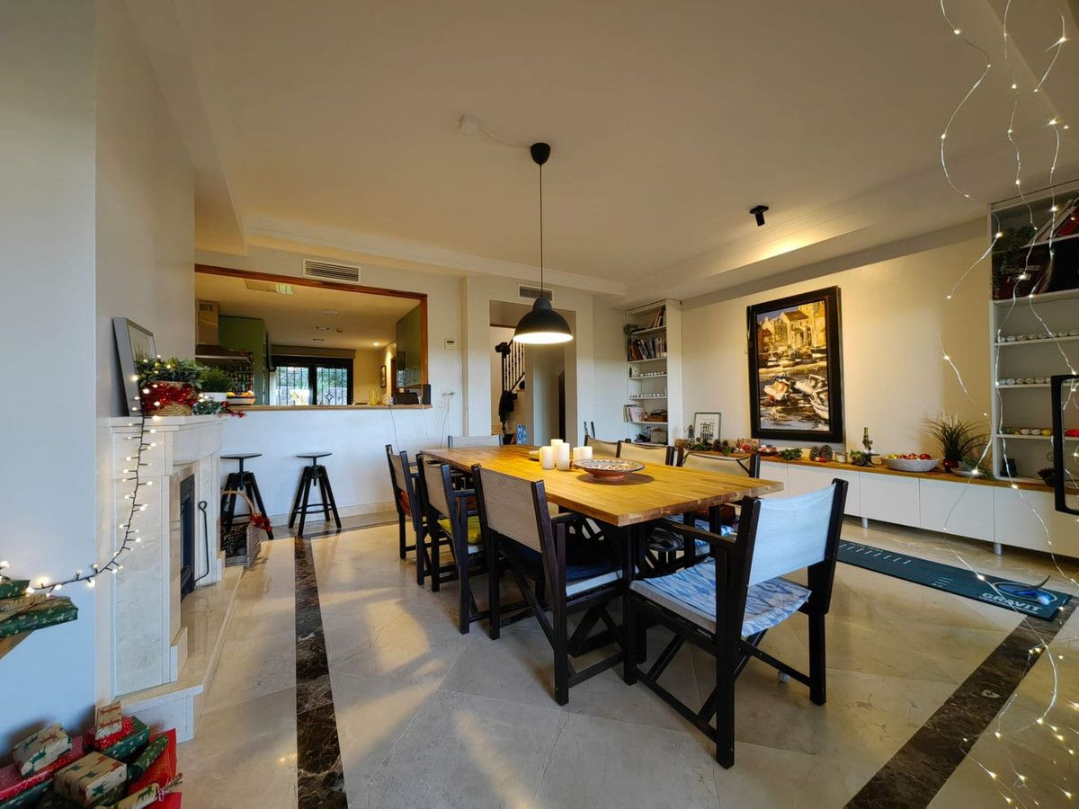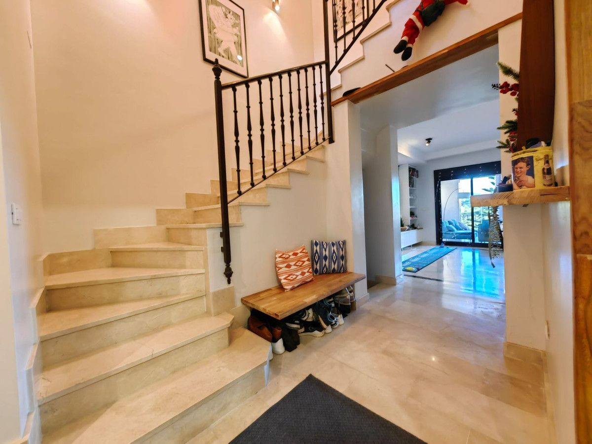 Discover your dream home in this spacious and modern 3-bedroom, 2-bathroom townhouse with an additional guest toilet. Situated on the frontline of a prestigious golf course, this property offers breath-taking panoramic views of the mountains and the sea. This property stands out as one of the finest in the urbanization, enhanced to a higher standard than others. It's ready for you to move in and enjoy the lifestyle you deserve. Beautifully designed living room with direct access to a sunny terrace. Private Garage for 2 cars with internal home access. Demotics System automation for modern living. Separate Air Conditioning: Independent hot/cold systems for each floor. Safe and gated urbanization with 24/7 security. Two swimming pools for relaxation and recreation (one of them with salt water). Proximity to four golf courses within minutes!